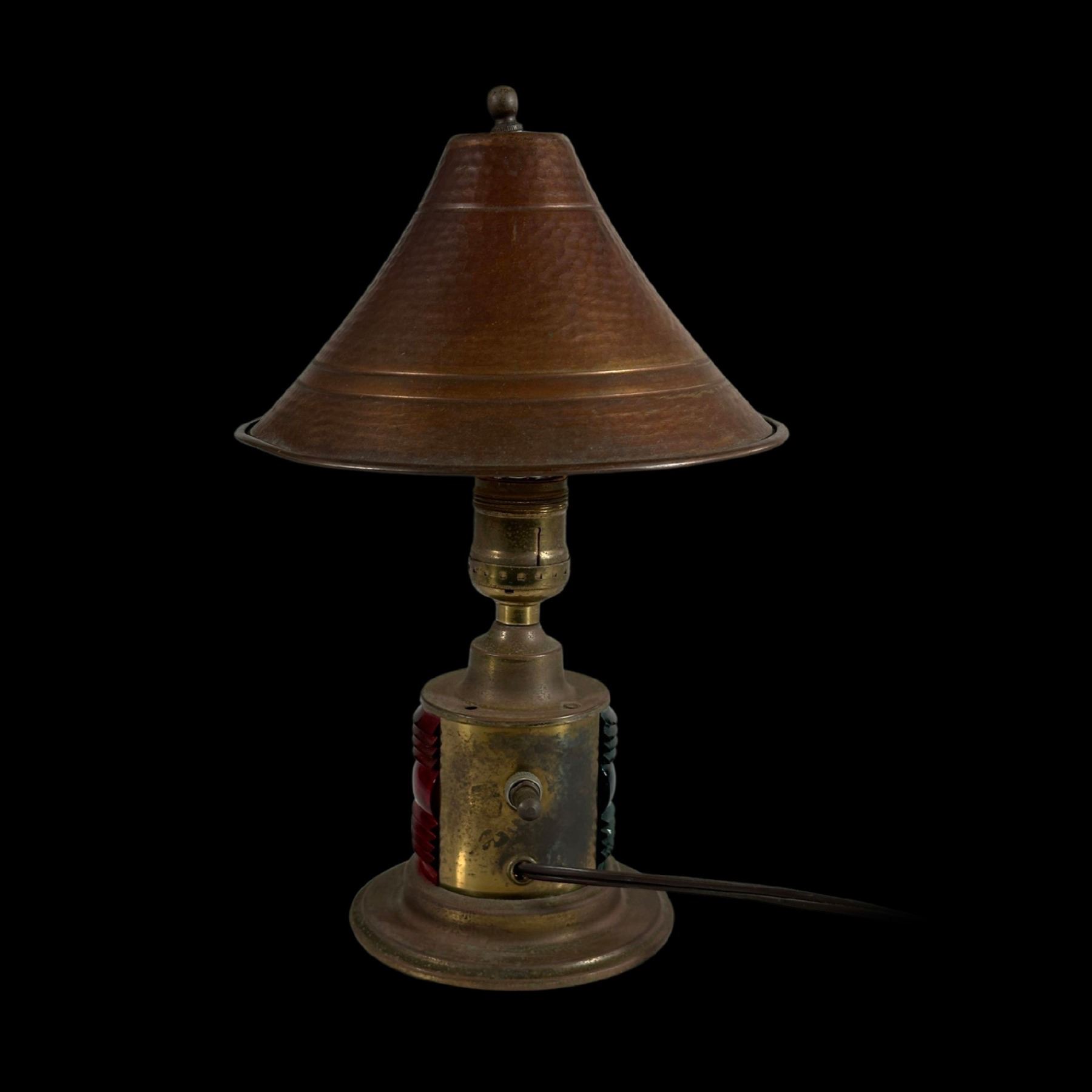 (1950s)* A classic nautical accent for your bar top or back bar. VG+ with typical wear. 7.25"dia x 11.5" w/ shade, 4.5"dia x 6.5" w/o shade.