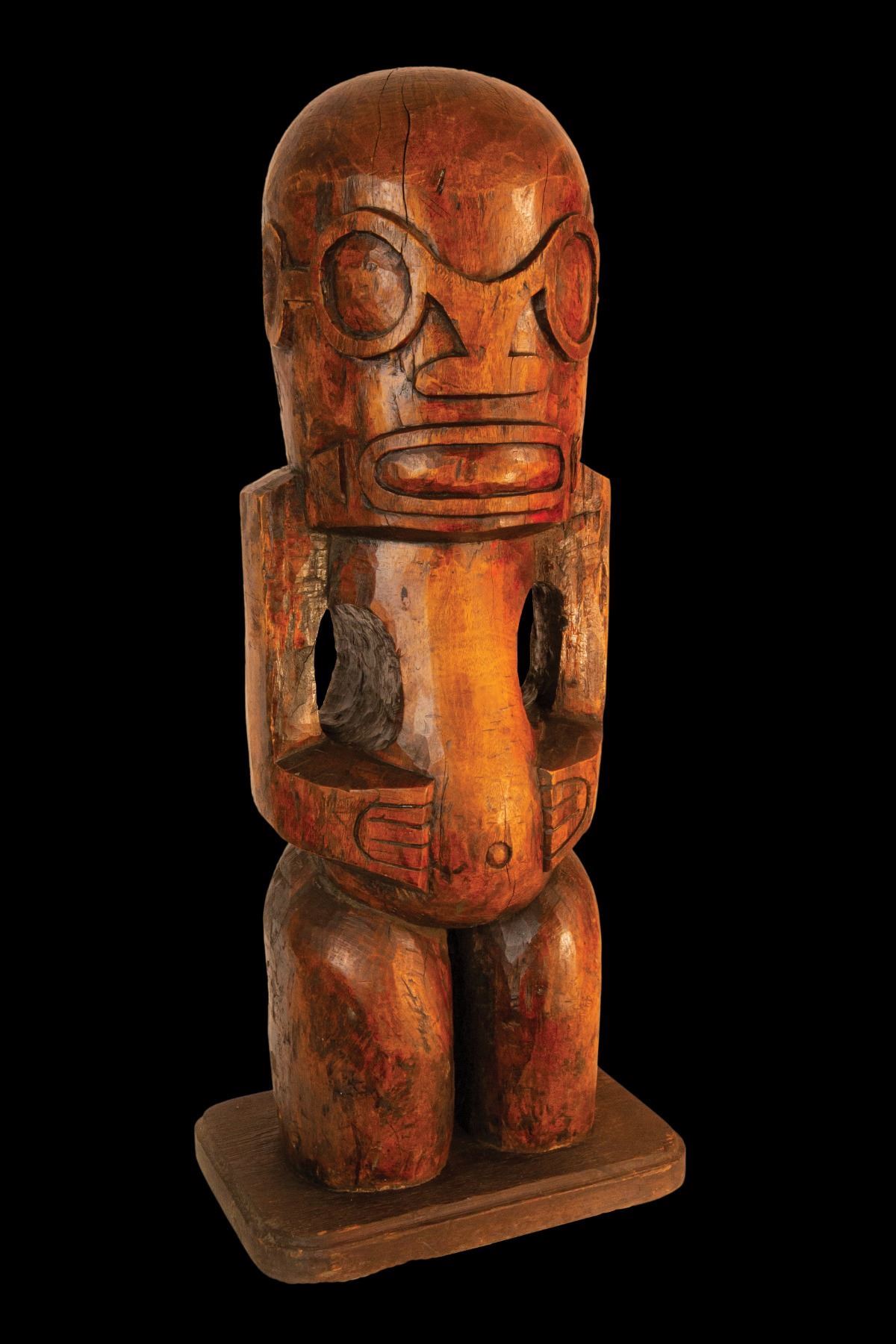 (1960s) This is one of the "tease tikis" on display for eons at OA with a frustrating "NOT FOR SALE" tag on it. Comes with that tag regardless of sale! 37"x11.5"x16". VG+ with typical wear.