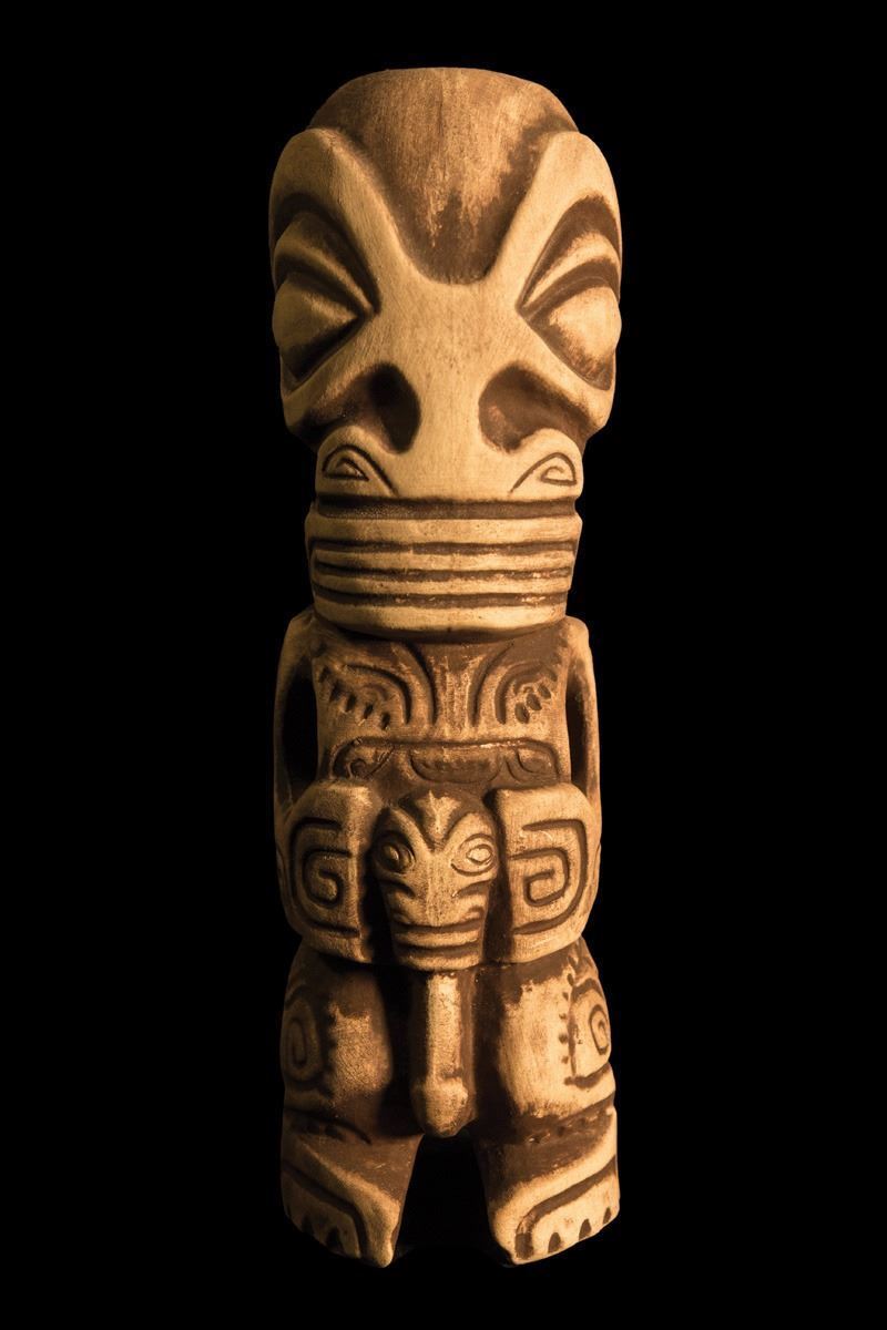 (2012) TIKI DIABLO - This is an early production prototype mug with a white/black wipe glaze.9"VG+