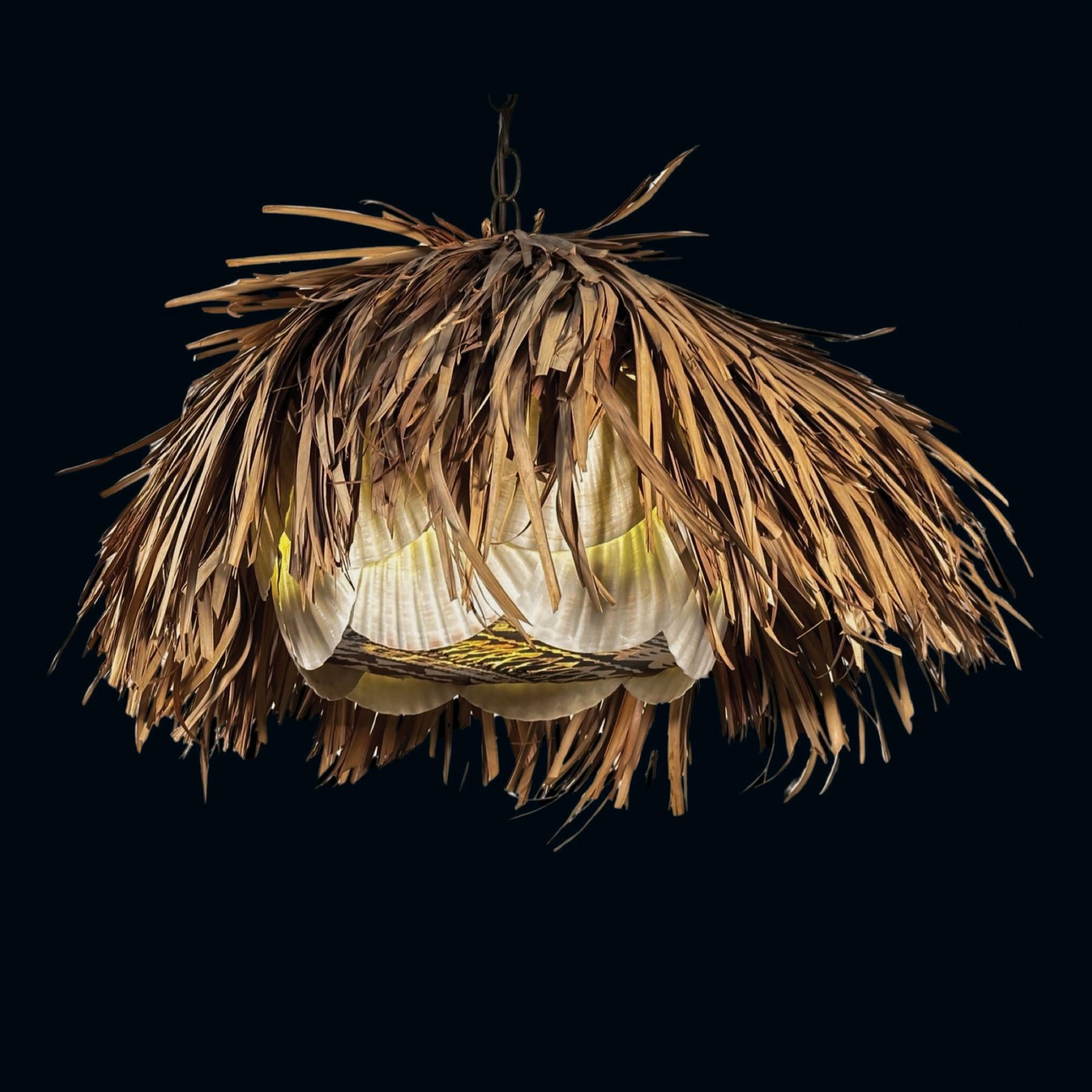 OCEANIC ARTS #2328-A "SEA SHELL LIGHT" WITH THATCH.