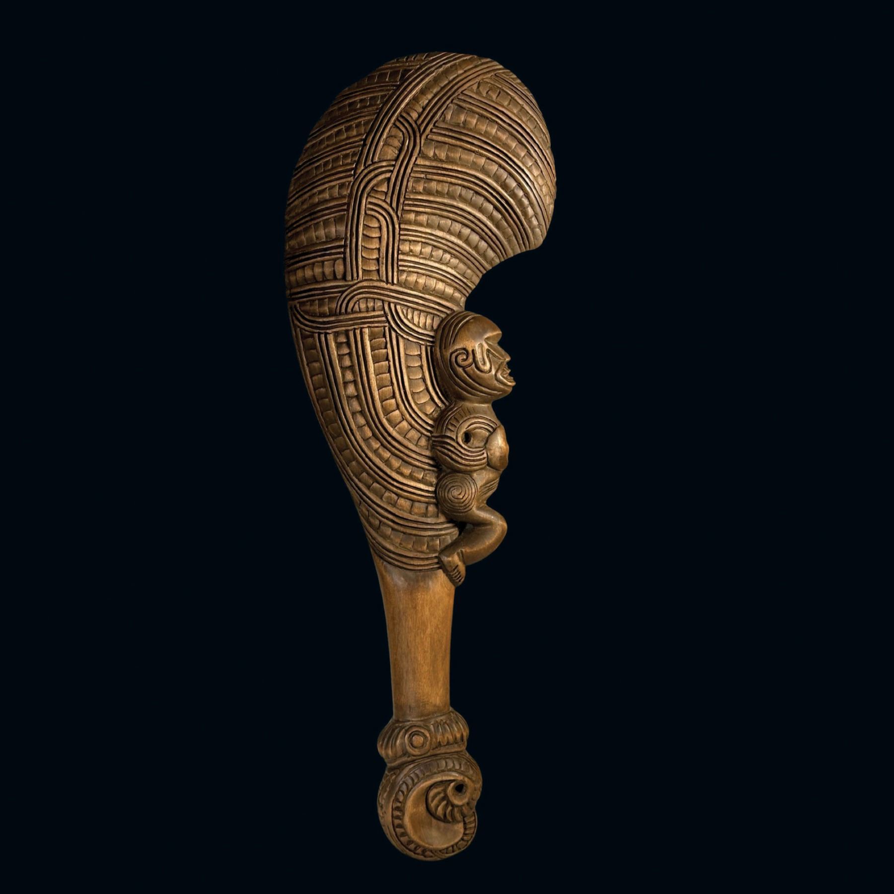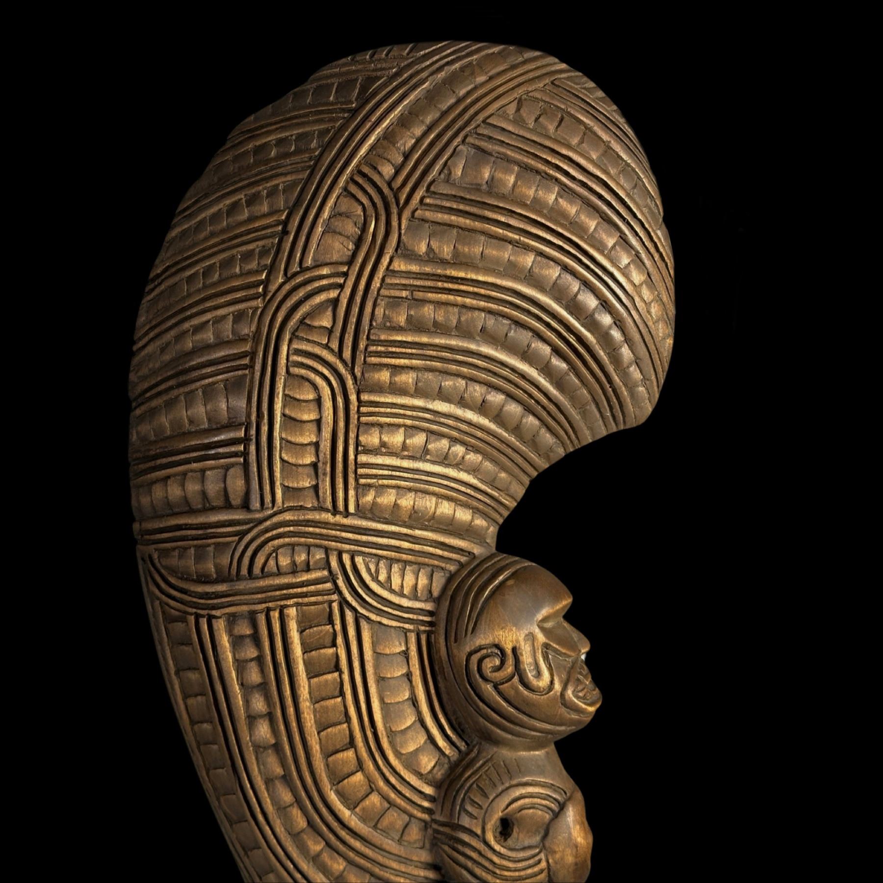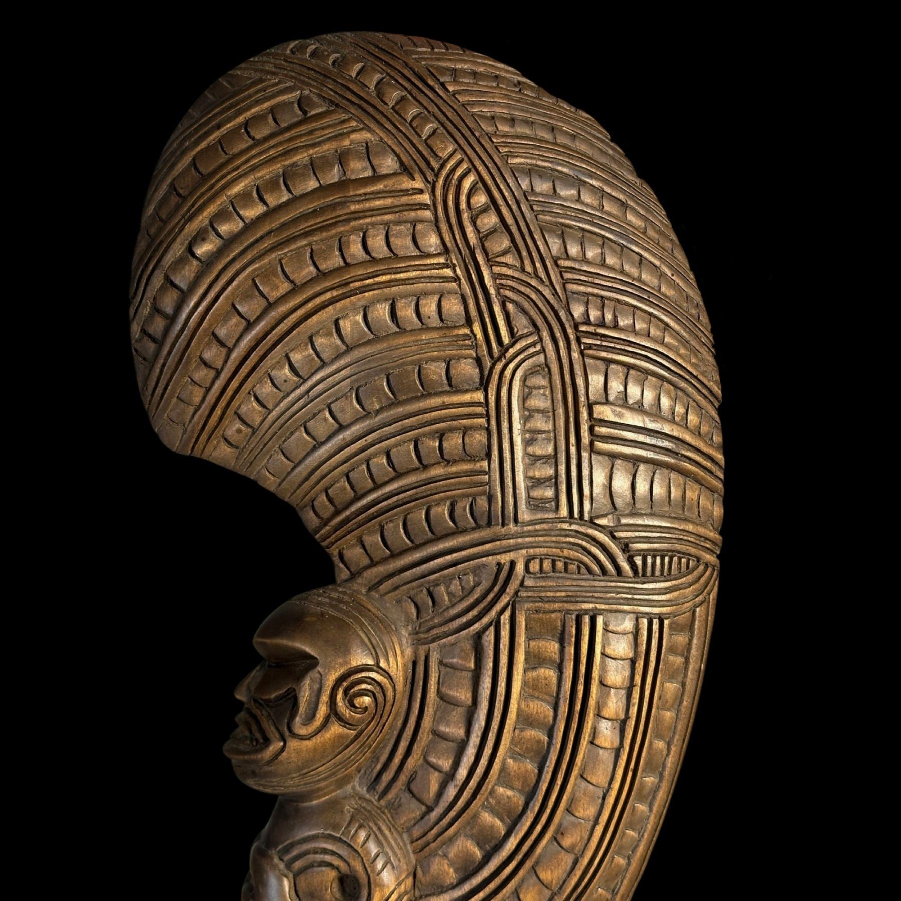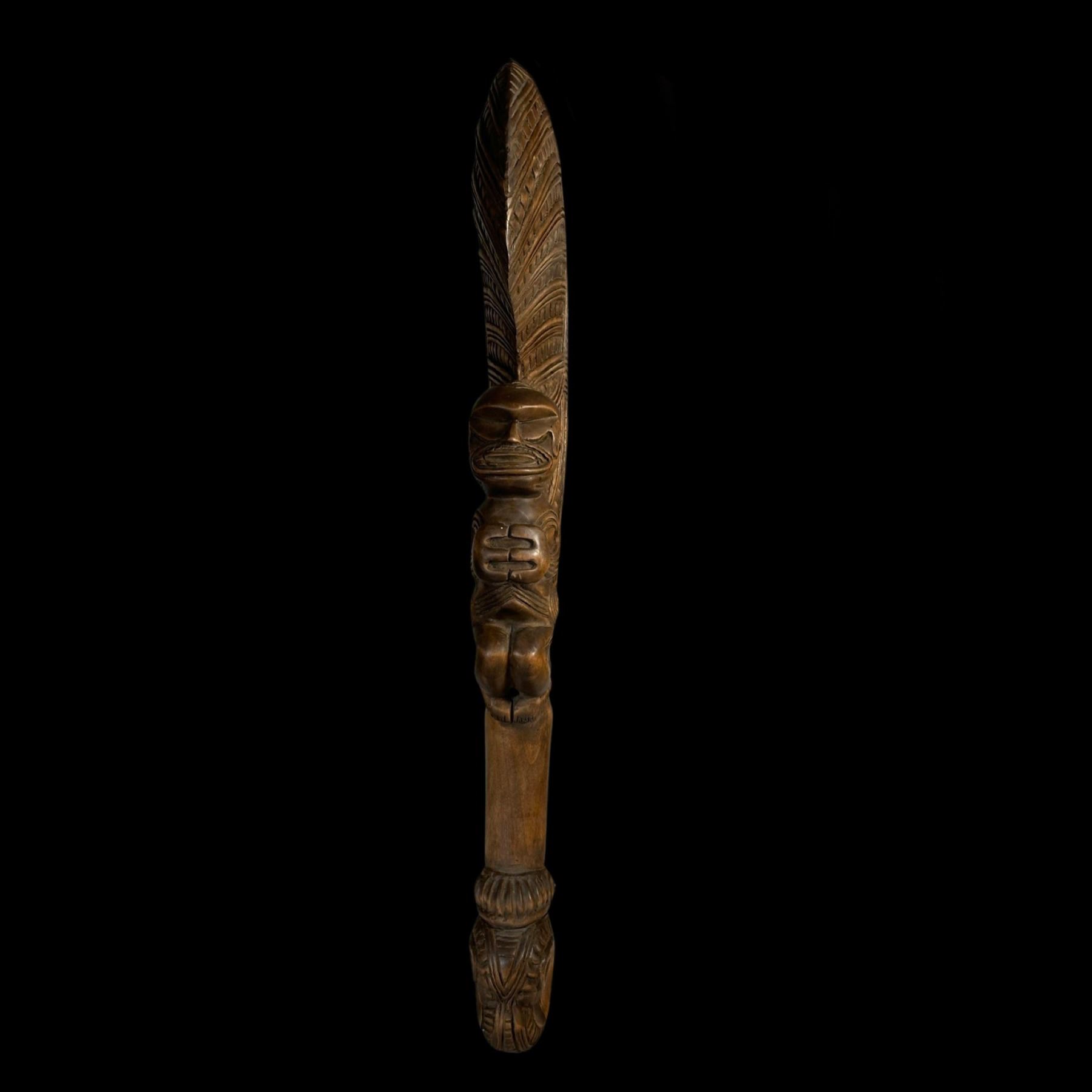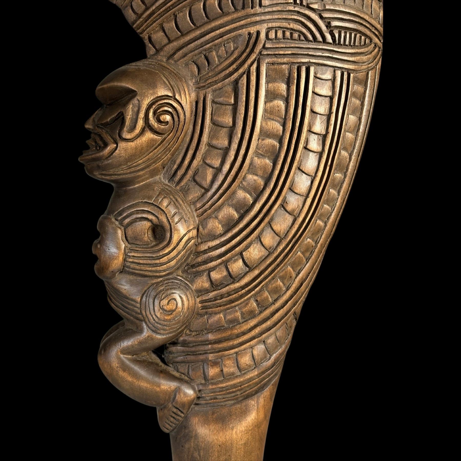 (1980s)* An Oceanic Arts classic. Used in many famous Polynesian palaces from the San Francisco Tonga Room to the Naniloa Hotel in Hawaii. Described as "one of the finest pieces of Polynesian art we offer" in the OA catalog. VG+. 11"x32"x3".