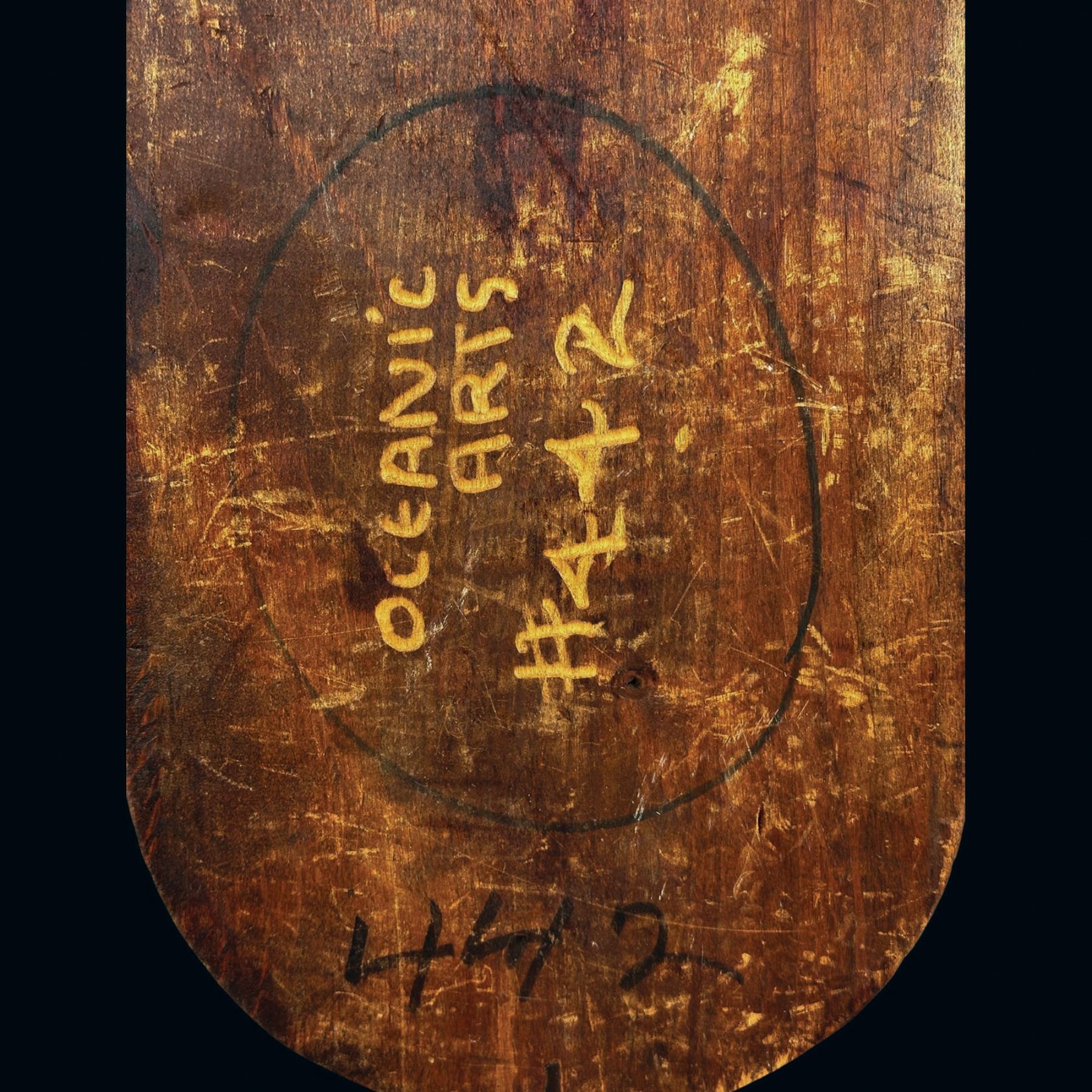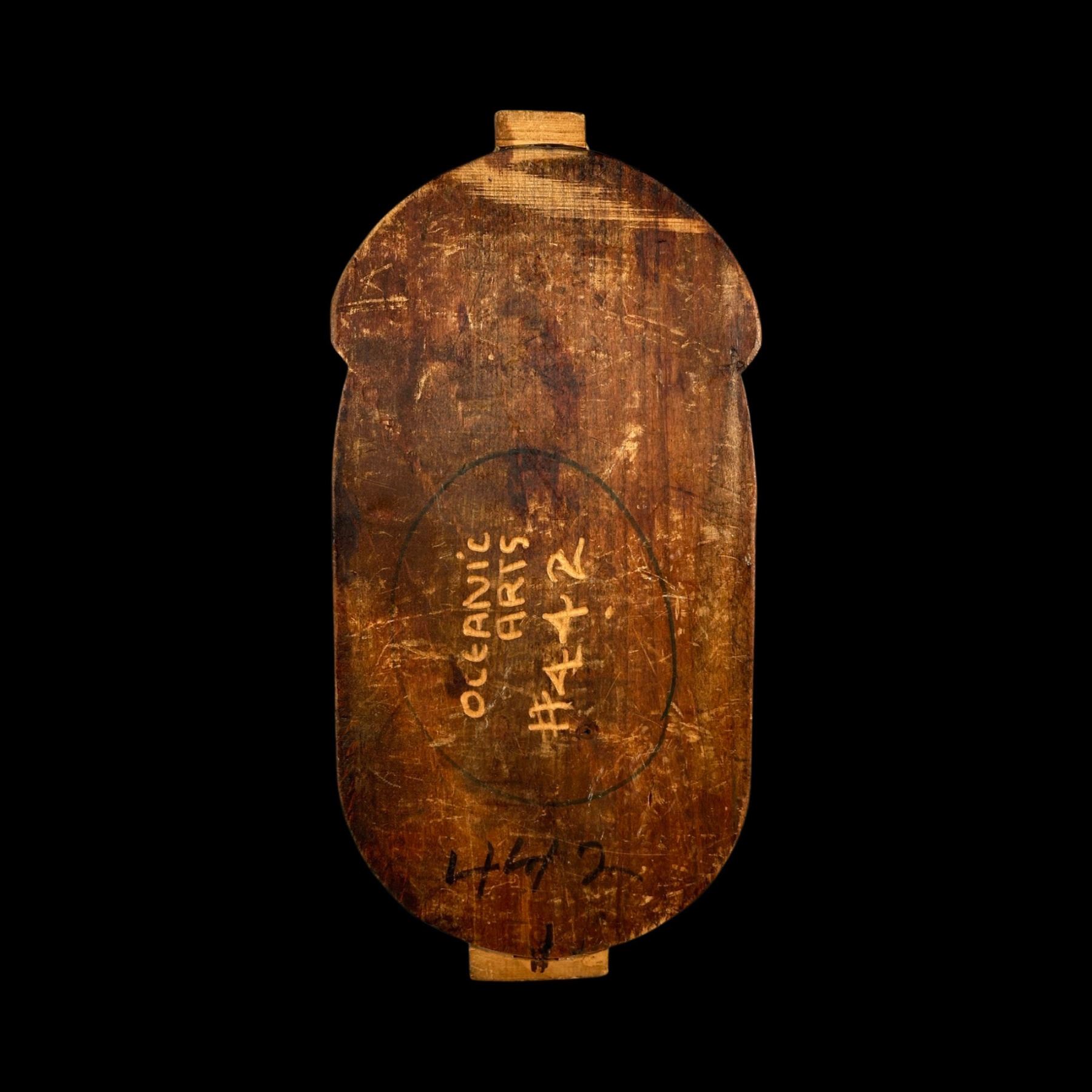 (1960s) This "Tahitian Mask" style is among some of the earliest offerings by OA and has been out of rotation since the 1970s. A beautiful, bold carving with spindle chocks attached. Marked on verso with production number. VG+ with typical wear from pattern use with general wear and scuffing. 9.5"x19.25".