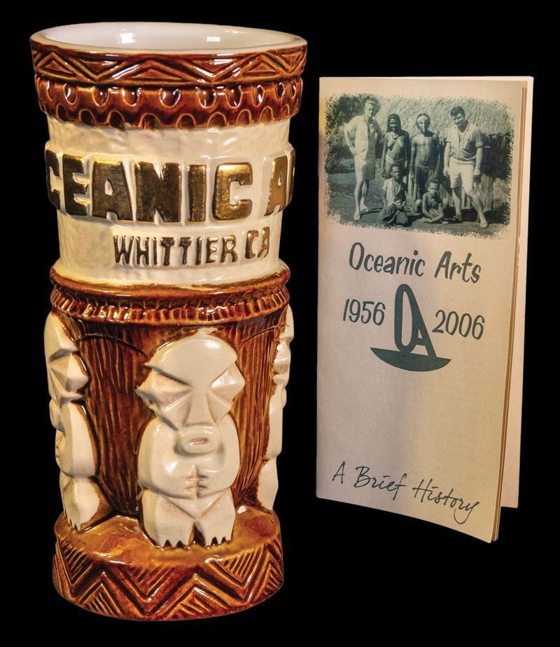 (2006) TIKI FARM's long sold out edition of the Oceanic Arts 50th mug in Brown, white and gold glaze. 7.5" VG+