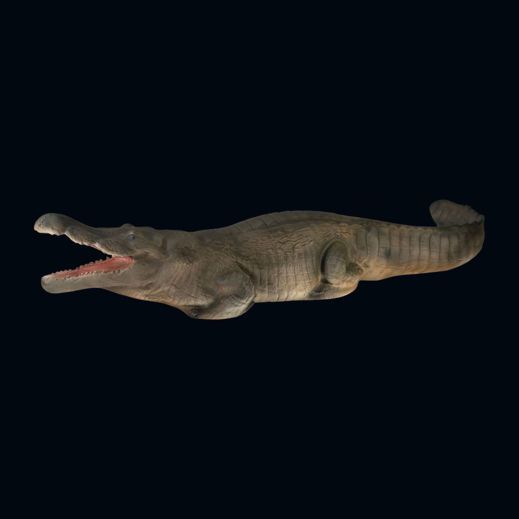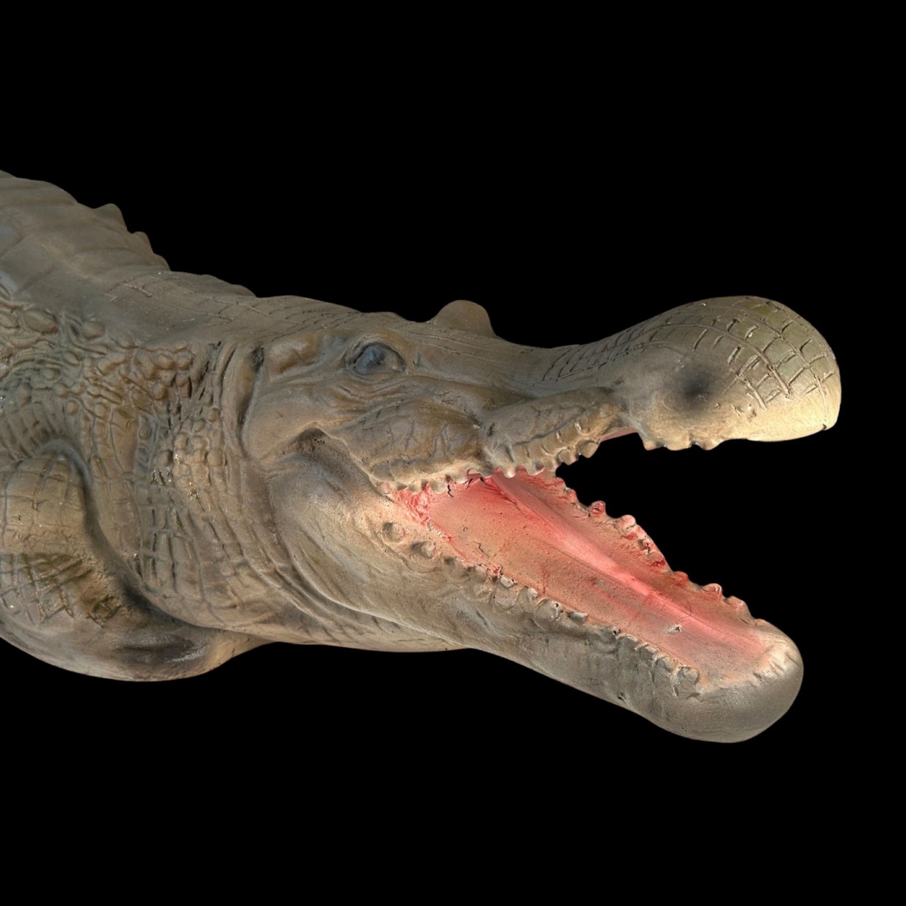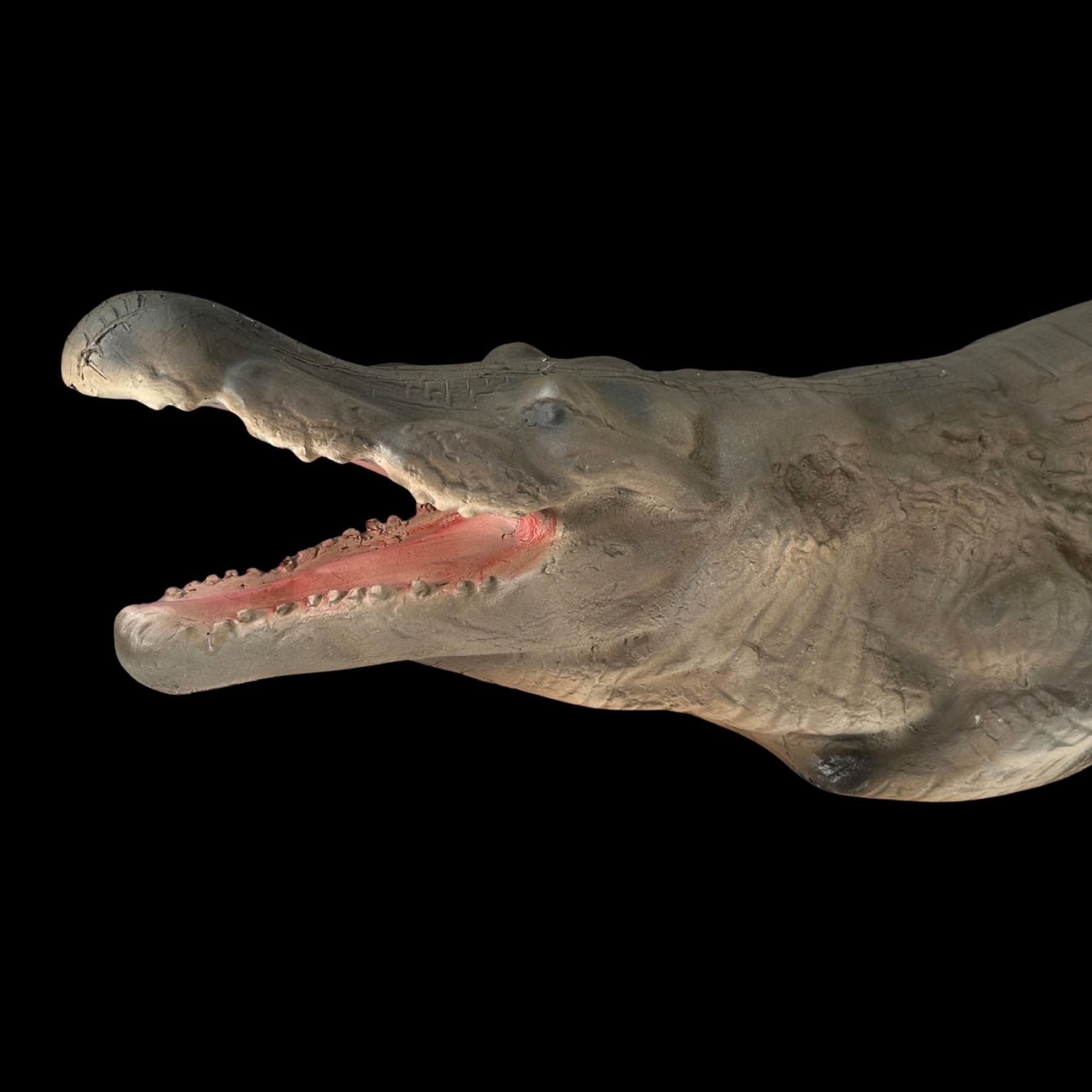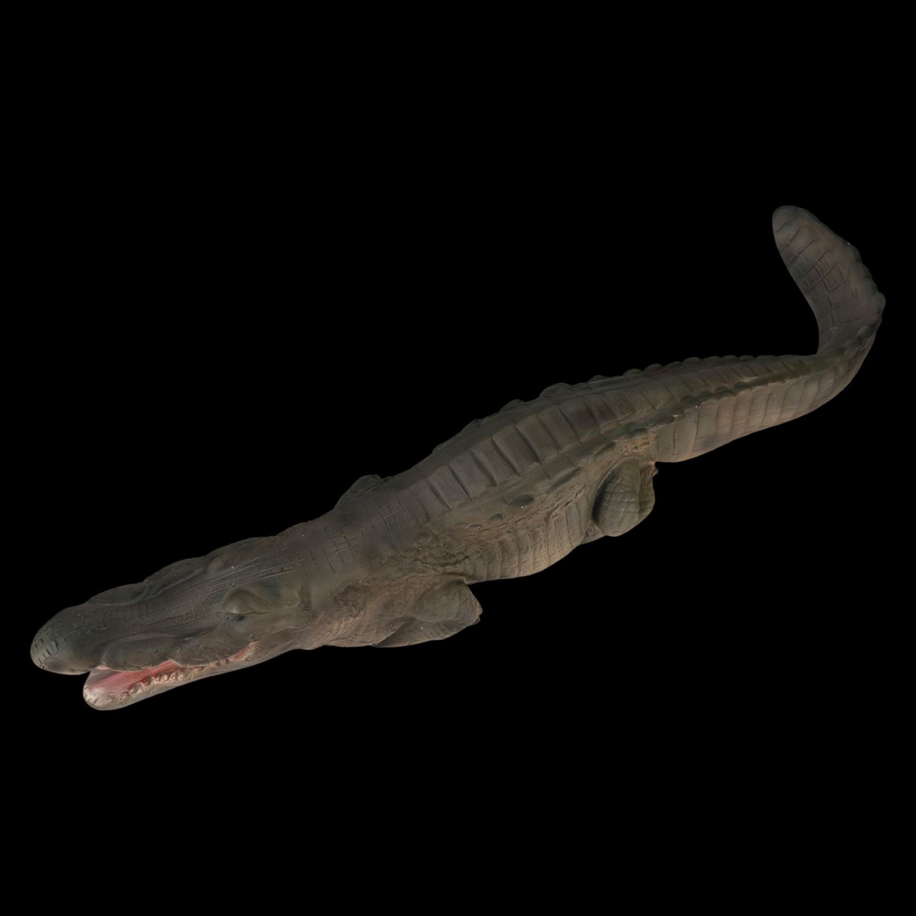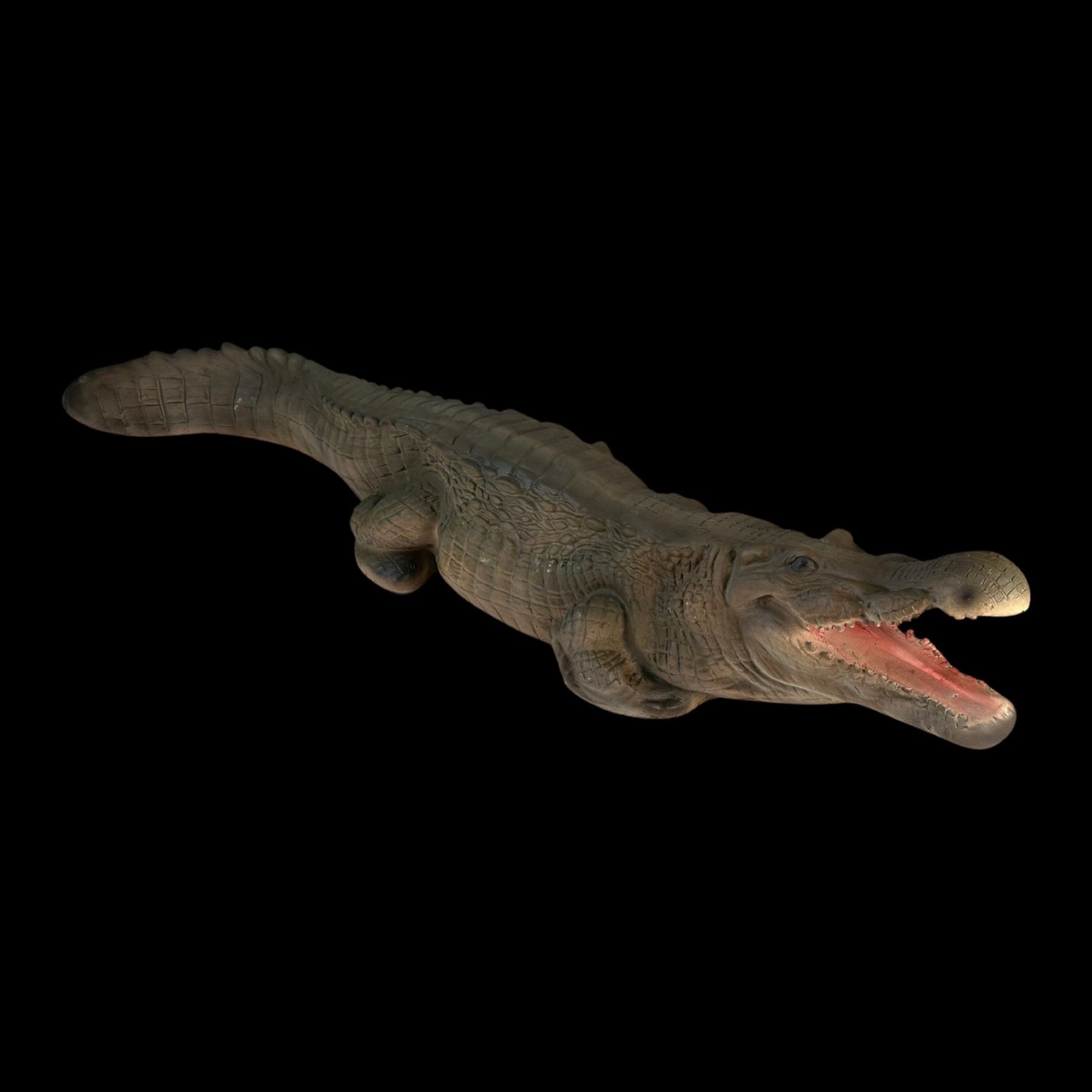 (1990s) This pattern of fiberglass alligator has been carried by OA for years both in the catalog and rental department. Very solid. Unissued in original shipping box. VG+. 49"x9"x8".