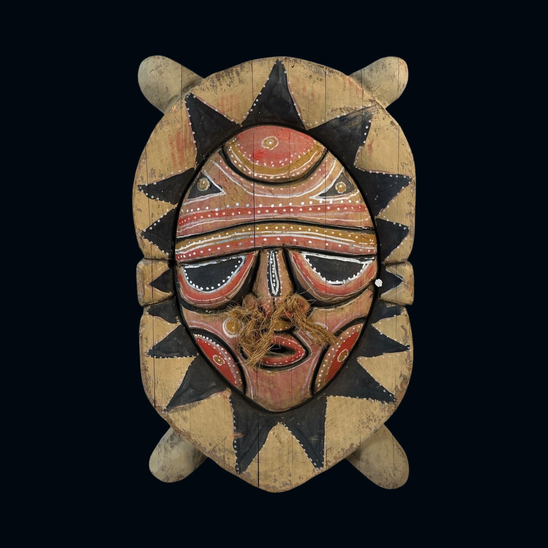 (1980s) A signature #516 New Guinea mask from OA by LeRoy Schmaltz. VG+. 11.5"x18".