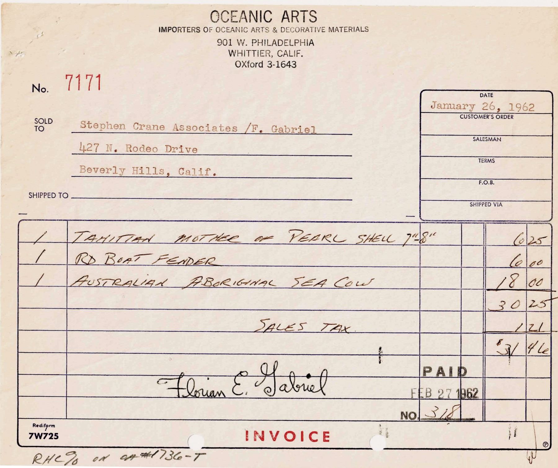 SHIPPING IS A SEPARATE TRANSACTION through Peekaboo Gallery on smaller items and our partner third-party shipping partners on larger items. WE DO NOT ship large items. It is the responsibility of the buyer to arrange shipping through us, our shipping partners, your own shipping agent OR the recommended scheduled pickup appointment at the Oceanic Arts warehouse in Whittier, CA.