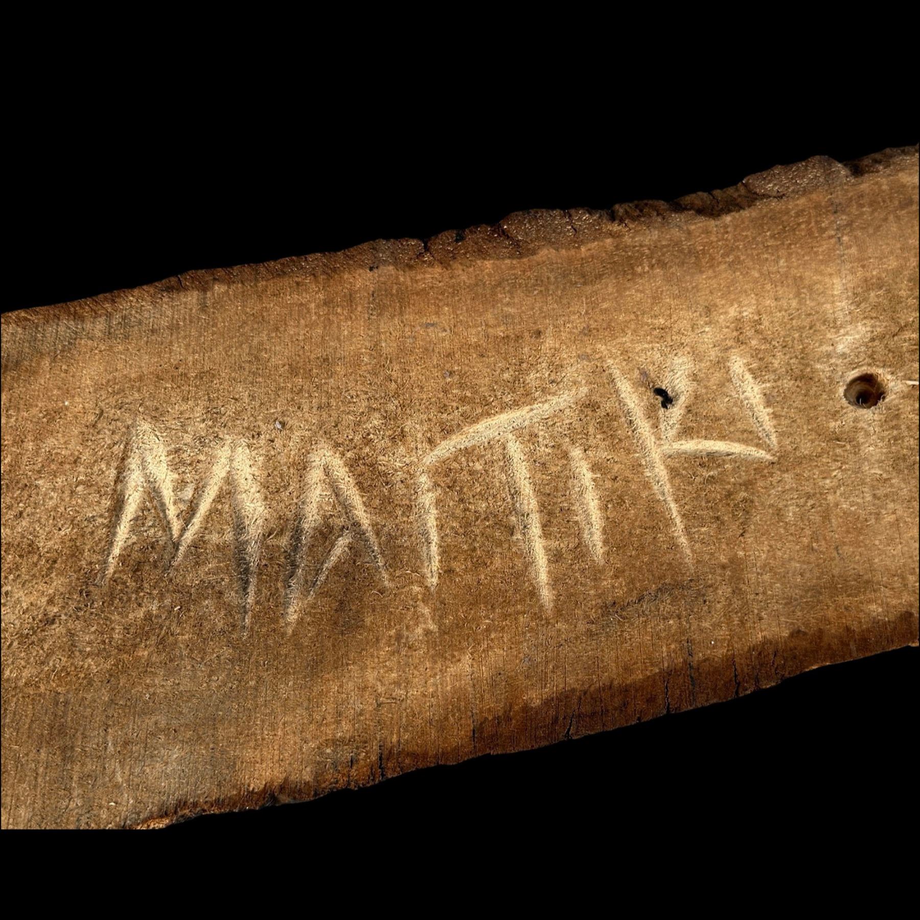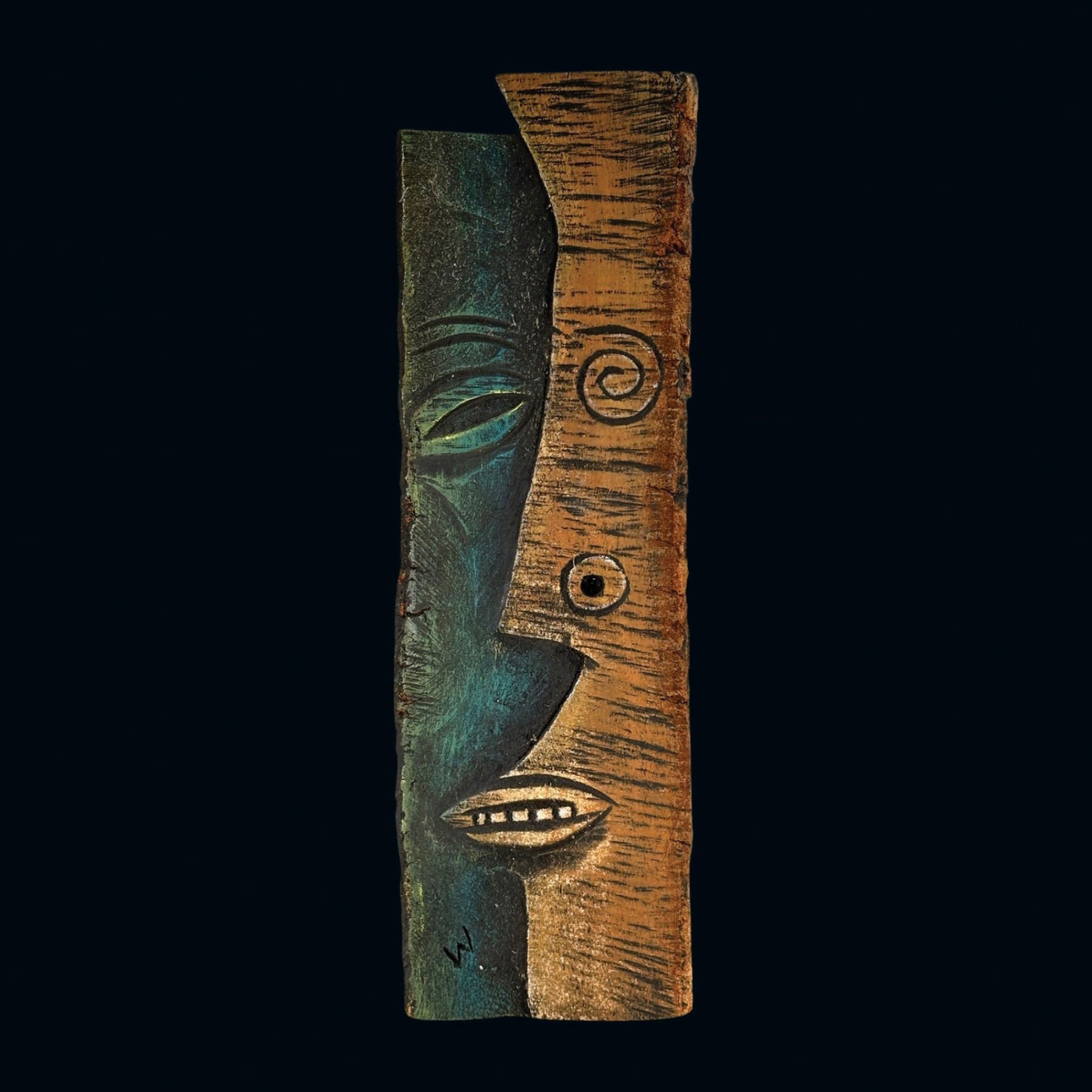 (2000s)* Abstract modernist wall hanging by beloved Florida Tiki carver Wayne Coombs. VG+. 6.75"x21.25"x1".