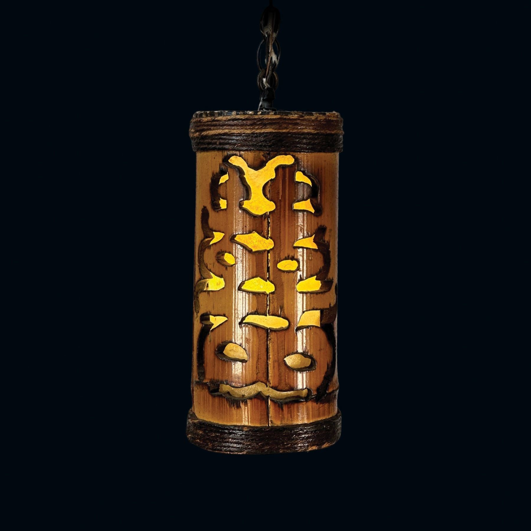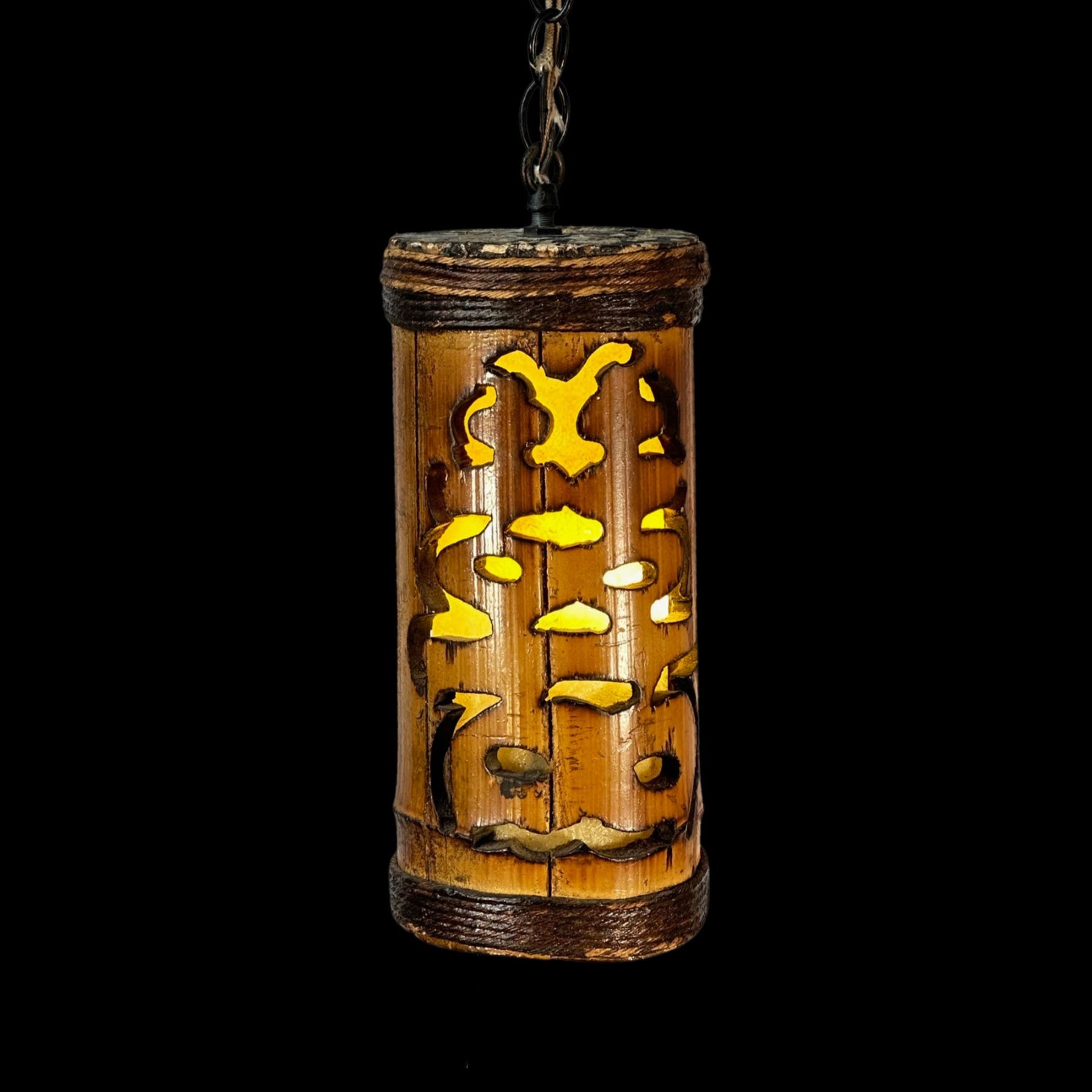 ORCHIDS OF HAWAII BAMBOO HANGING LAMP w/ CHINESE HANZI CUTOUT.