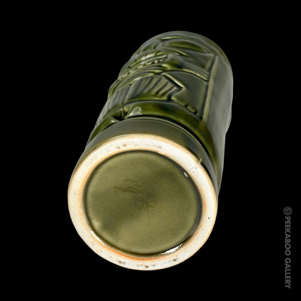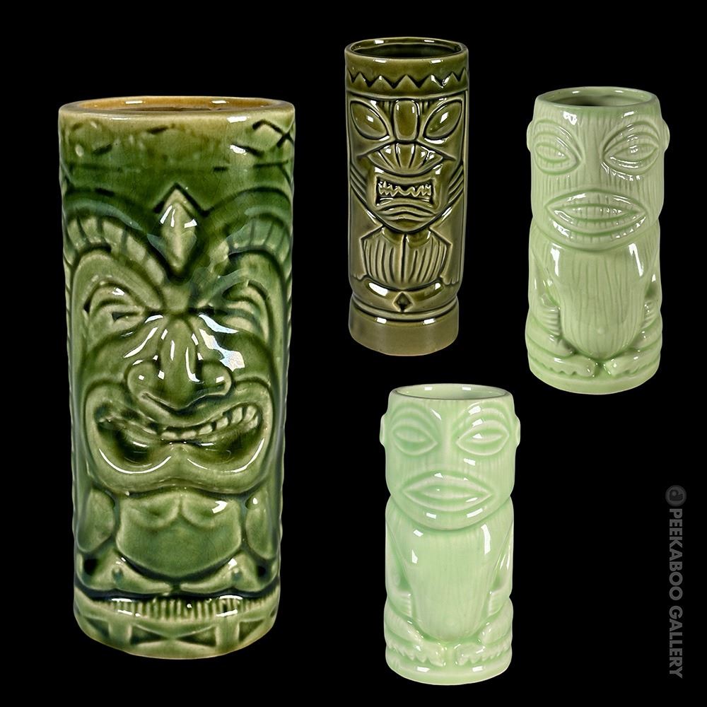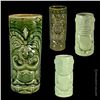 (1960s) VG+ with typical wear. Two-Faced-6.5"x2.5"dia, Smiling-6.5"x2.75"dia, 2x Mint Green-6"x3"dia.