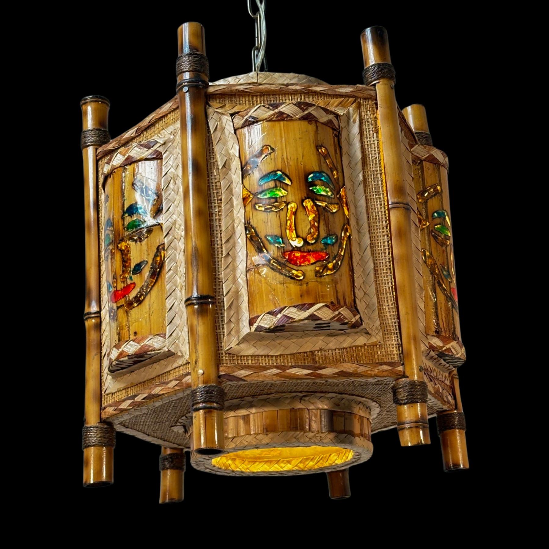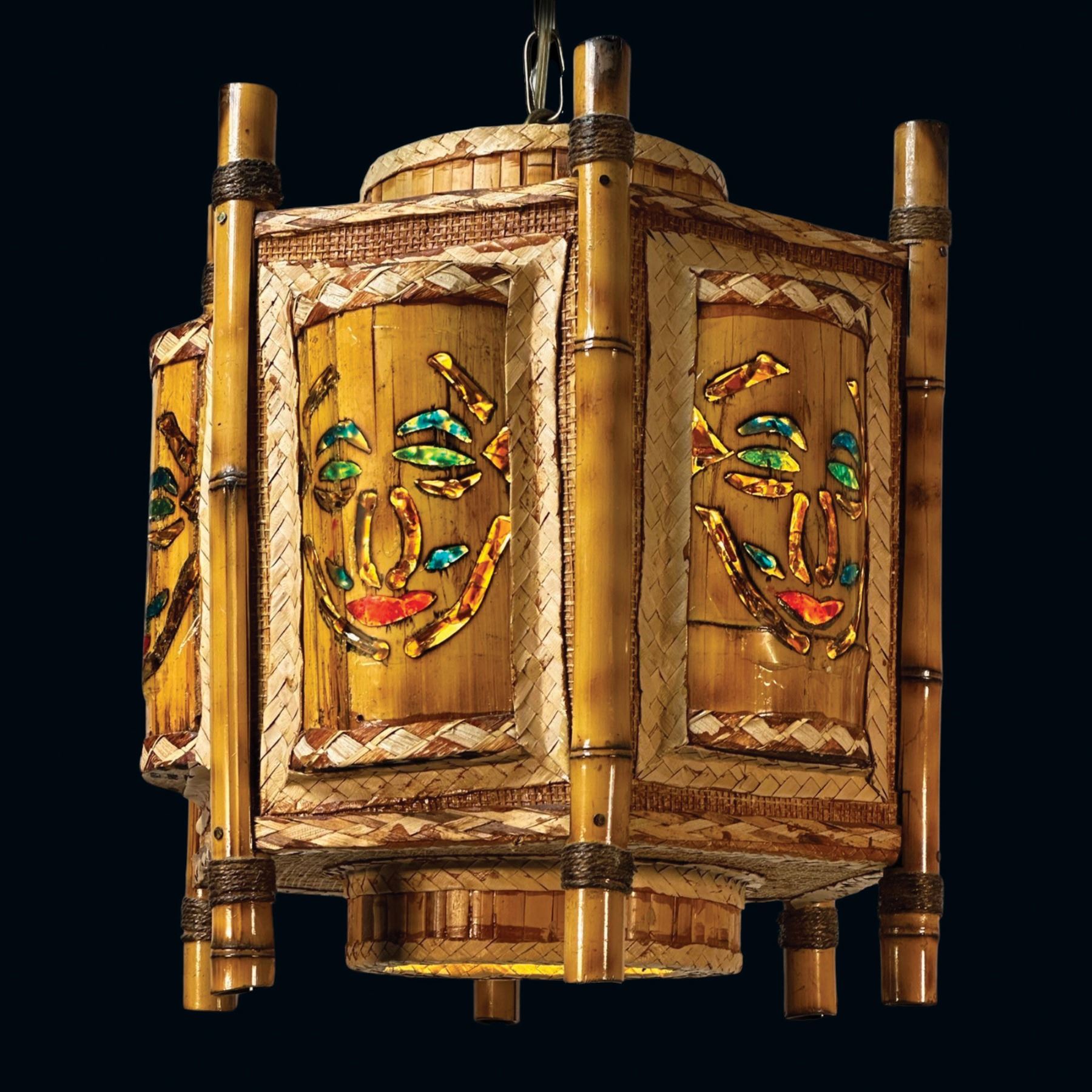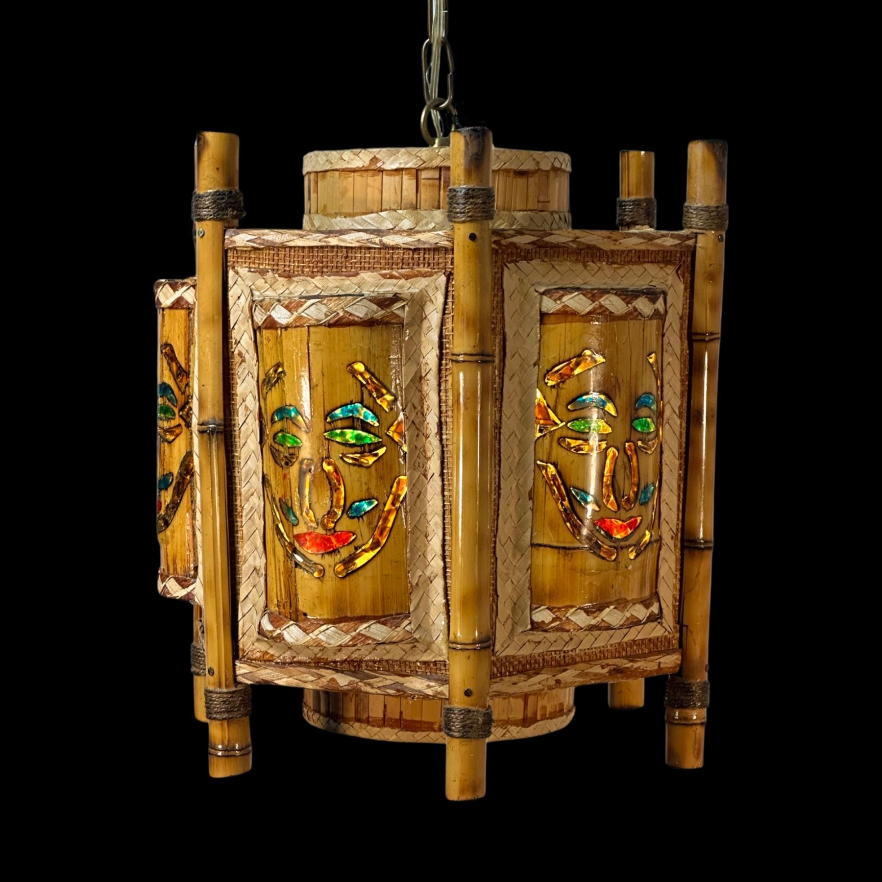 (1960s) Another classic from Orchids of Hawaii. These hearty lamps epitomize the look of Polynesian Pop decor. VG+ with typical wear. 15.5"dia x 16.5".
