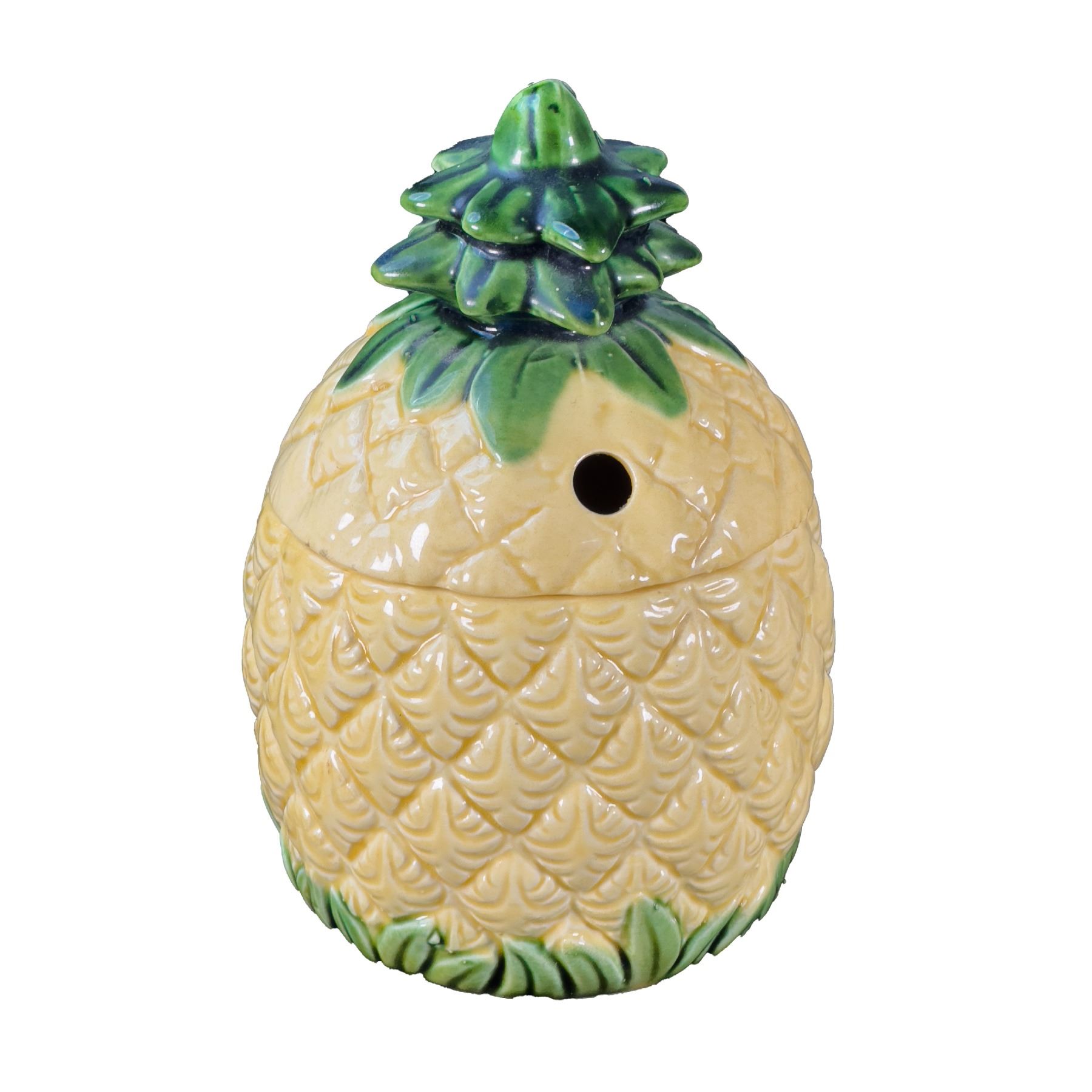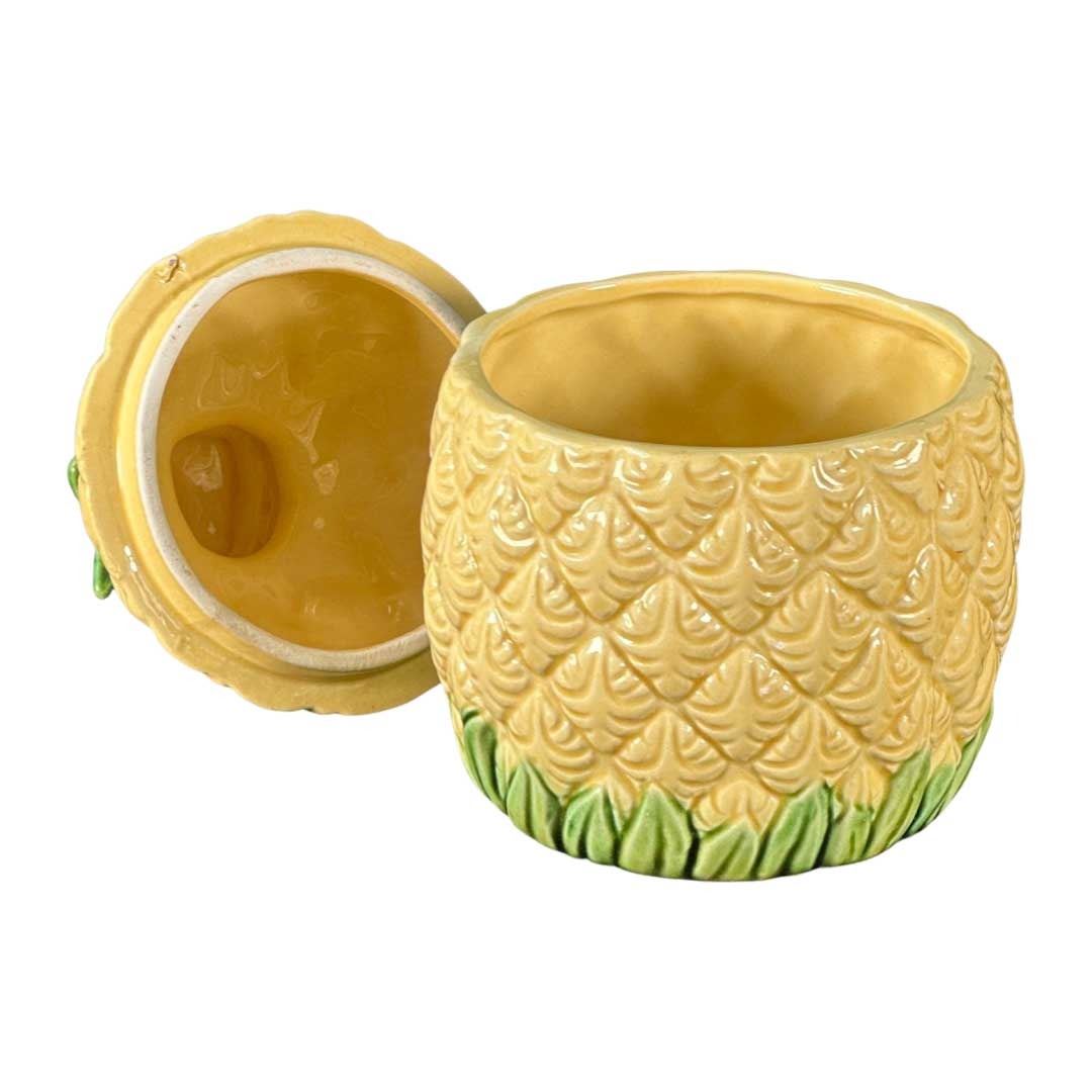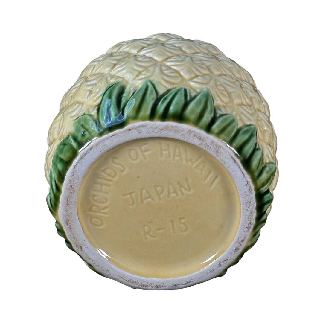 (1960s) Out of the Orchids of Hawaii general Tiki mug catalog. Removable lid with straw hole. Mug 3.75"x3" w/ lid 3.75"x6". VG+.