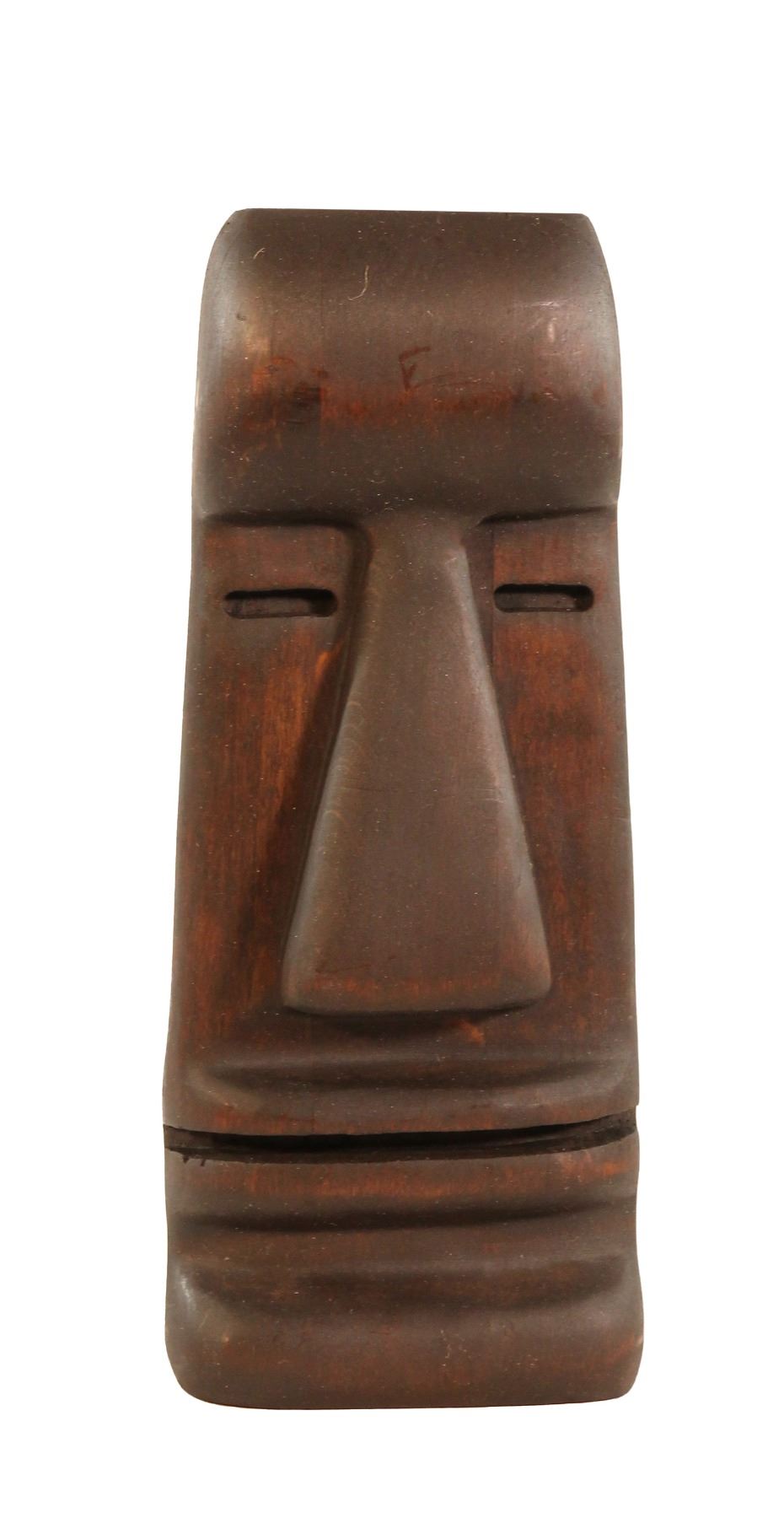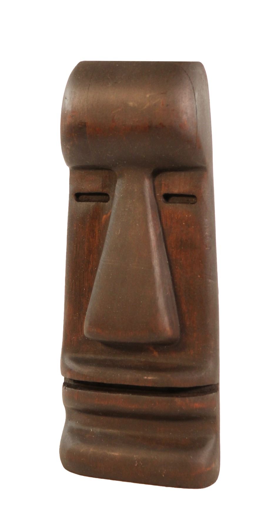 (1960s) An Oceanic Arts catalog item #437. Hand carved, beautiful natural wood grain enhance this Moai Tiki figure. Solid wood. 11.75"x4.75". VG+.