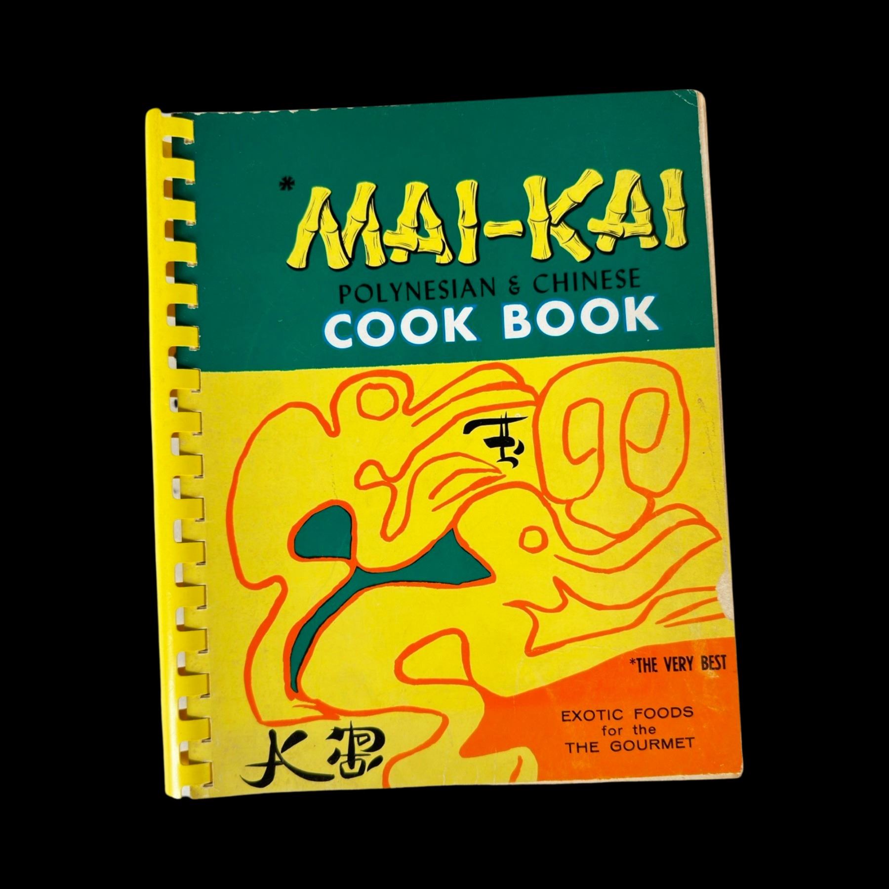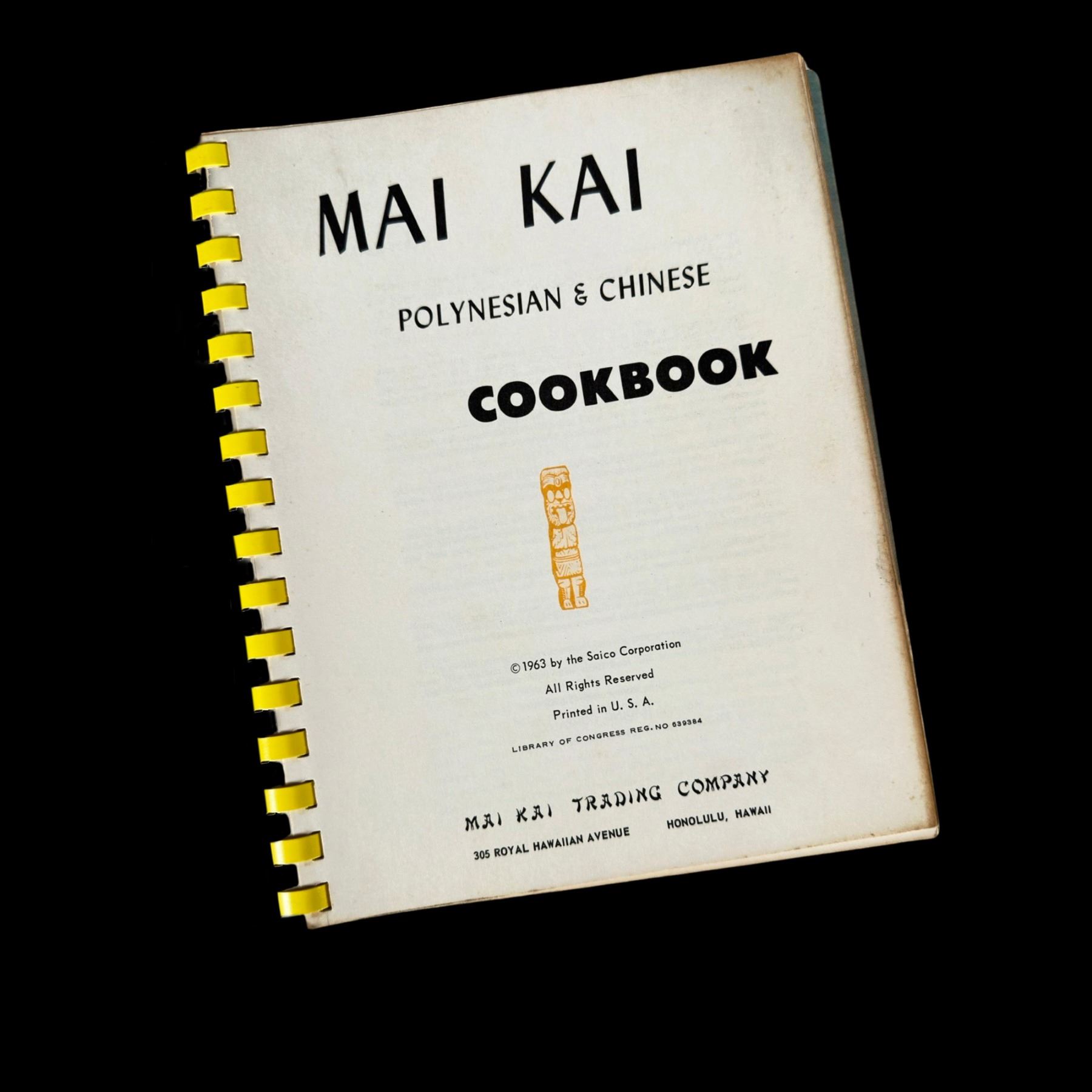 (1963) Very rare MAI-KAI cookbook supposedly marketed at the famous MAI-KAI gift shop in Fort Lauderdale, Florida. Many 'poly-asian' recipes featured in this book...the Chinese/Polynesian fantasy hybrid type one would find on the menu at any given Tiki restaurant in the 1950s and 60s. Fun! Spiral bound. 184pp. VG+. 8"x7".