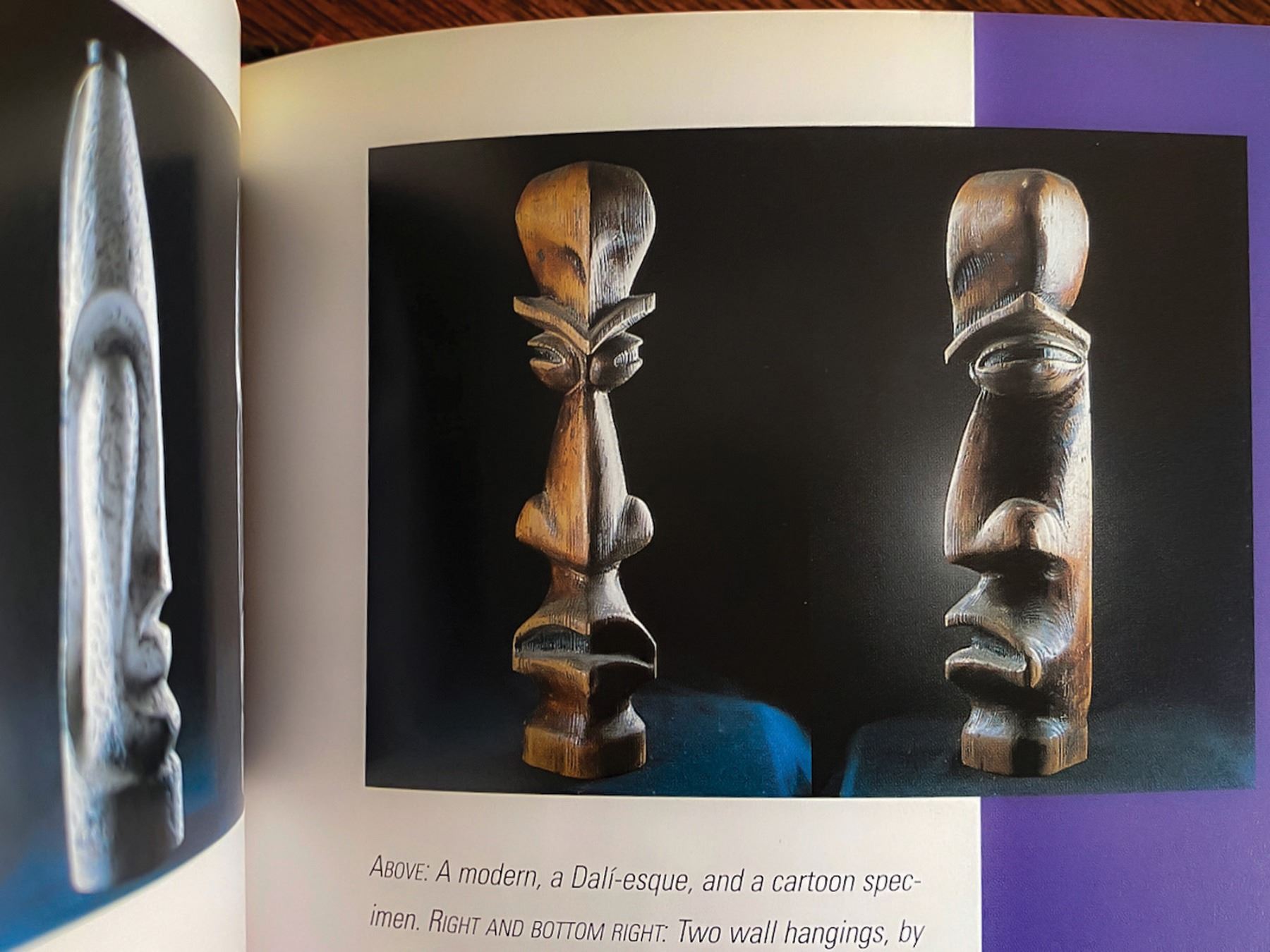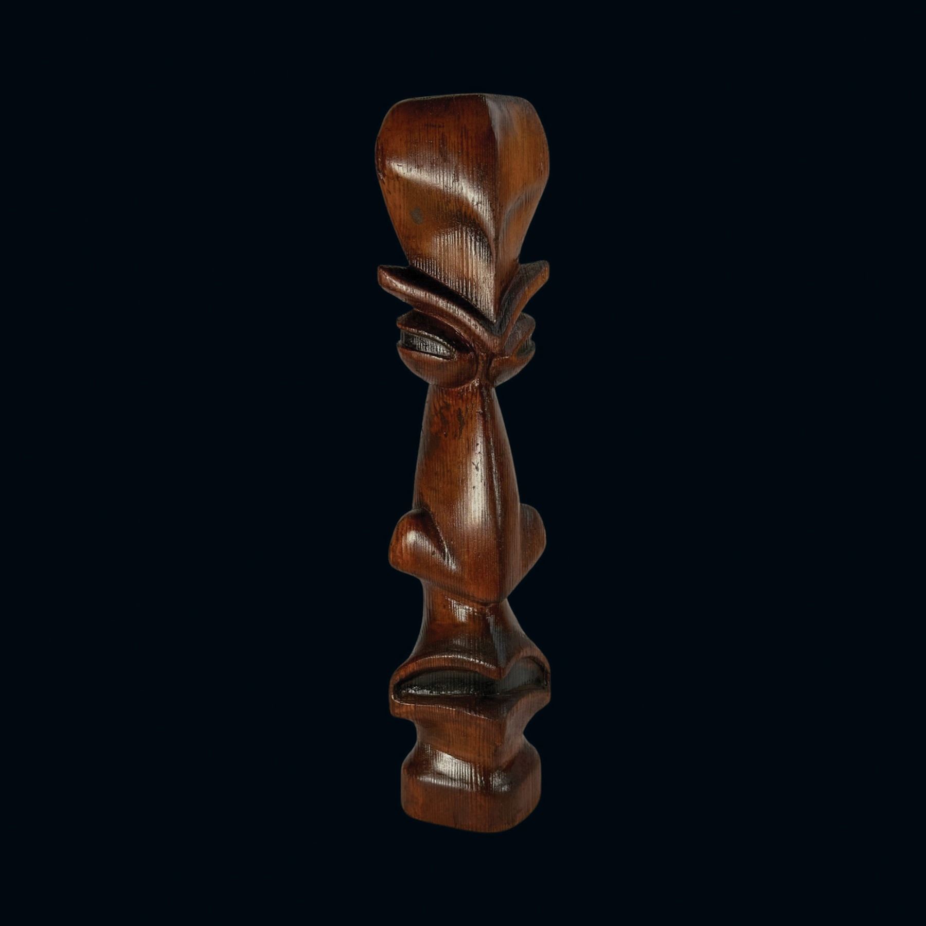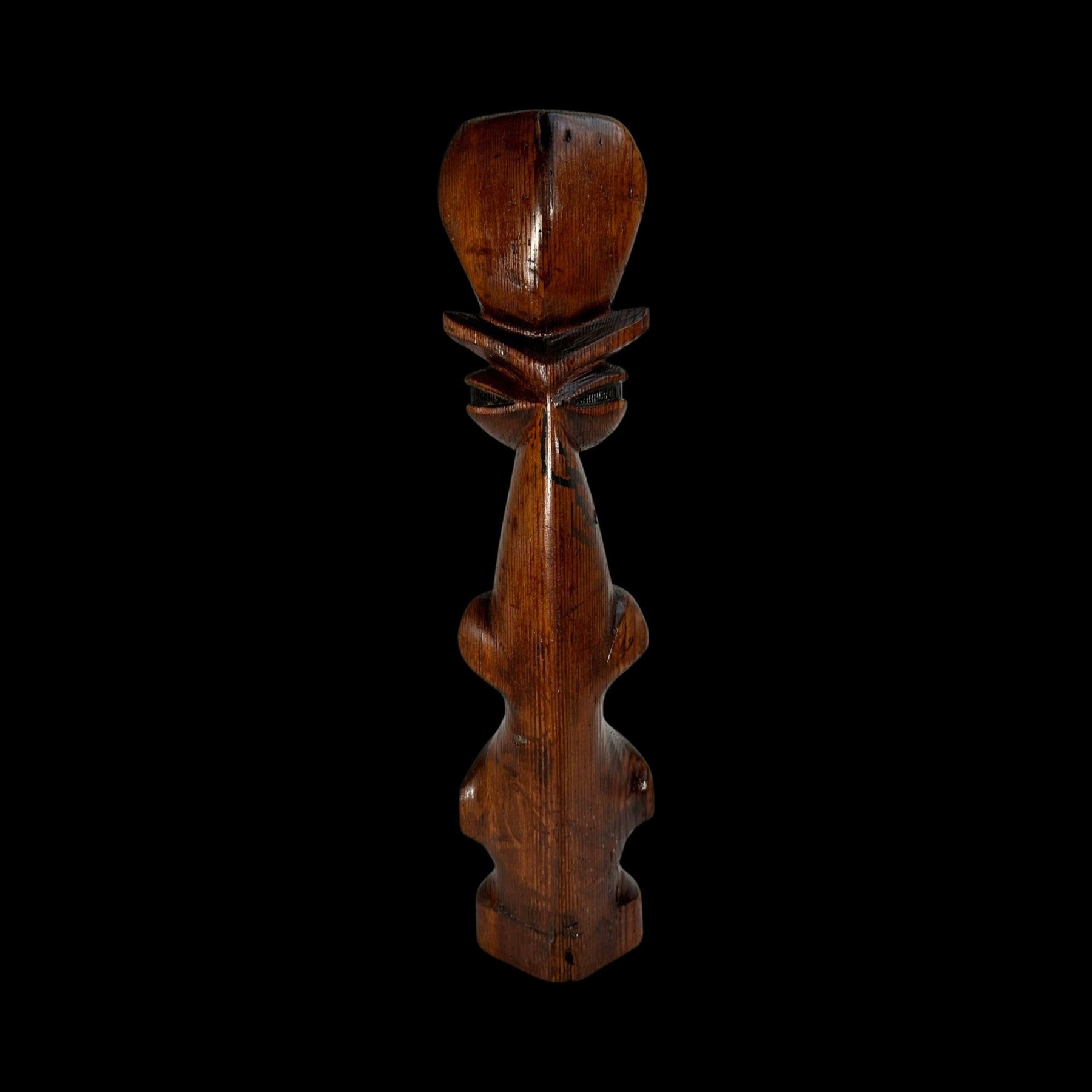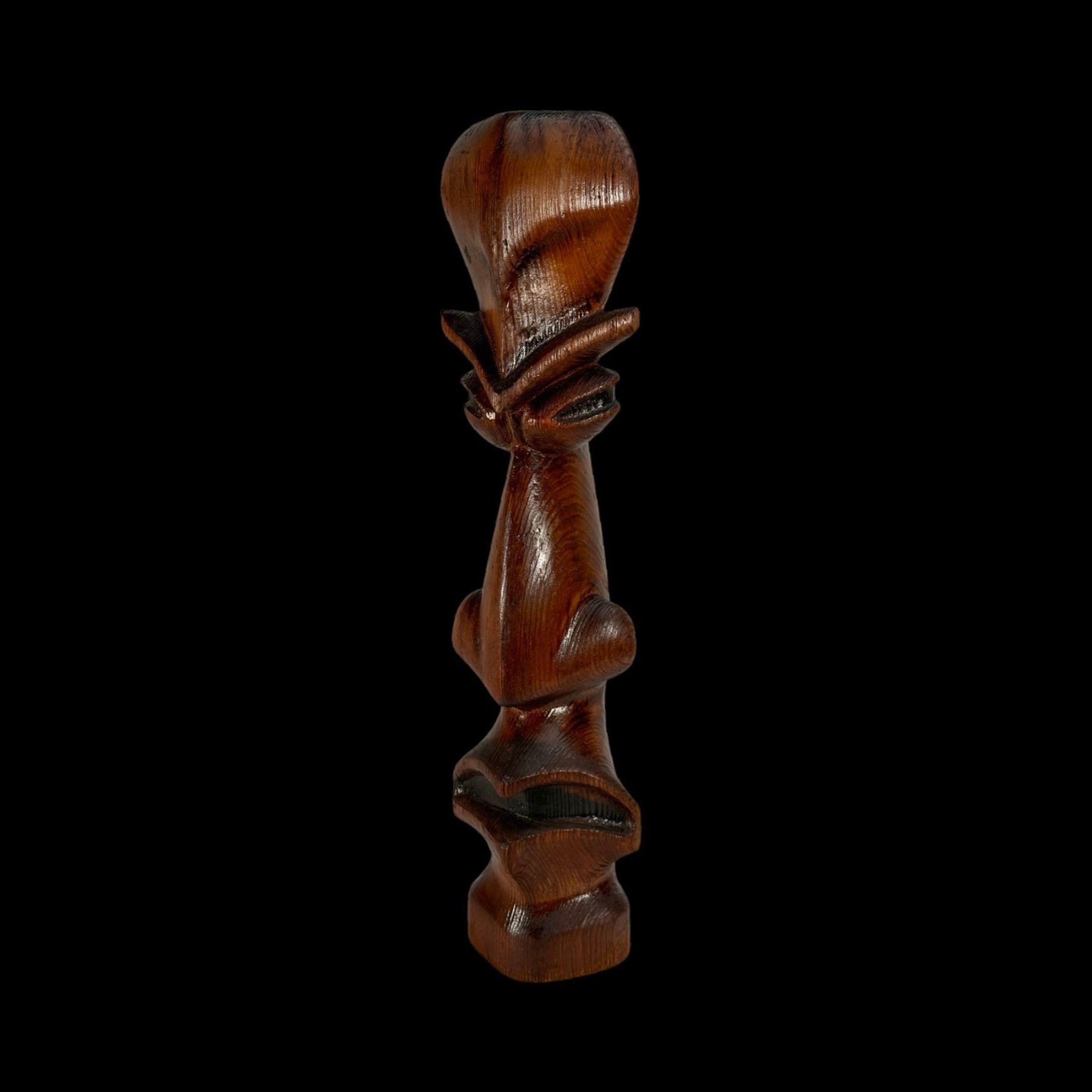 (1950s)* Reduced to the eyes, nose and mouth, this Tiki is reminiscent of Salvador Dali's art. Acquired from Danny Balsz of THE TIKIS Theme Park in Lake Elsinore, CA. This was used as the original vintage pattern for an edition of "True Tiki" carvings later sold by Sven. Published in BOOK OF TIKI, pp.187. VG+. 5"x18"x5".