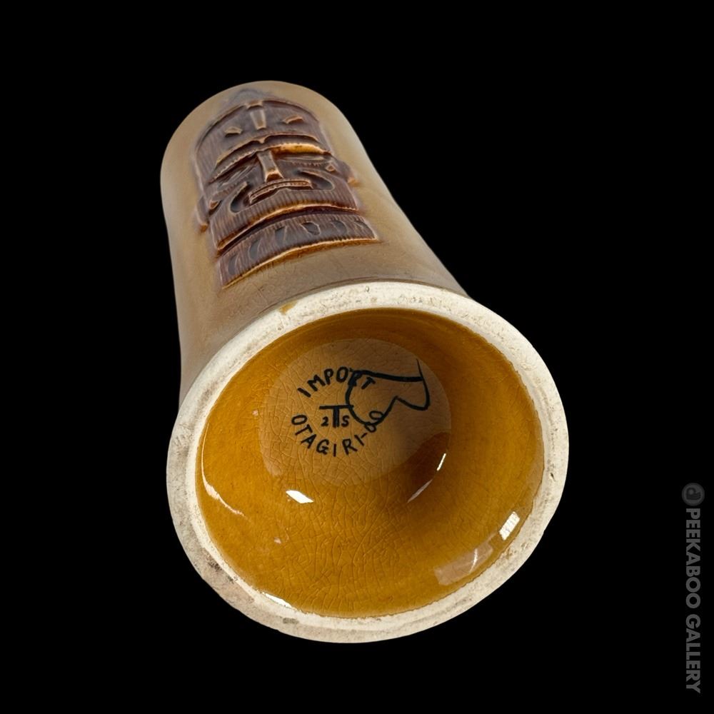 (1950s) A mug that was branded for a few locations and also offered as a general catalog mug from OMC. The design is of the similar "Kon Tiki" style mug in their line. VG+. 7.75"x3.25"dia.