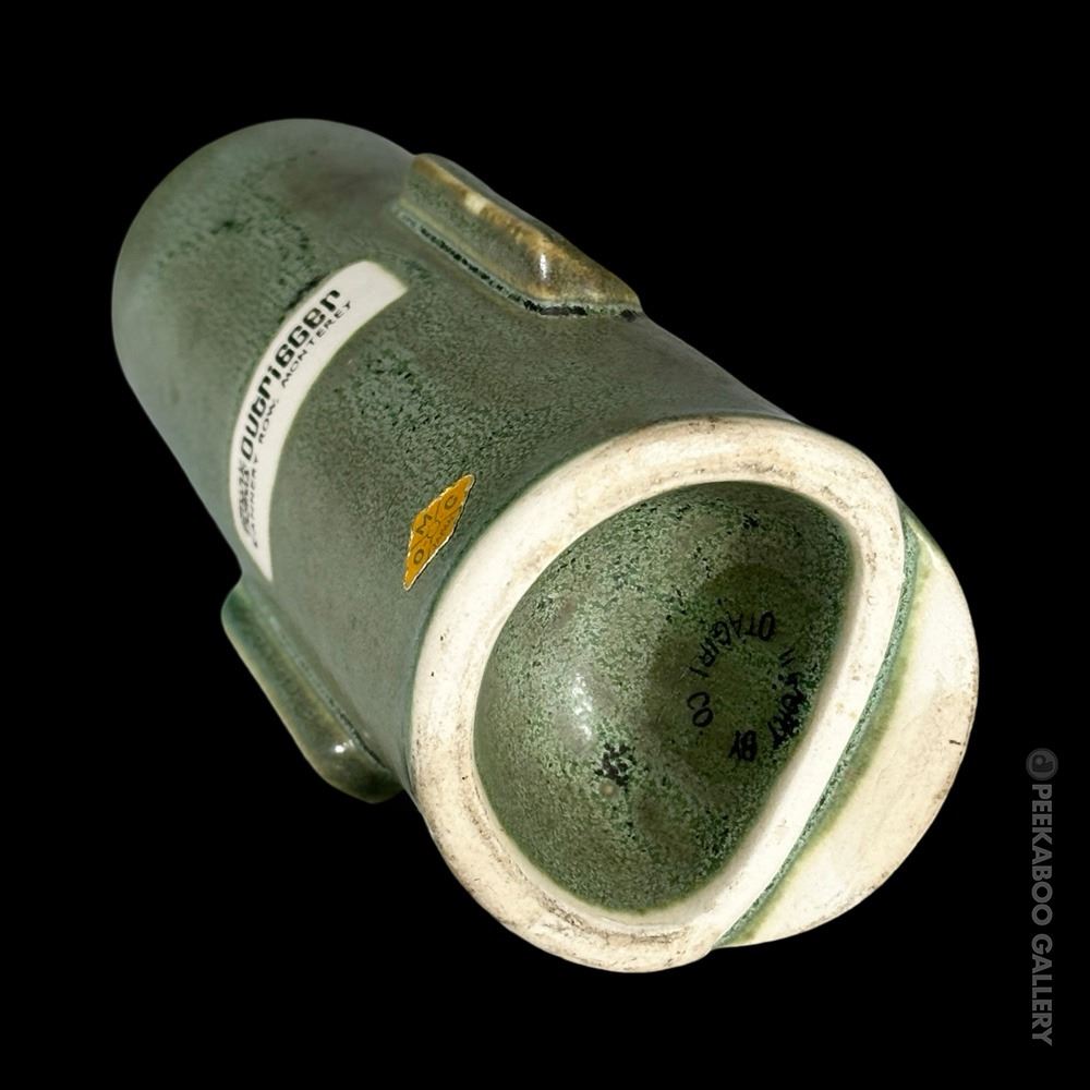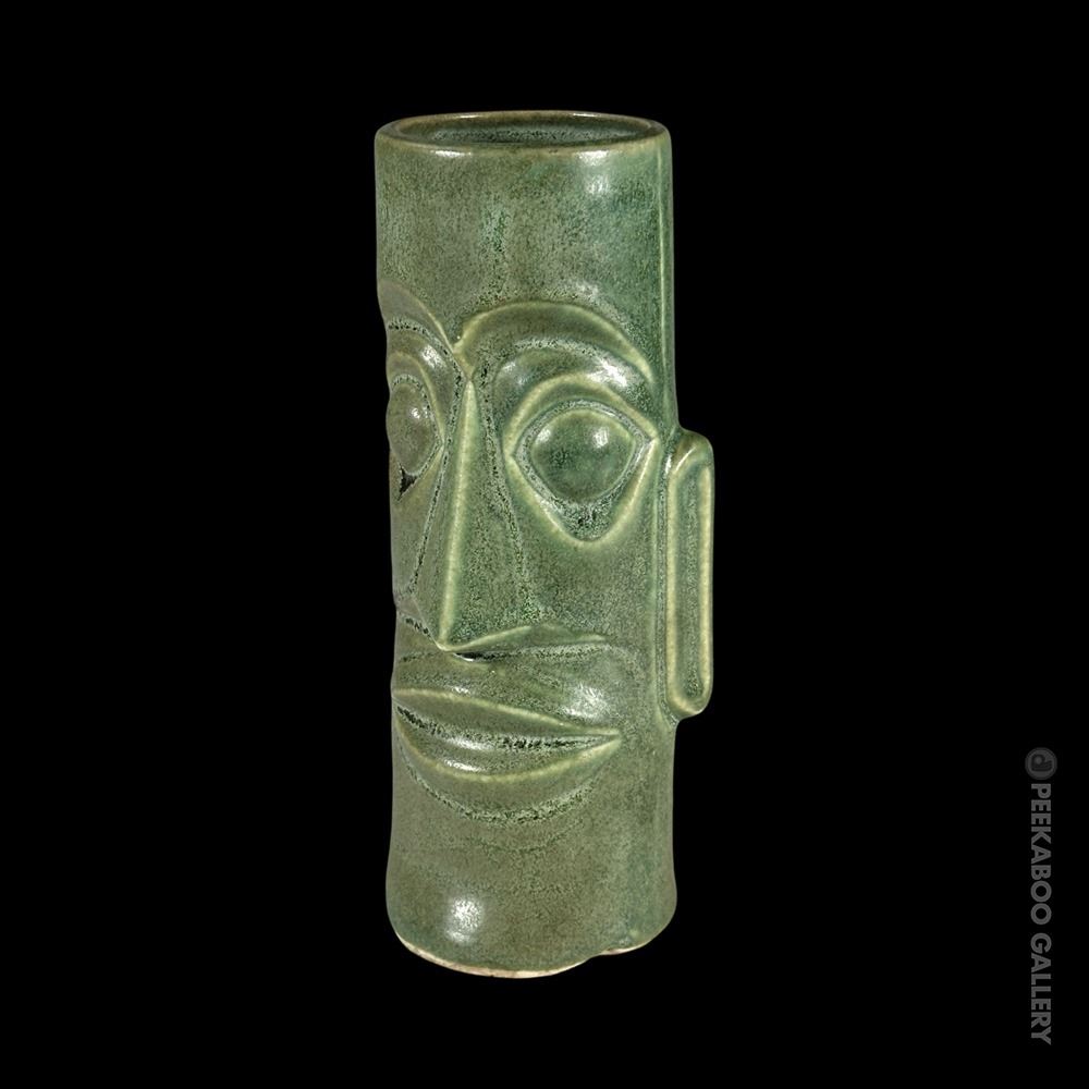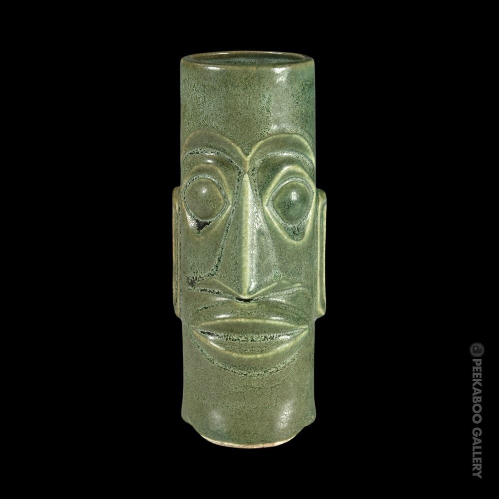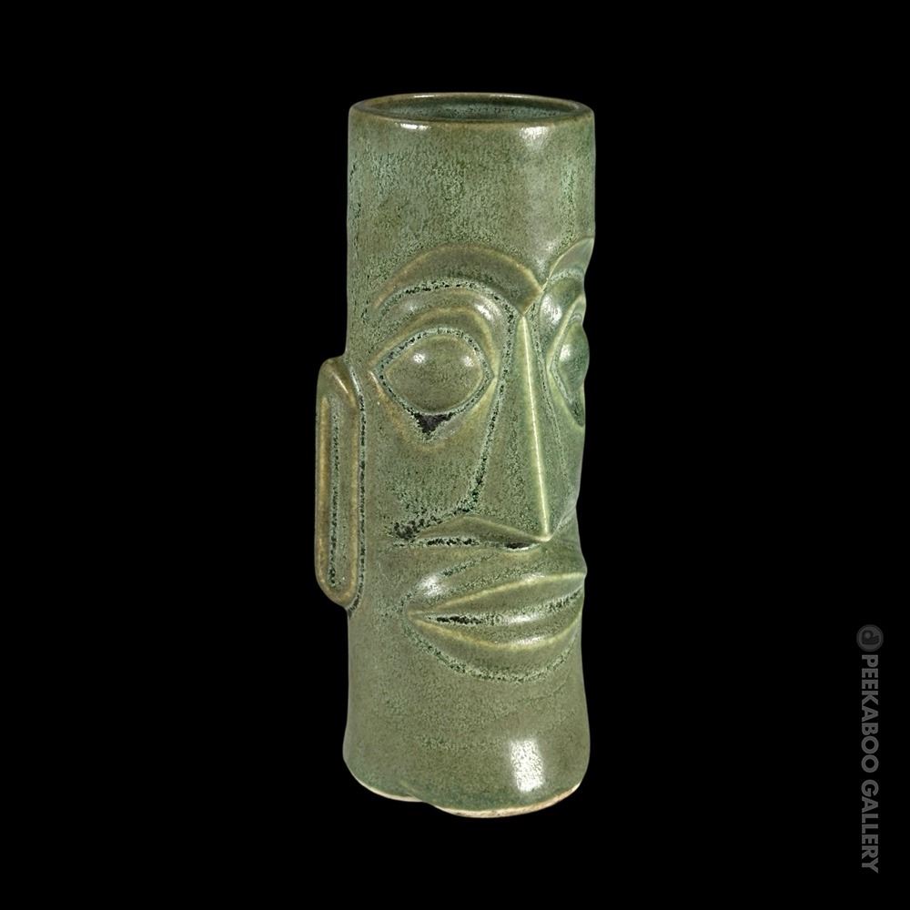 (1960s) One of THE most prototypical Tiki mugs of all time! This stylized Moai with the green salt glaze is perhaps the most "perfect" design of a Tiki mug. VG+ with typical wear. 7.25"x3"dia.