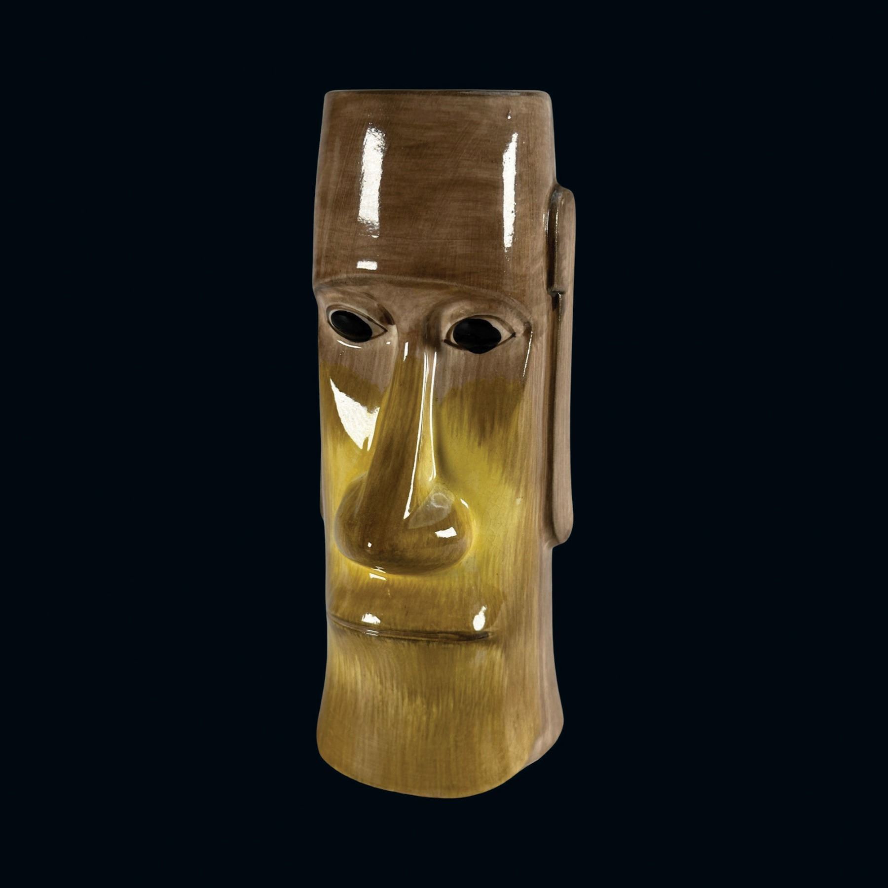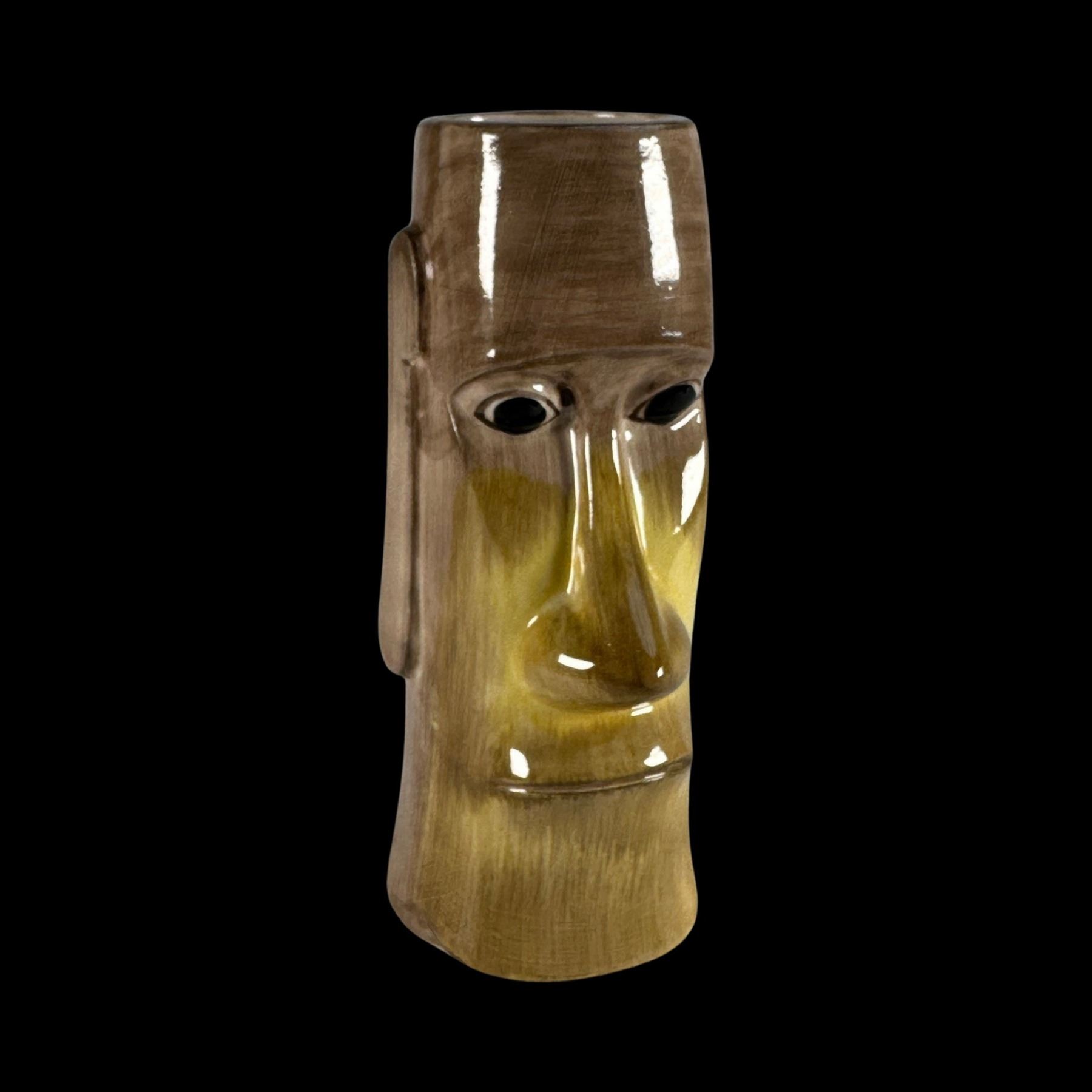 (1960s) A unique paint scheme in the glaze for this tall Moai Tiki mug by OMG. VG+ with typical wear. 3"dia x 7.5".