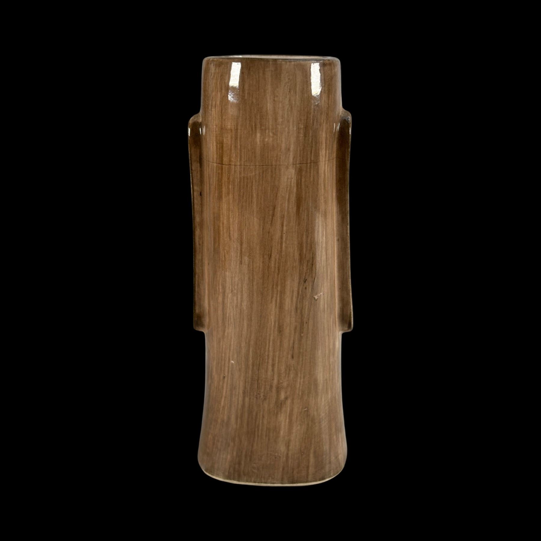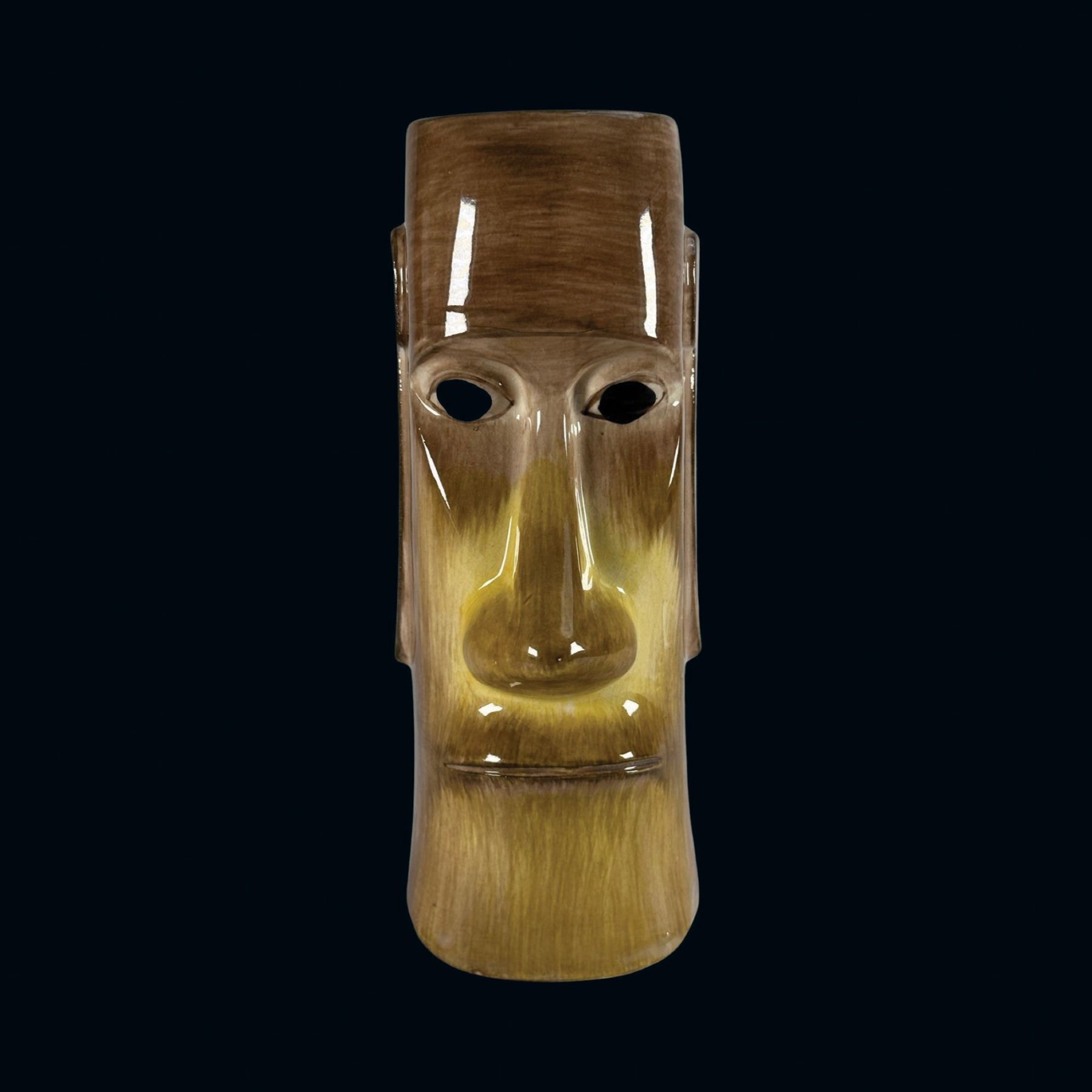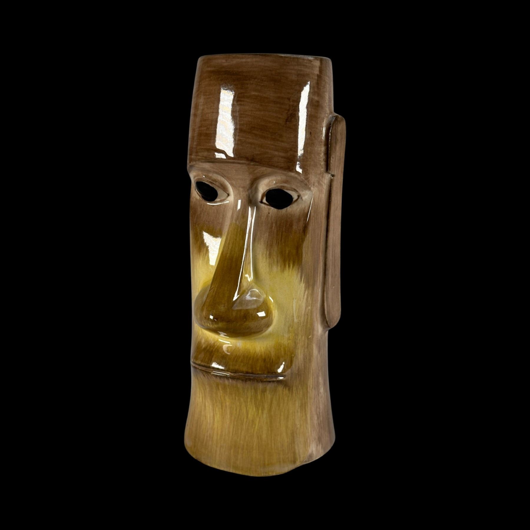 (1960s) A unique paint scheme in the glaze for this tall Moai Tiki mug by OMC. VG+ with typical wear. 3.75"dia x 7.5".