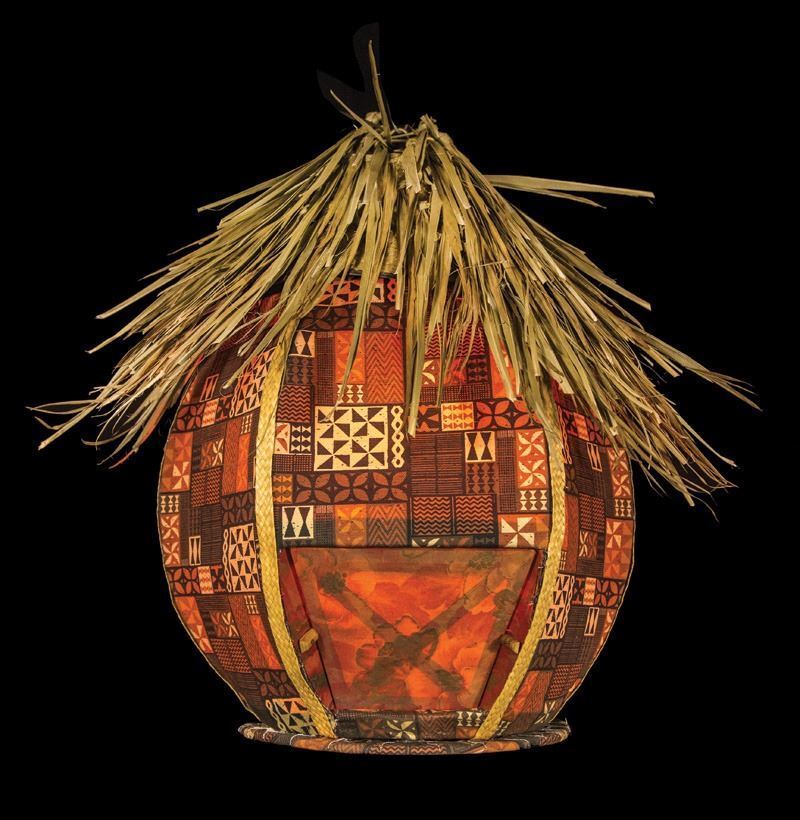 (1960s) A handsome wall sconce lamp was purchased back from the famous PAgo Pago in Tucson, Arizona. OA, Cargoes by Carter and Eli Hedley all provided decor to this restaurant and lounge. The tapa has been partially replaced and restored by LeRoy Schmaltz. The lamp contains no light hardware as it would be mounted over a wall fixture. It is flat on the back side or a semi circle rather than a fully circular lamp.25"x23"x12"VG+ with typical wear