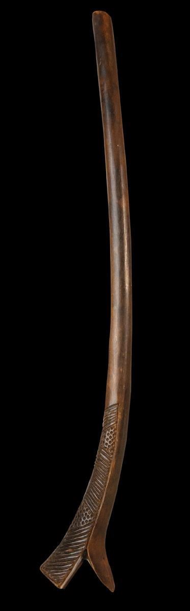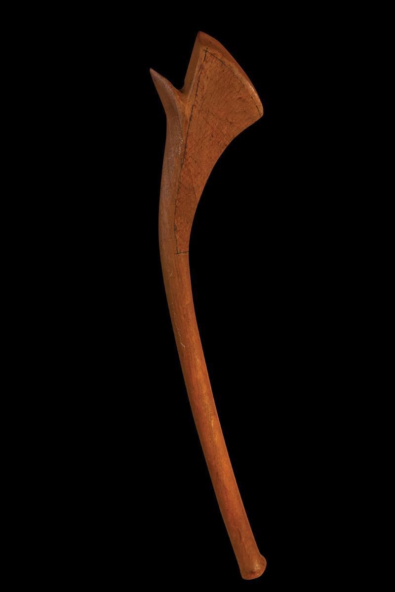 (1960s) A pair of OA war club carvings used for master patterns. The first, #307 does not have the cross-hatch design in the head of the club carved out as that detail would be added by hand due to its intricacy. There are sketched guide lines present.A: 39"x8.5", B: 40"x5.5"VG+ with typical wear