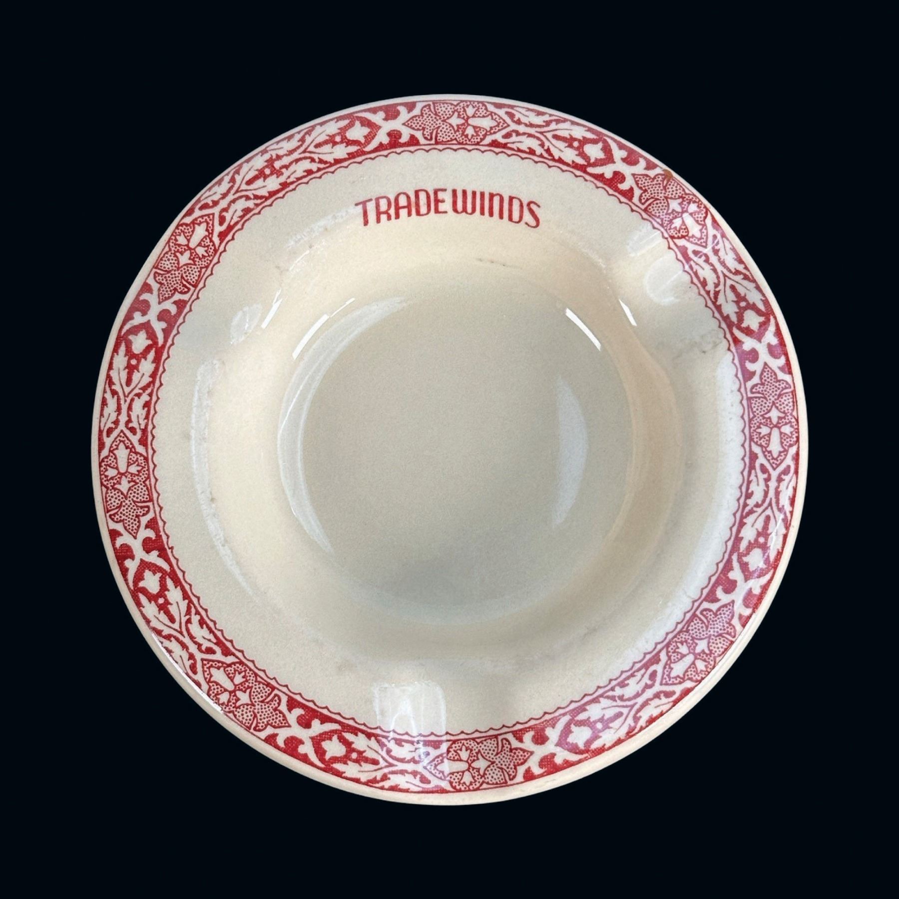 (1940s)* "Trade Winds" was a popular title from the pre-Tiki, Tropics-Era of Polynesian pop and was used for South Seas restaurants, motels and apartment buildings. VG+ with small chip on the back side under the rim. 4.5"dia x1".