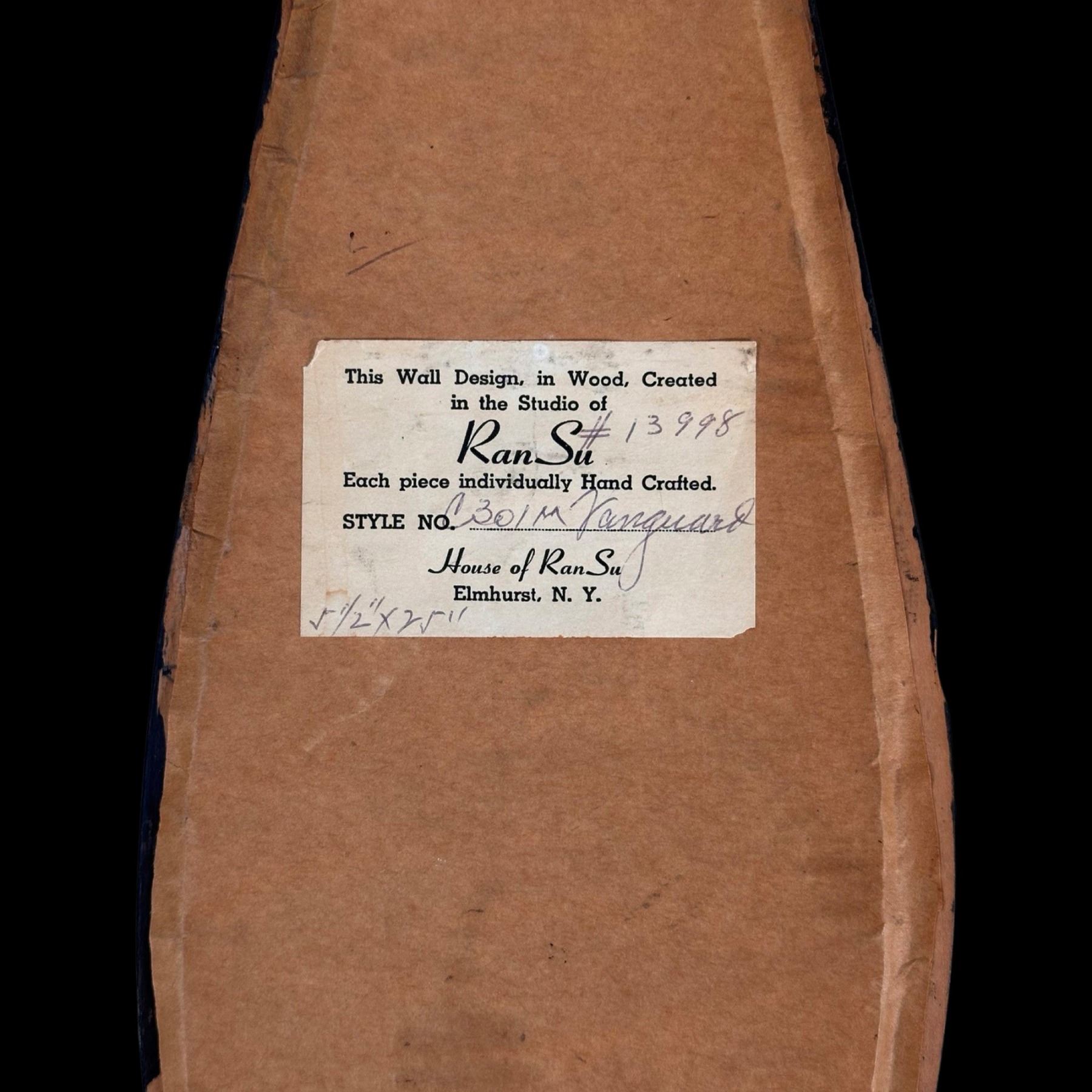 (1960s)* Ran-Su was one of several companies that offered modern primitive decor. Perfect accent to the TIKI MODERN-centric home bar! Paper label intact on verso. VG+. 5.5"x25".