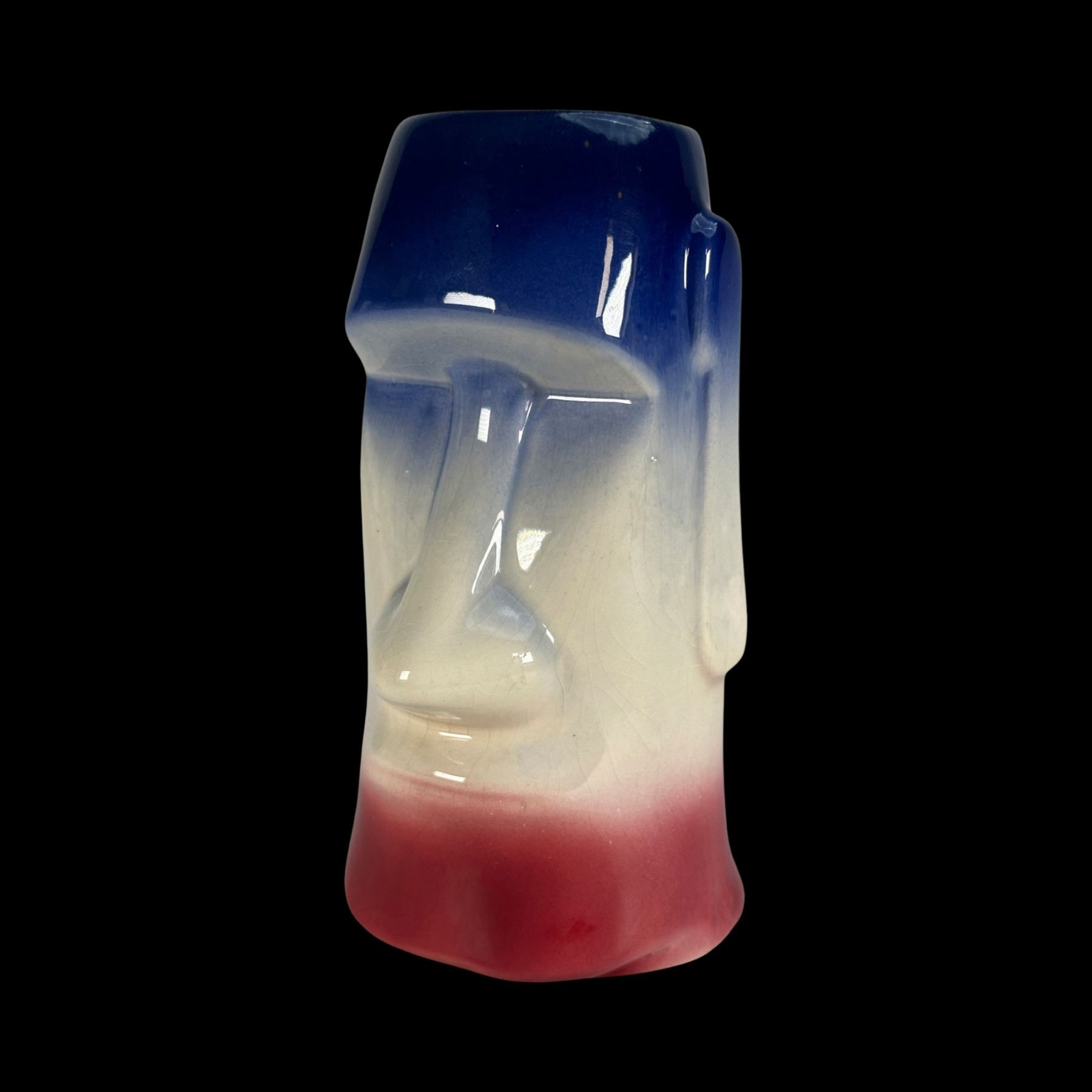 (1976)* A super fun and quite rare specialty mug created by Danny Balsz for this blow-out July 4th,1976 Bicentennial event at THE TIKIS Polynesian theme park in Monterey Park, California. Nothing more American than the Flag and Tiki! VG+ with a chip out of the bottom rim base of the mug. See online photos. 4"dia x 7".