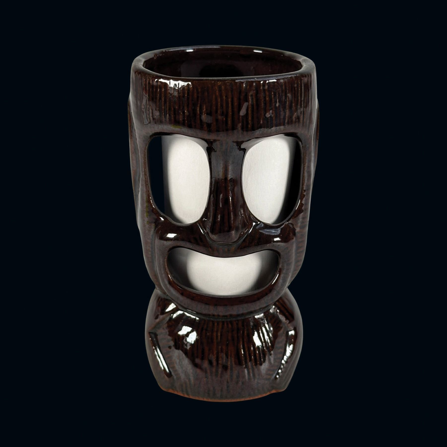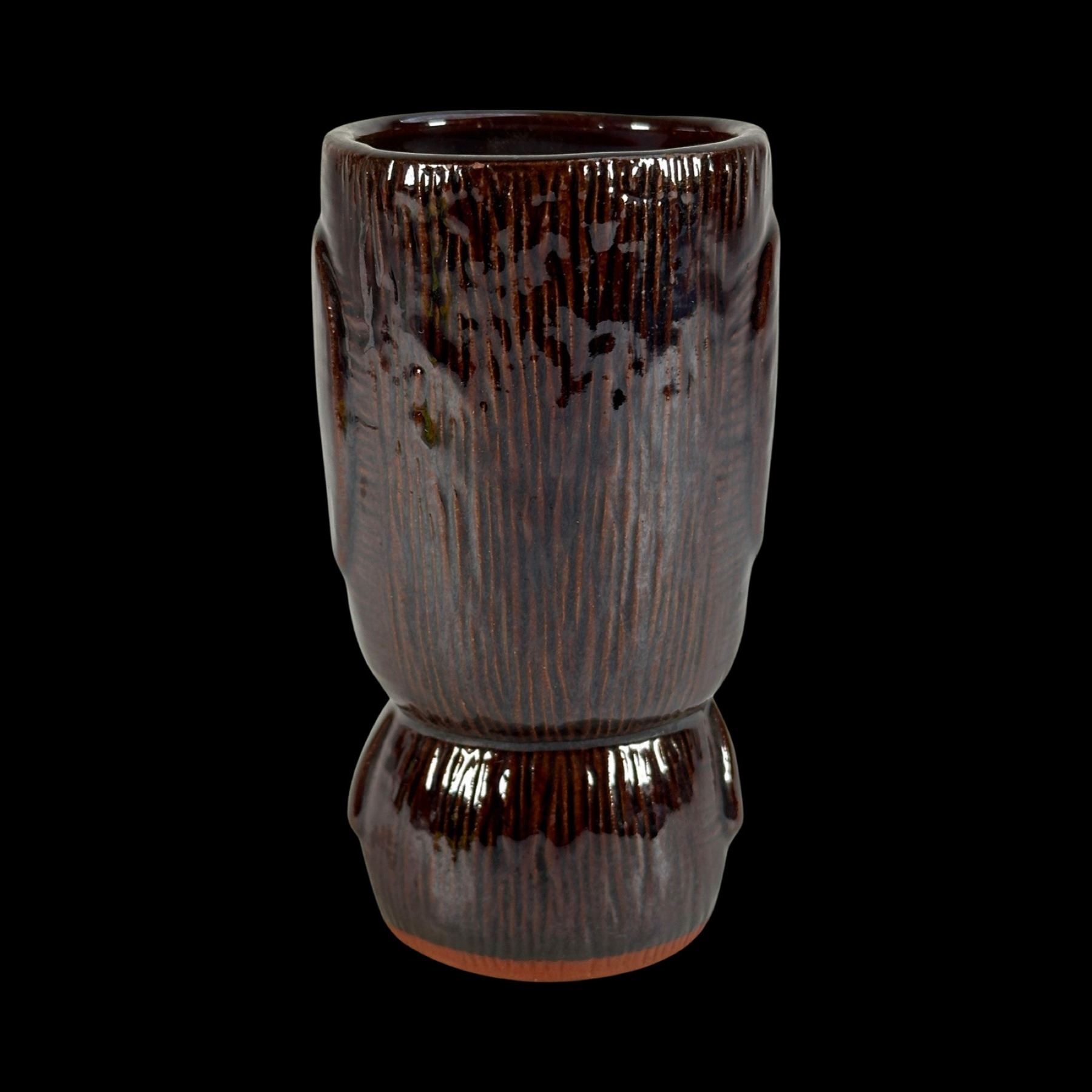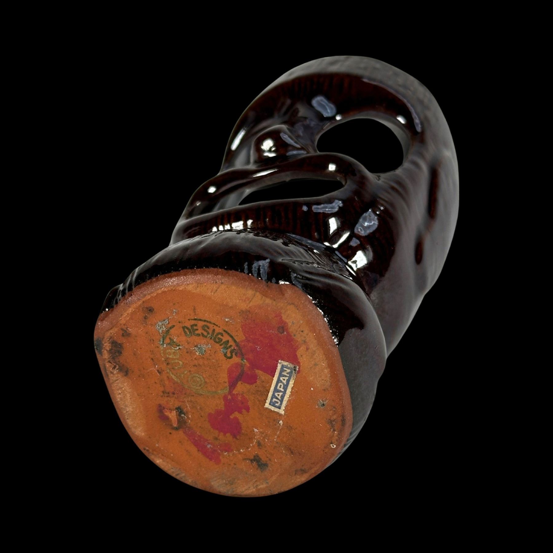 (1960s)* As far as we and Bob and LeRoy know, this design was not produced beyond prototype stage by Toby Tobeckson as a unique Tiki table candle lamp. The large eyes and mouth and the glowing reflection from within would have made an interesting design in commercial use. VG+. 2.75"dia x 5".