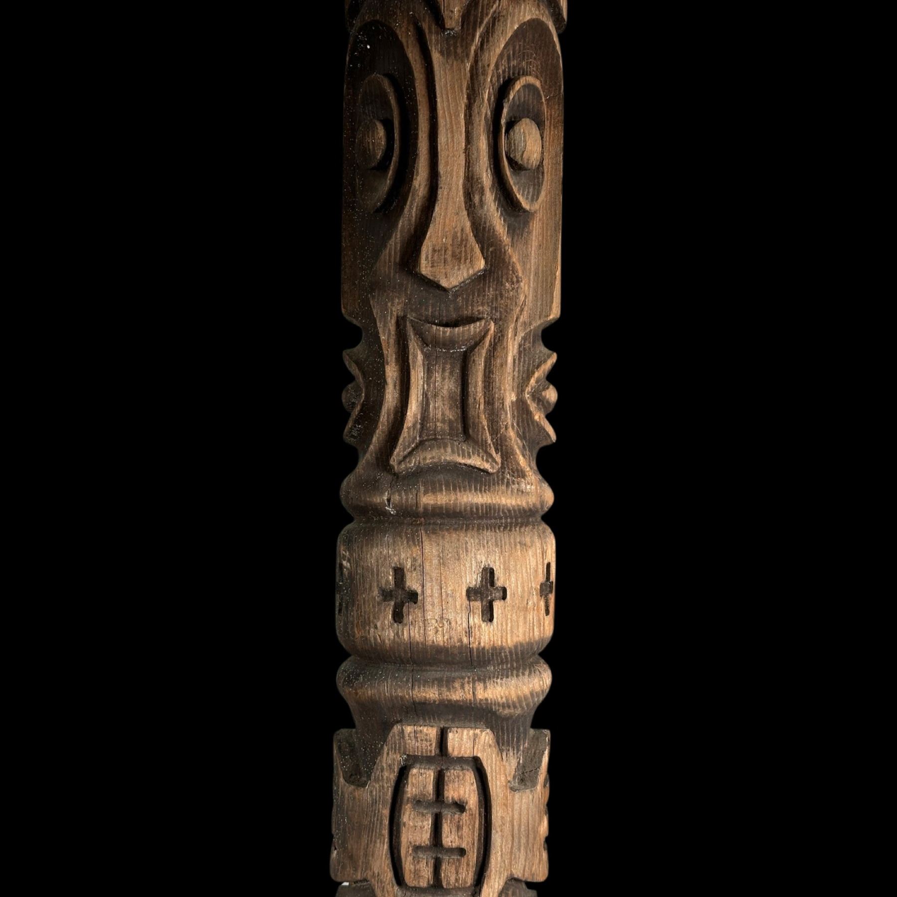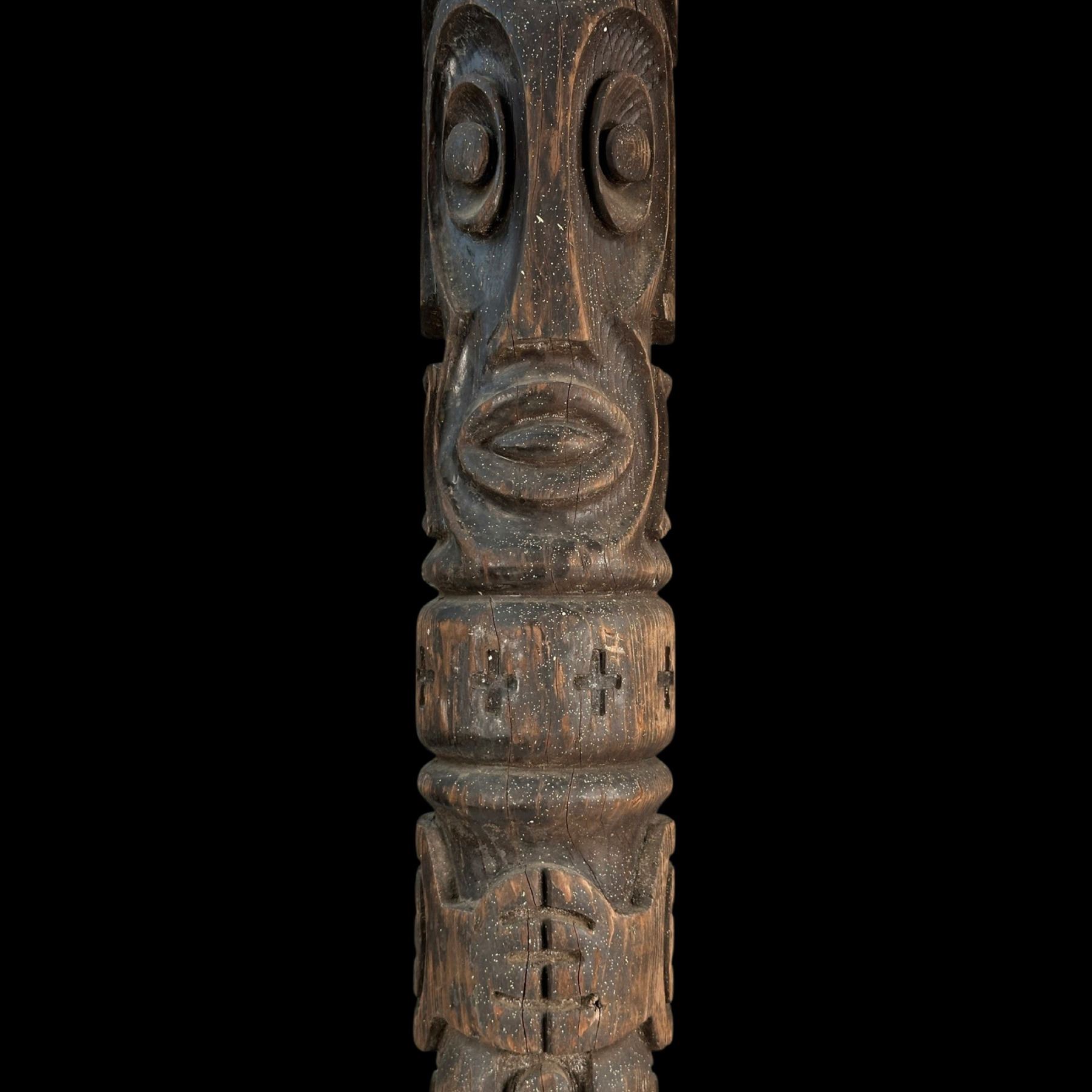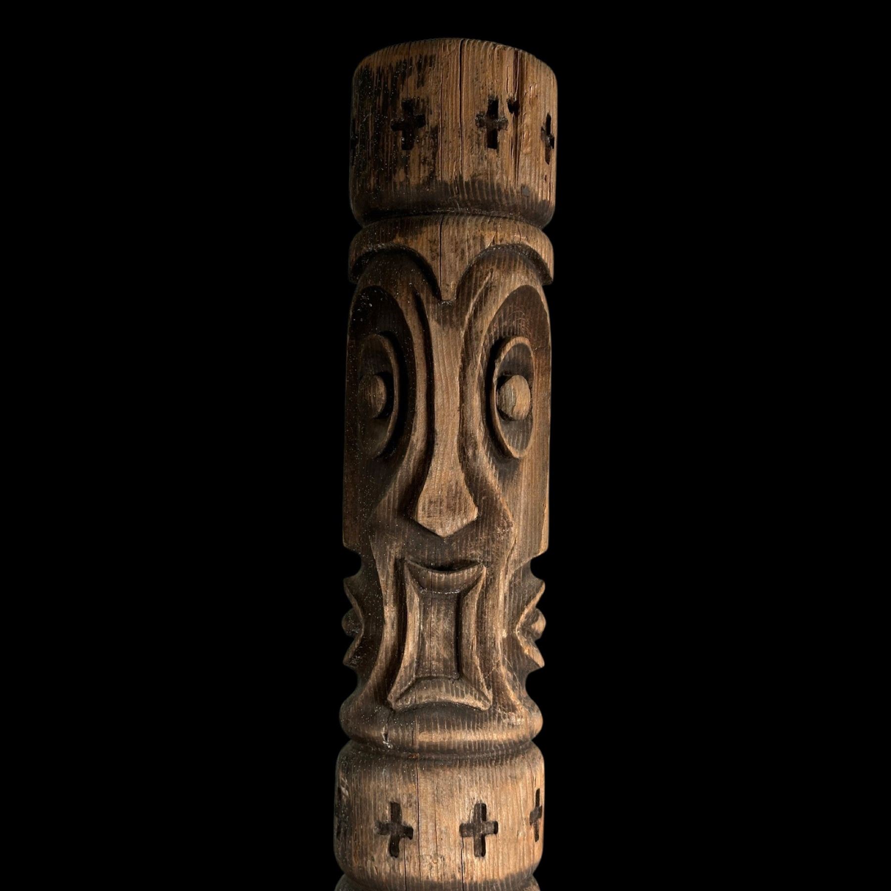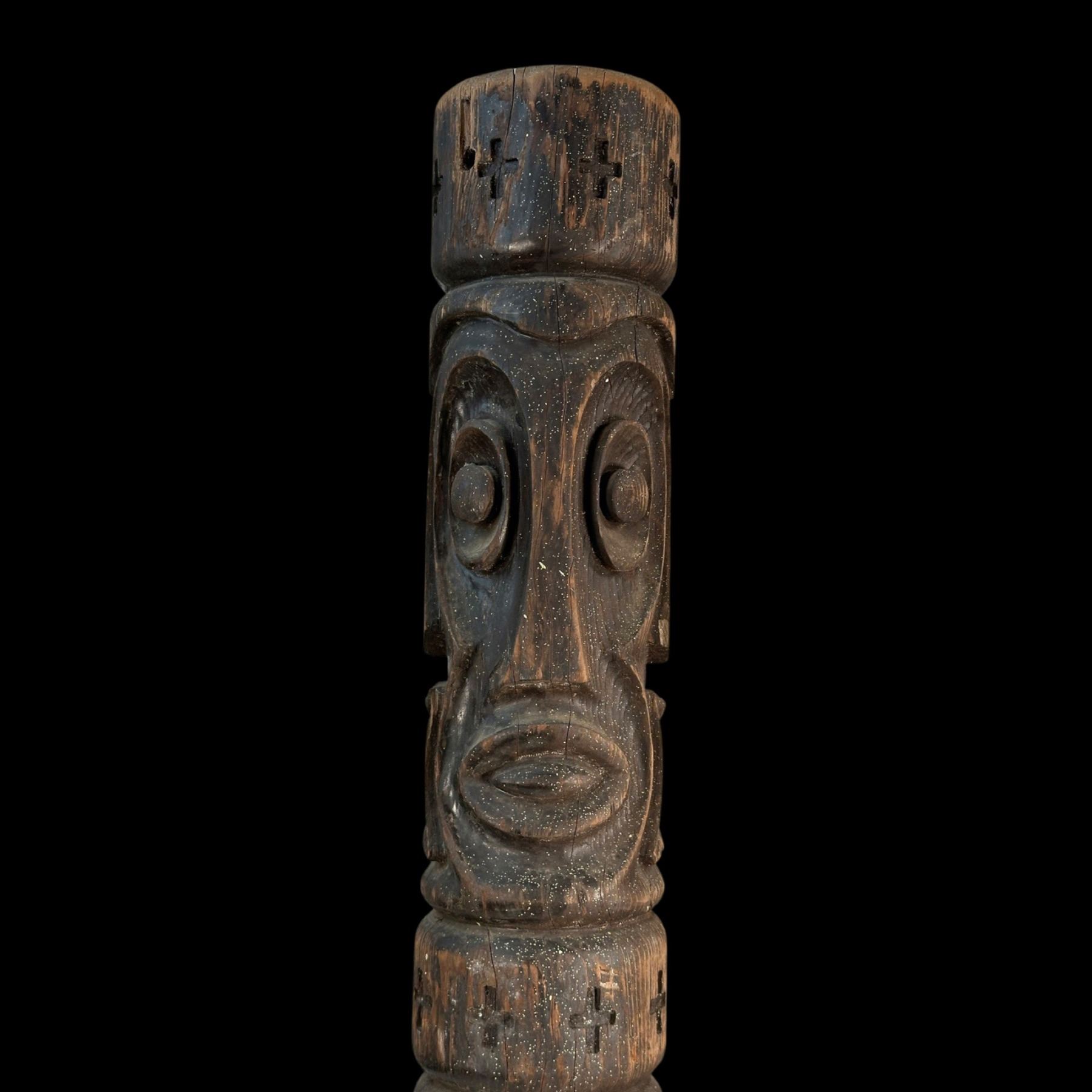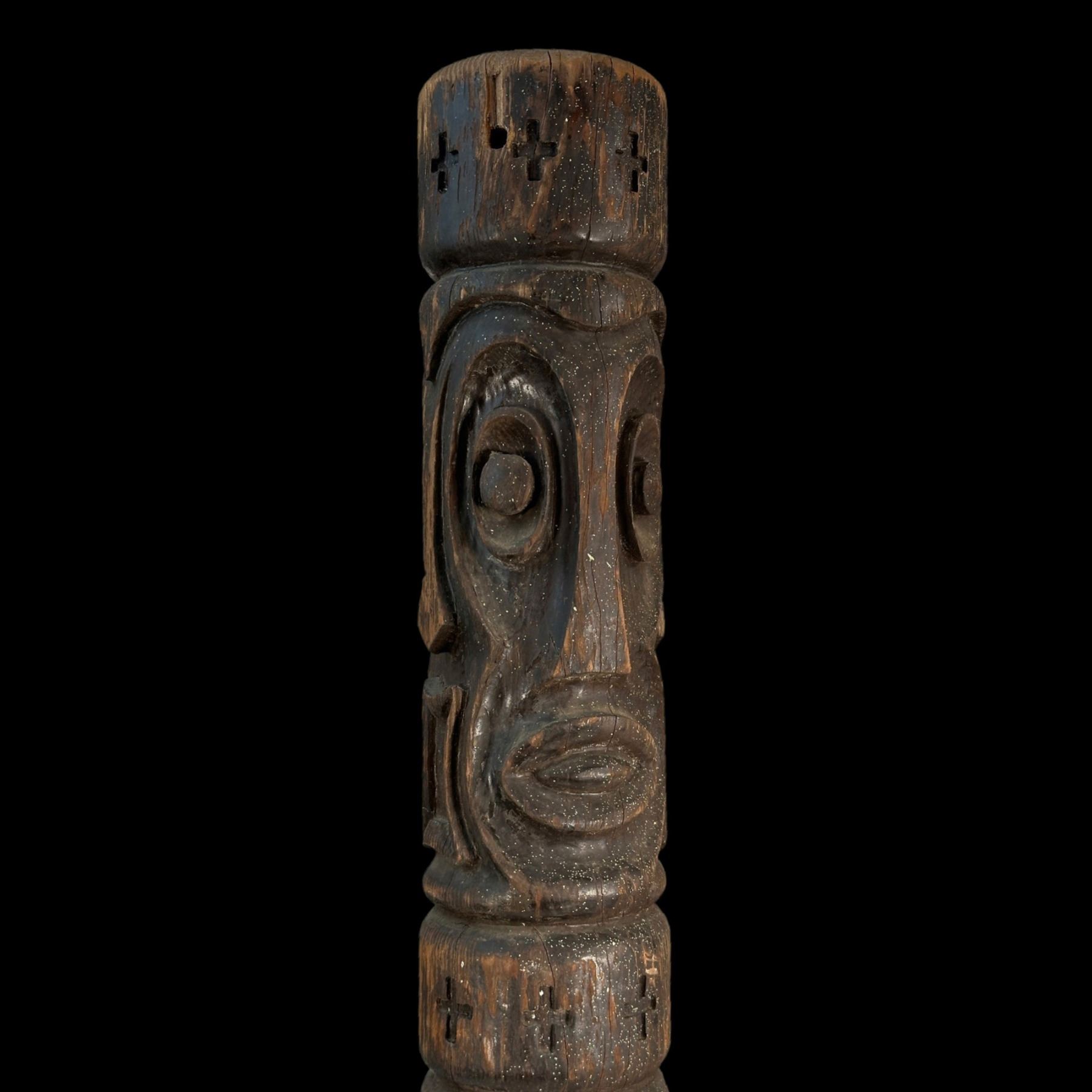 (1950s)* Collected by Sven Kirsten during the famous 1994 expedition to the ruins of The Tikis. Sven acquired these directly from Danny Balsz before the demolition of the Lake Elsinore TIKIS II park. These most probably came from salvaged material from THE LUAU in Beverly Hills, acquired after its demolition in 1978. OA carried these for a period in the 1980s. Published in TIKI MODERN pp.108. VG+ with some wear making a fine patina. 6"dia x 38.5".