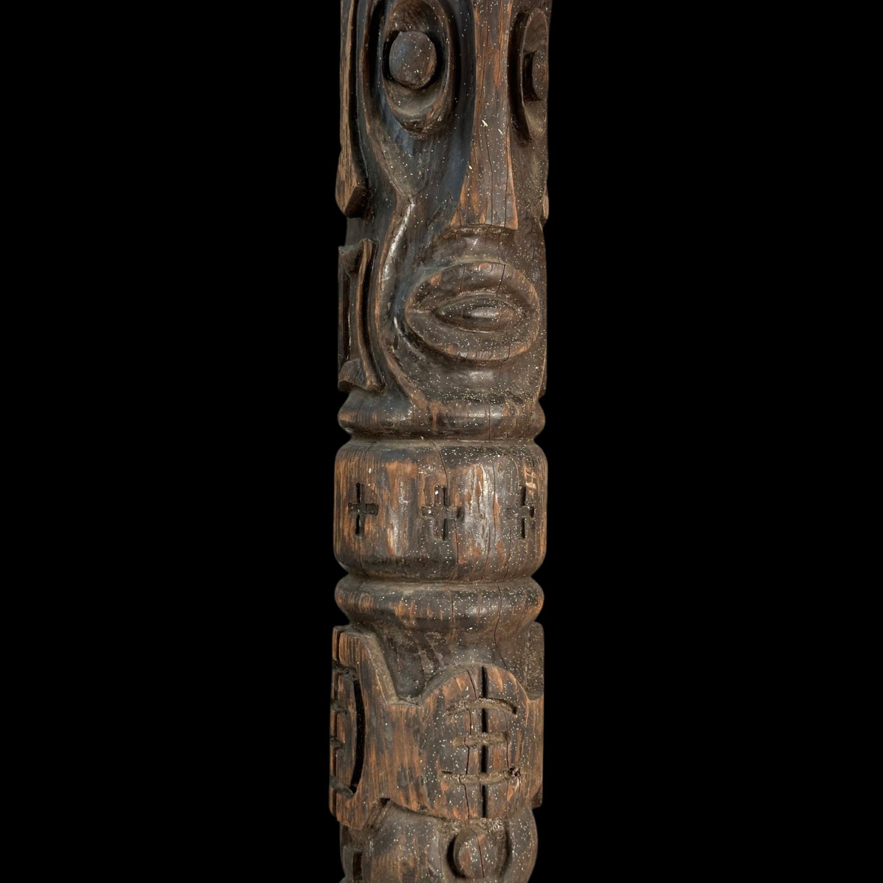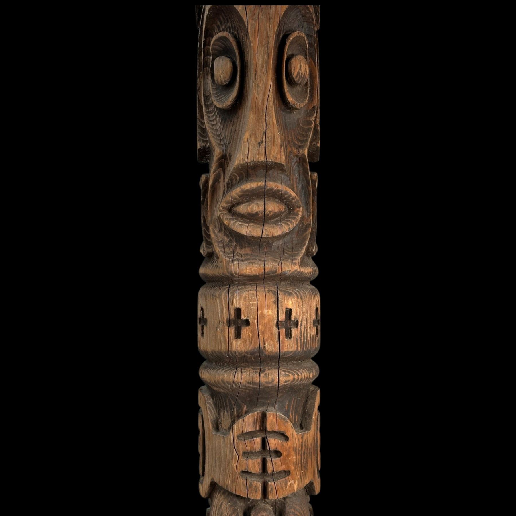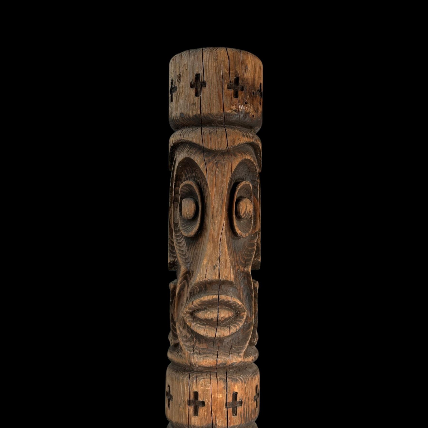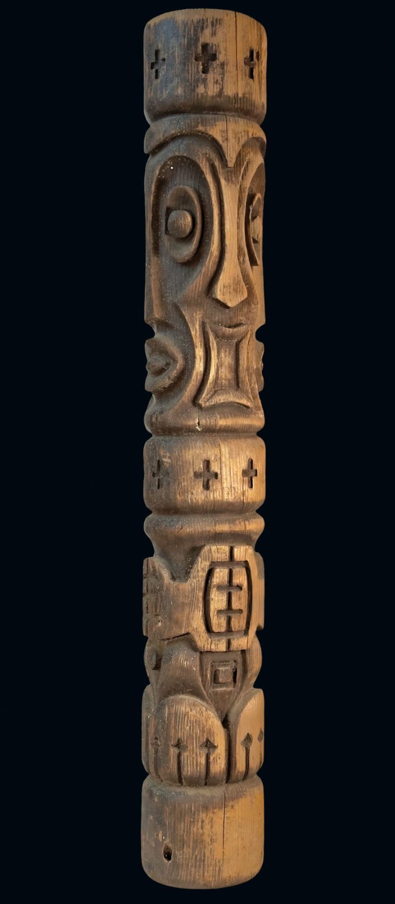 (1950s)* Collected by Sven Kirsten during the famous 1994 expedition to the ruins of The Tikis. Sven acquired these directly from Danny Balsz before the demolition of the Lake Elsinore TIKIS II park. These most probably came from salvaged material from THE LUAU in Beverly Hills, acquired after its demolition in 1978. OA carried these for a period in the 1980s. Published in TIKI MODERN pp.108. VG+ with some wear making a fine patina. 6"dia x 38.5".