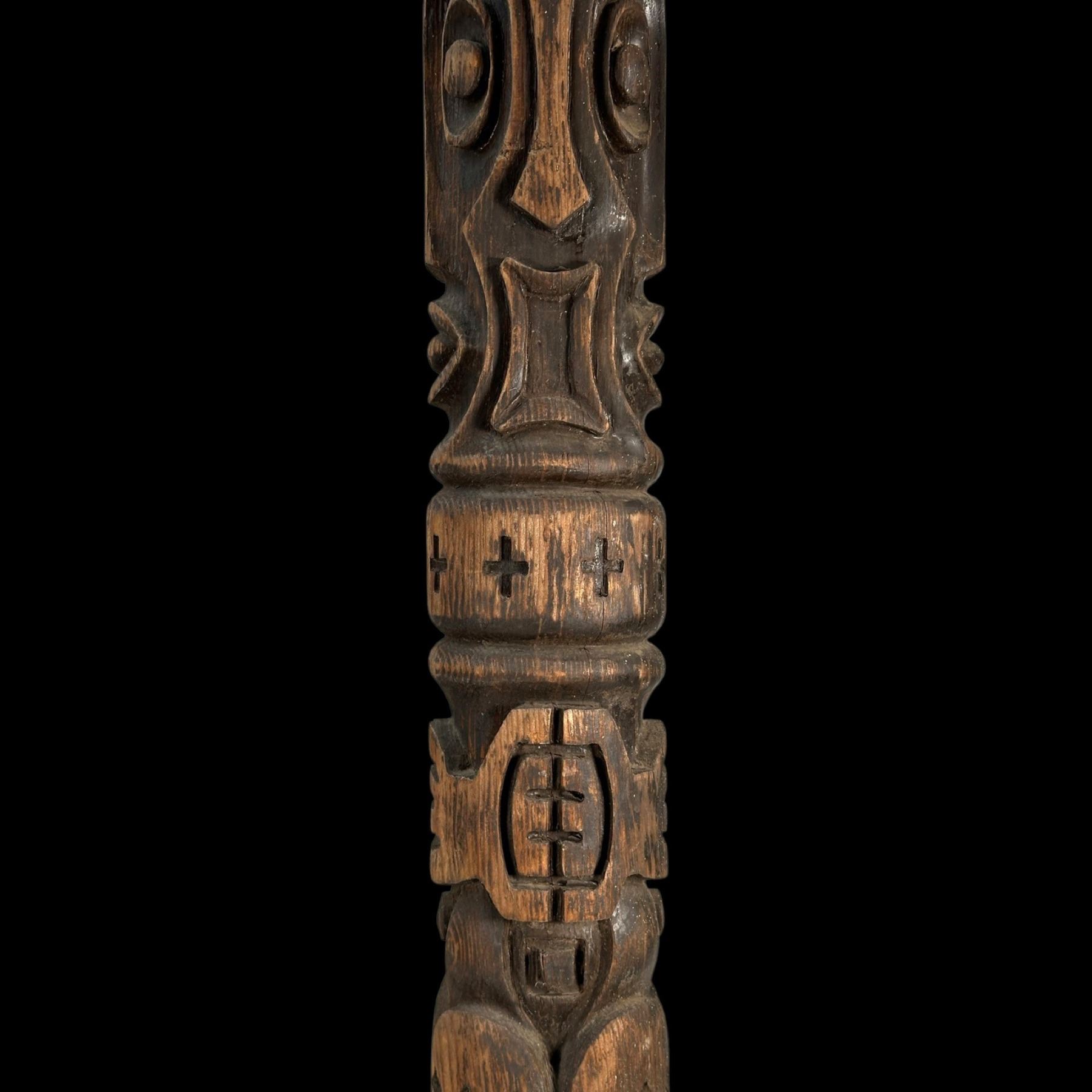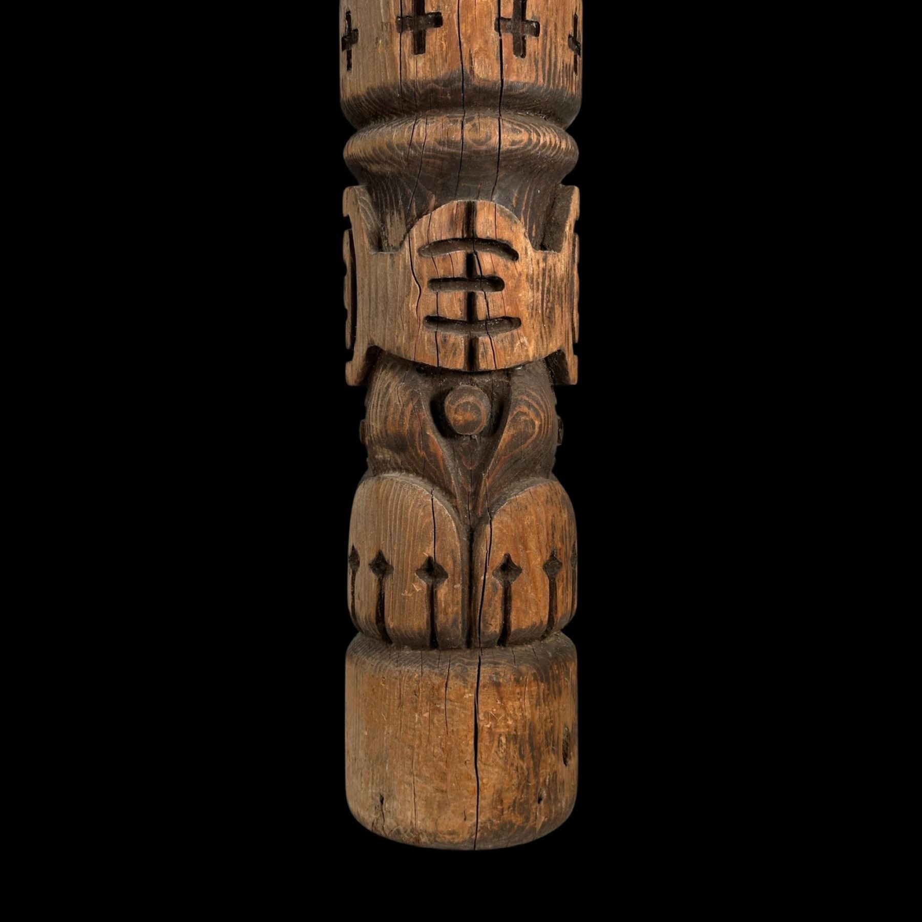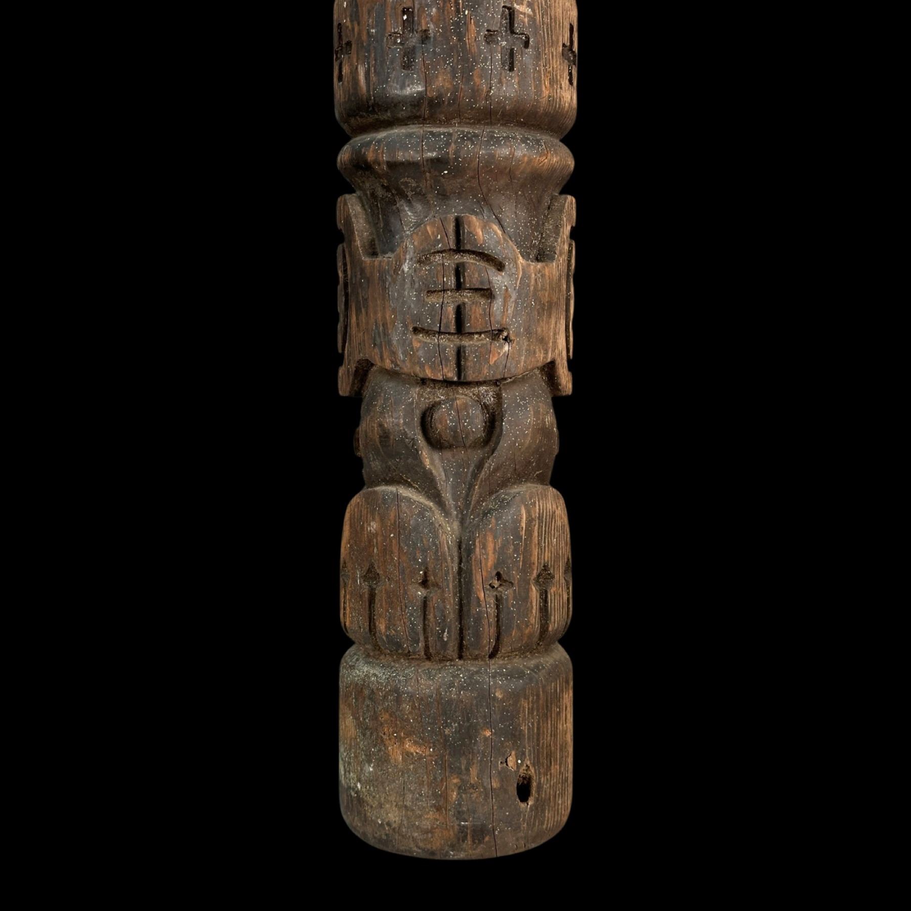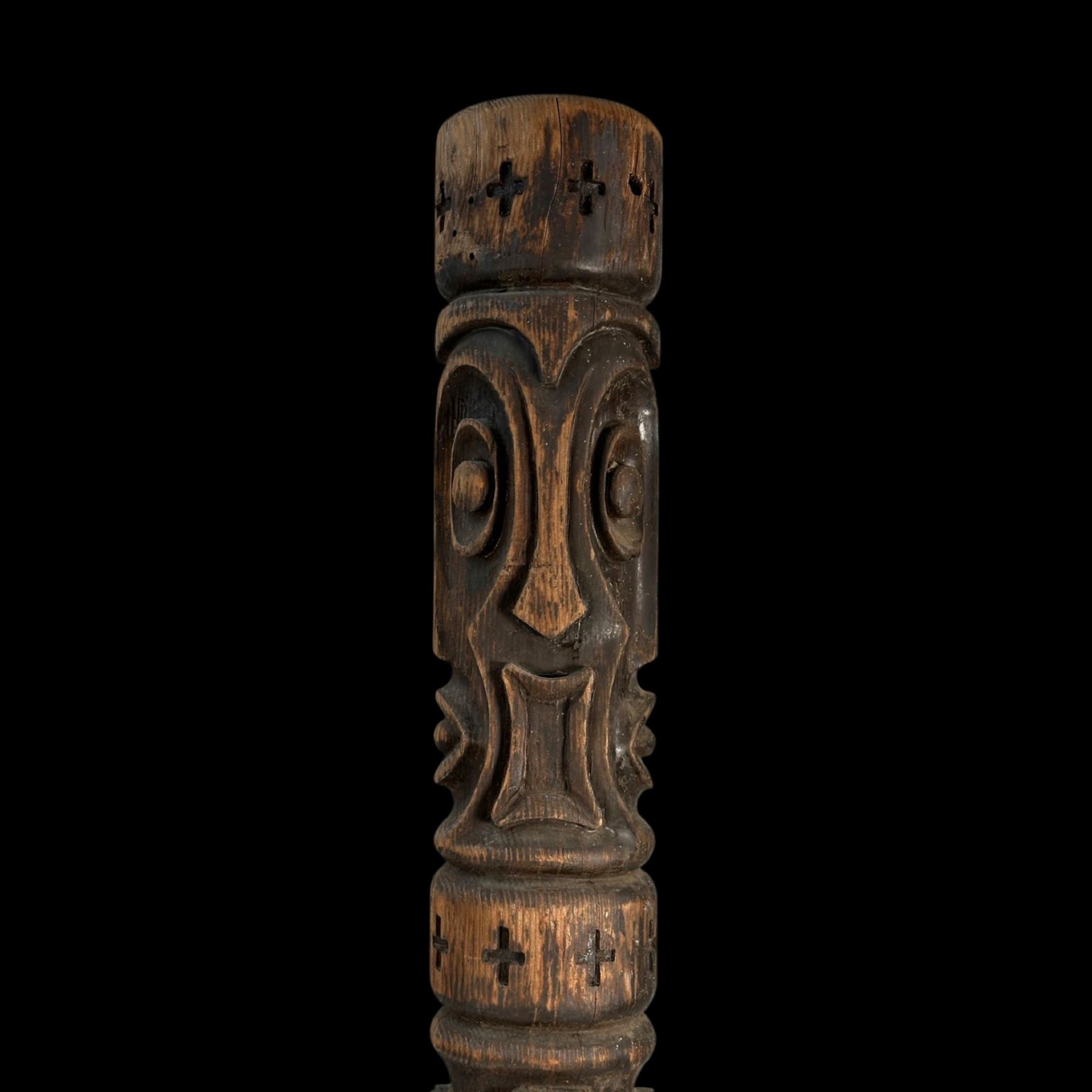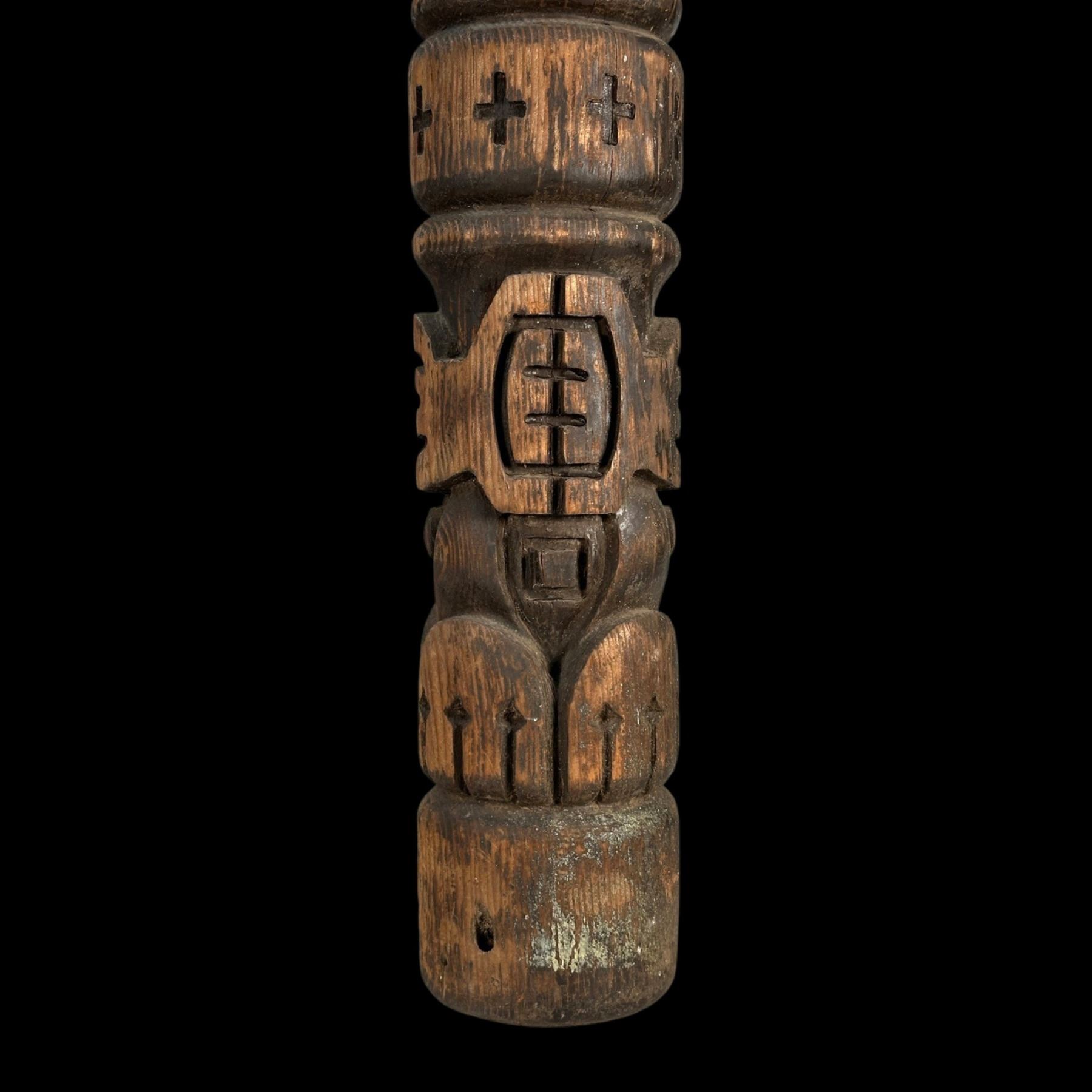 (1950s)* Collected by Sven Kirsten during the famous 1994 expedition to the ruins of The Tikis. Sven acquired these directly from Danny Balsz before the demolition of the Lake Elsinore TIKIS II park. These most probably came from salvaged material from THE LUAU in Beverly Hills, acquired after its demolition in 1978. OA carried these for a period in the 1980s. Published in TIKI MODERN pp.108. VG+ with some wear making a fine patina. 6"dia x 38.5".