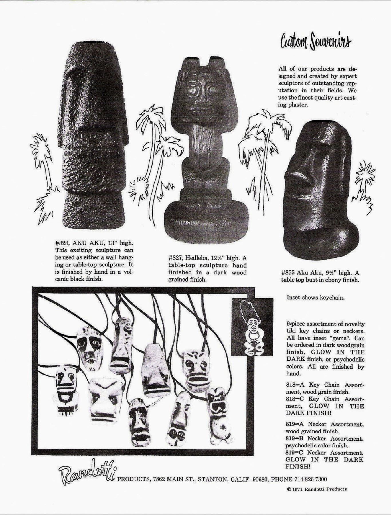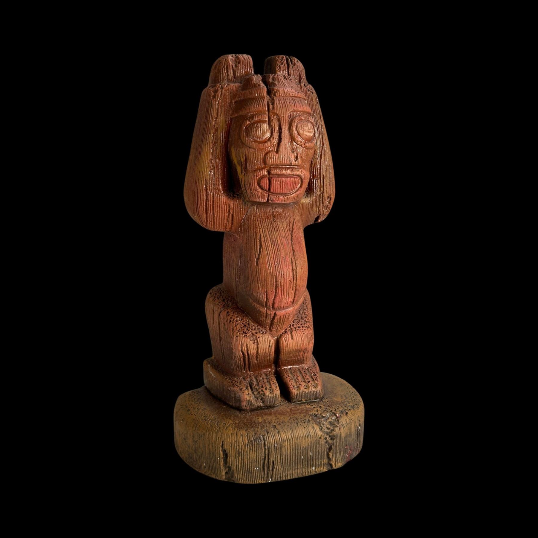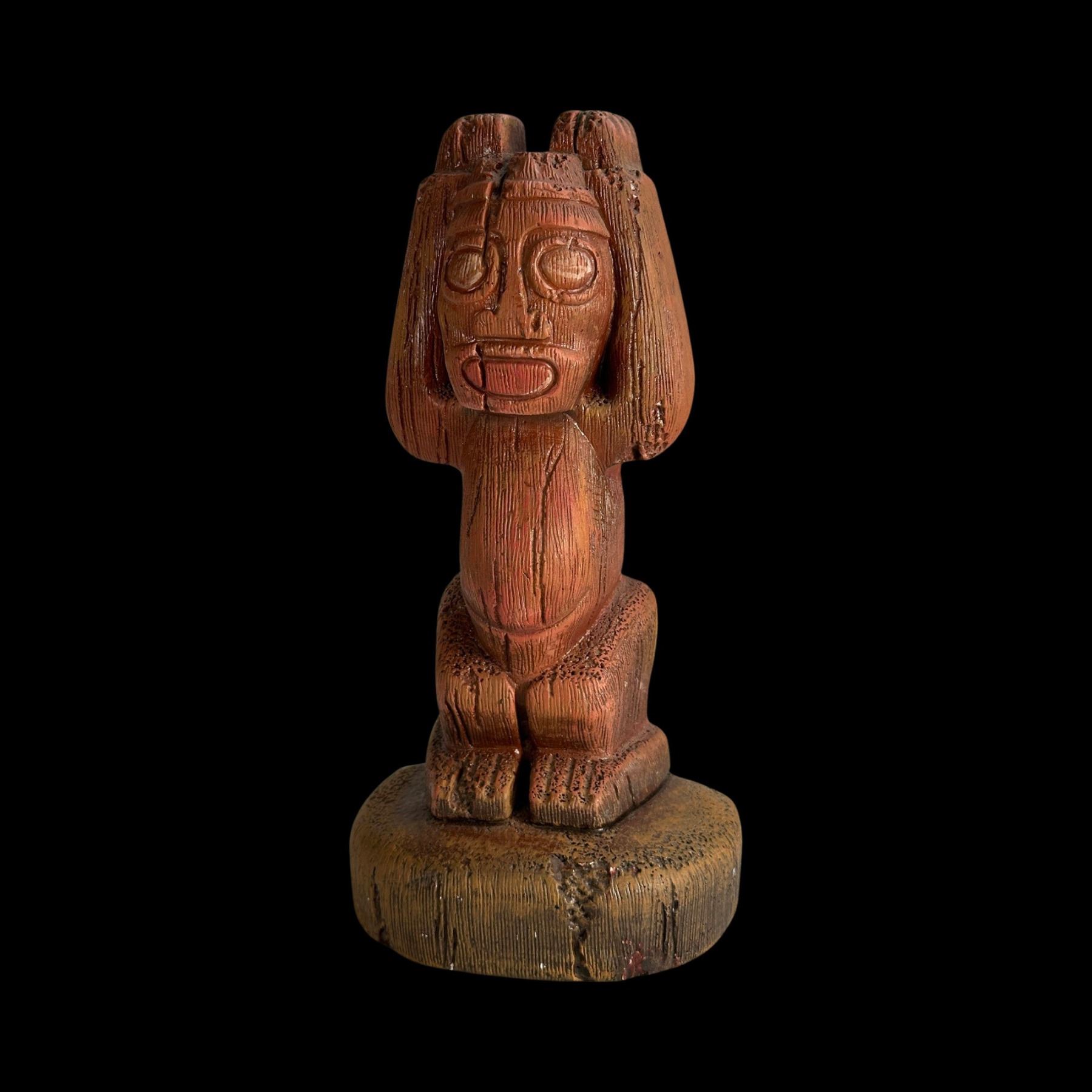 (1960s)* One of several Tiki designs from the Randotti catalog sold at theme parks like Disneyland and Seaworld. Ba Hedley was friends with the Randottis and they sold these at "Tiki's Tropical Imports". Exhibited in the Catalina Museum show. VG+ with minor wear. 6.5"x12.75"x4".