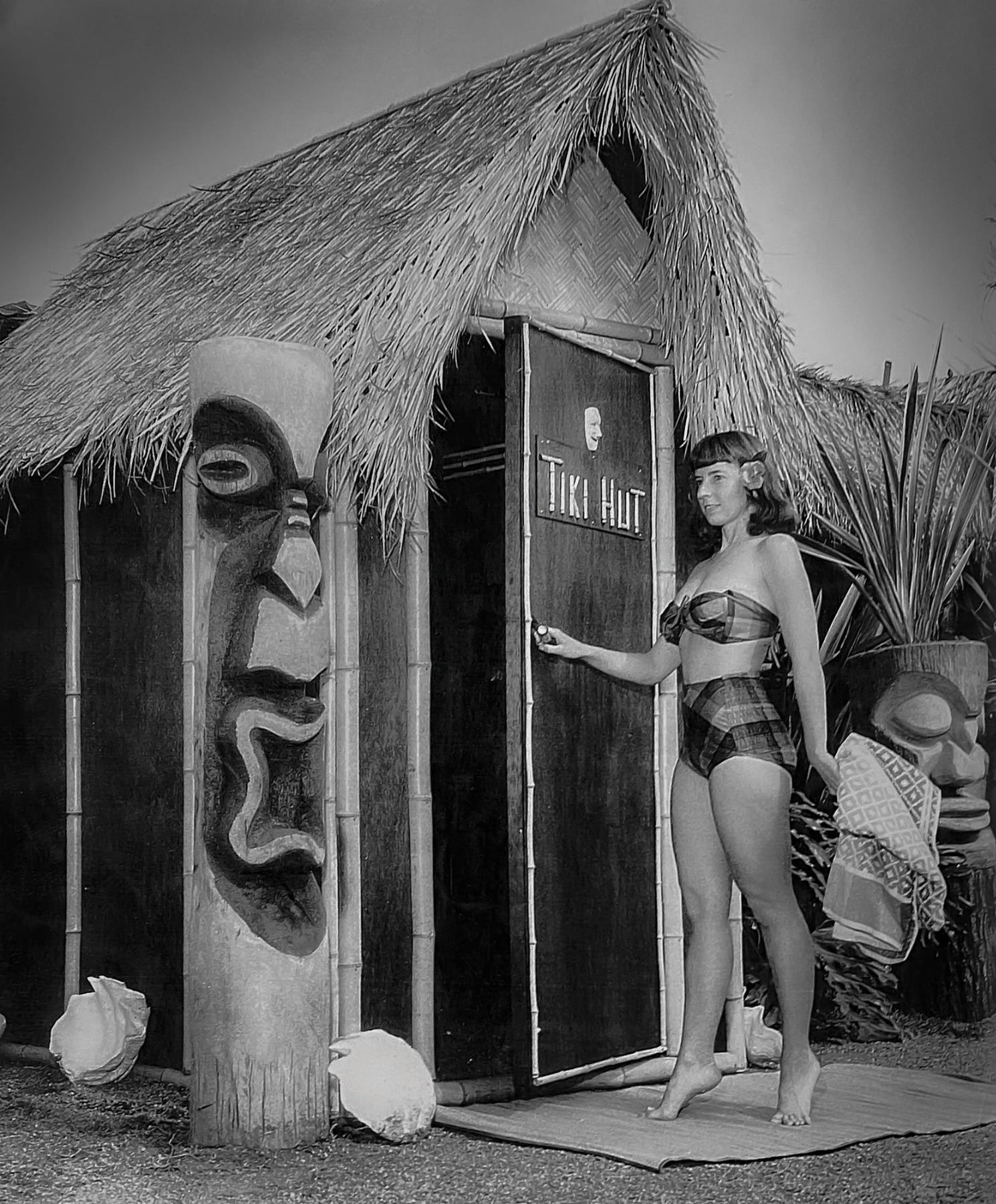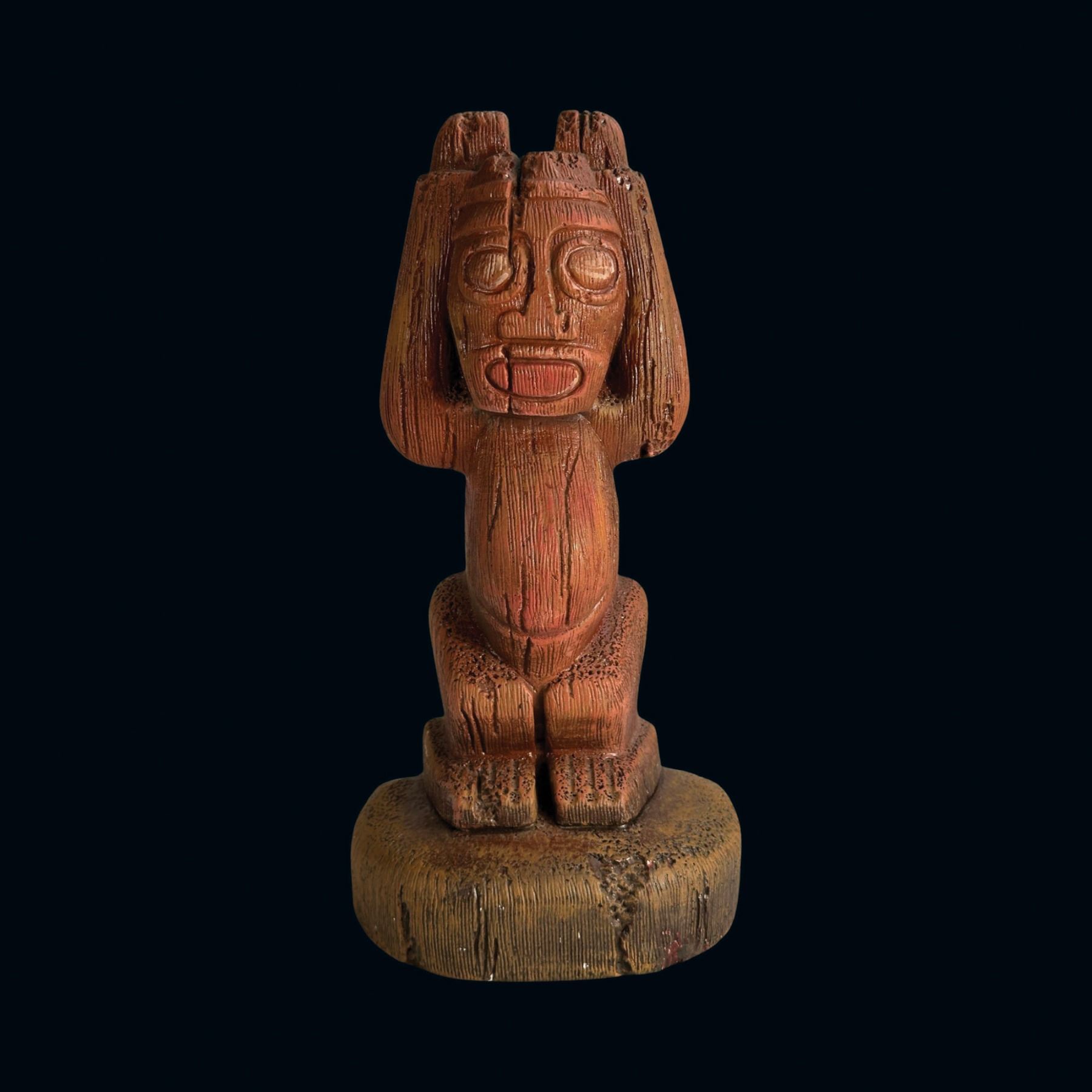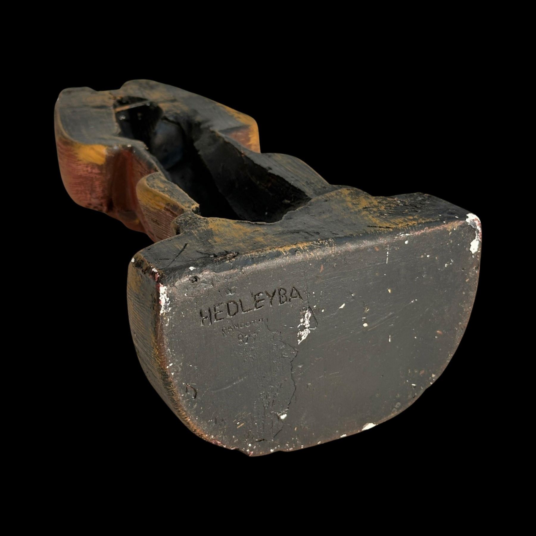 (1960s)* One of several Tiki designs from the Randotti catalog sold at theme parks like Disneyland and Seaworld. Ba Hedley was friends with the Randottis and they sold these at "Tiki's Tropical Imports". Exhibited in the Catalina Museum show. VG+ with minor wear. 6.5"x12.75"x4".