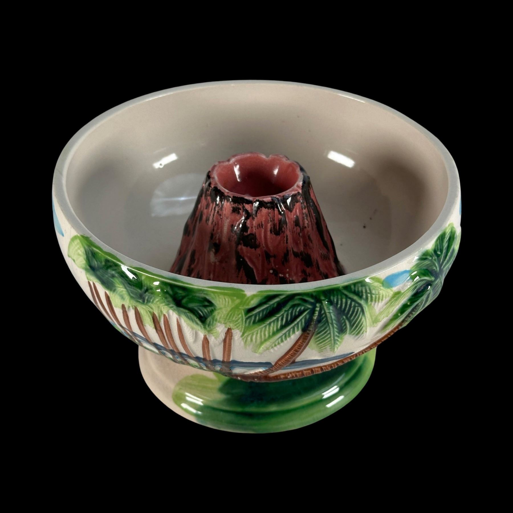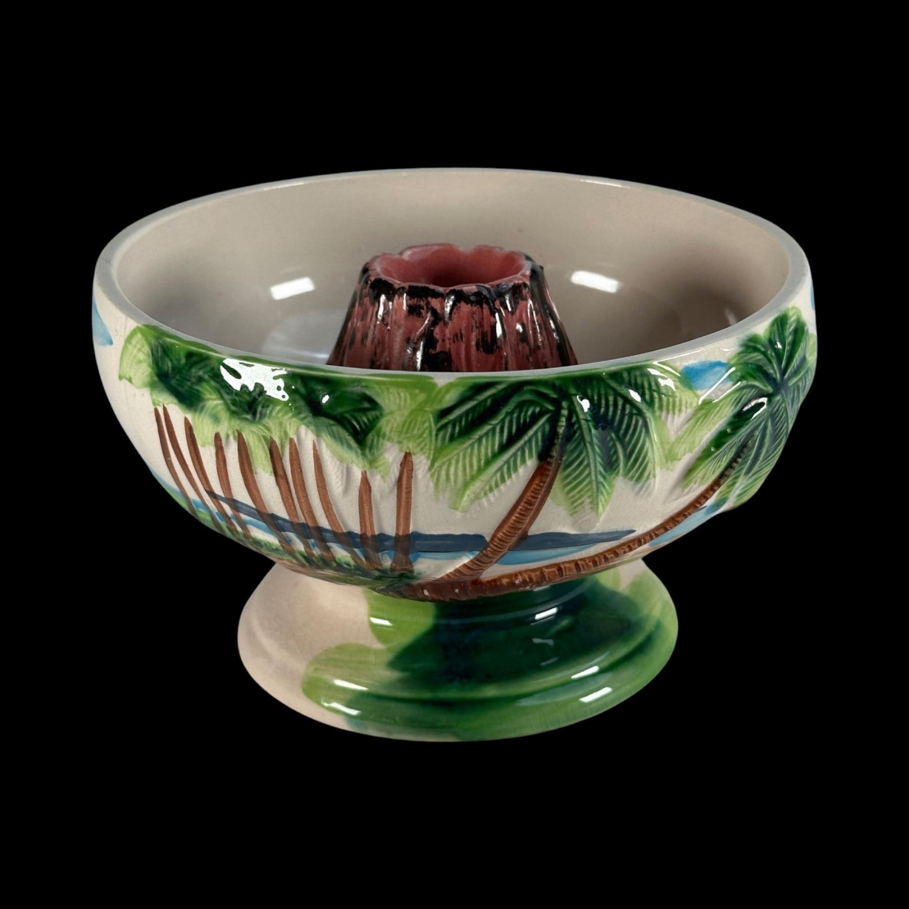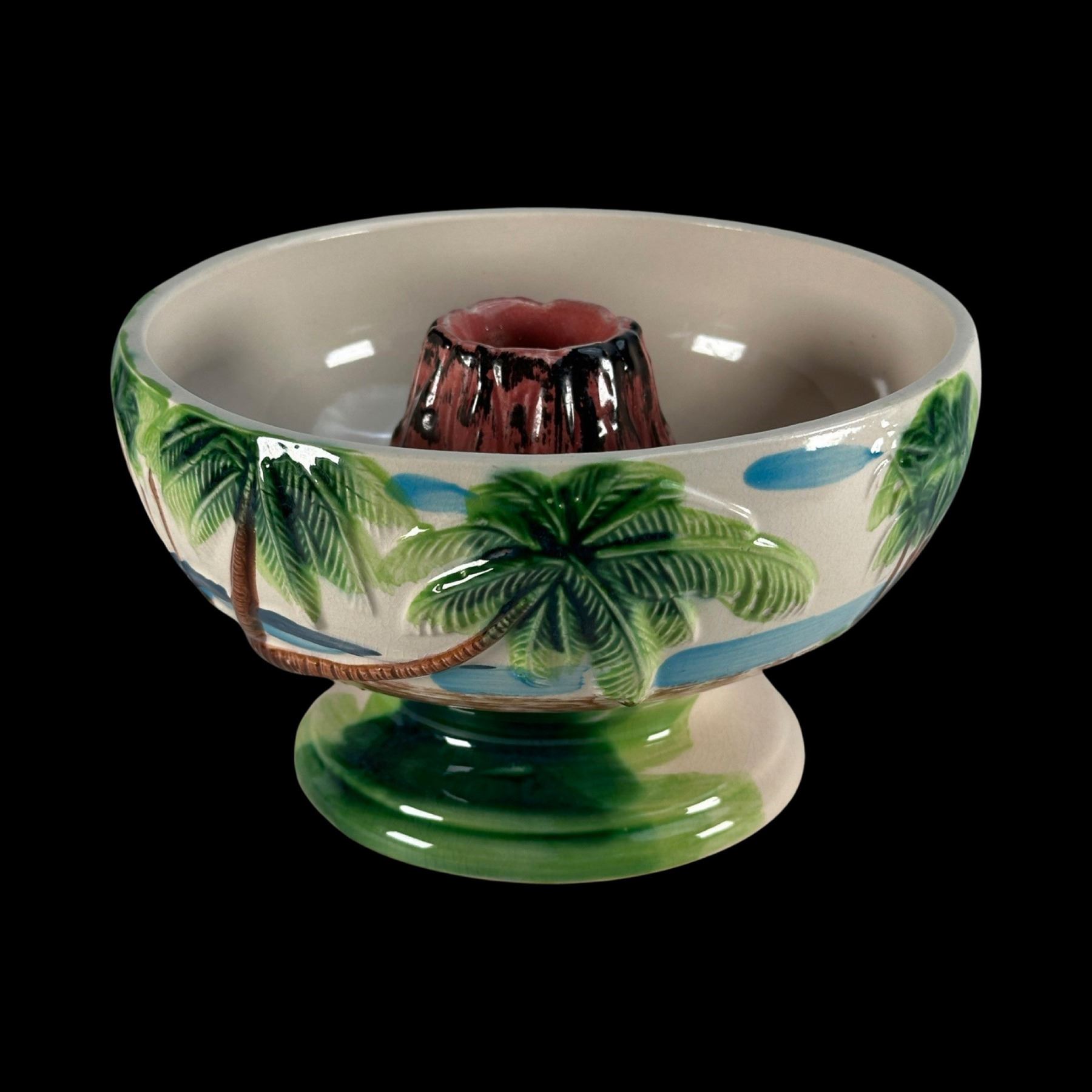 (1960s) This is the more scarce "volcano" version of this bowl from Otagiri. The Volcano would hold fuel for a dramatic presentation fire upon serving. VG+ with typical wear. 8"dia x 4.75".