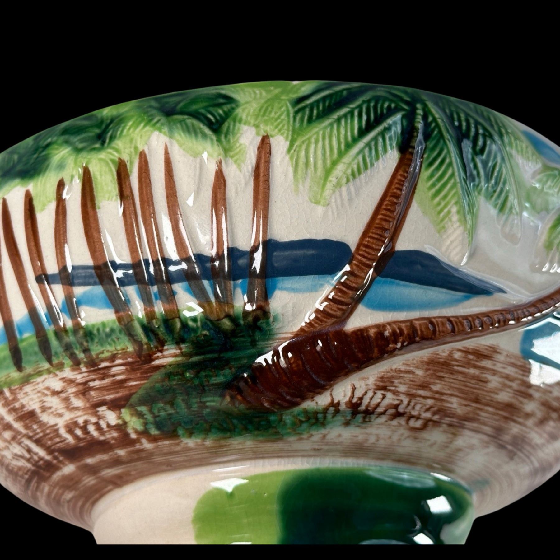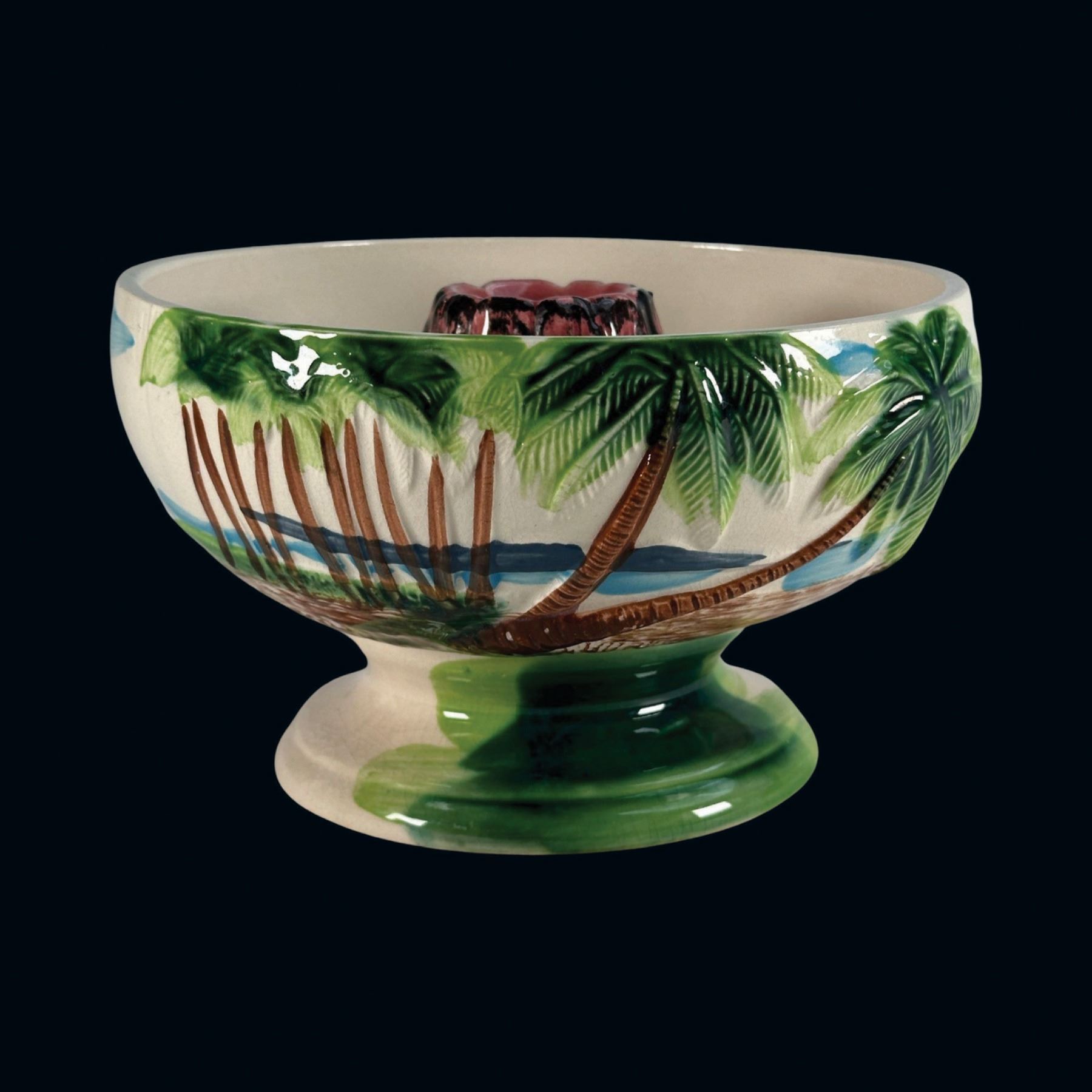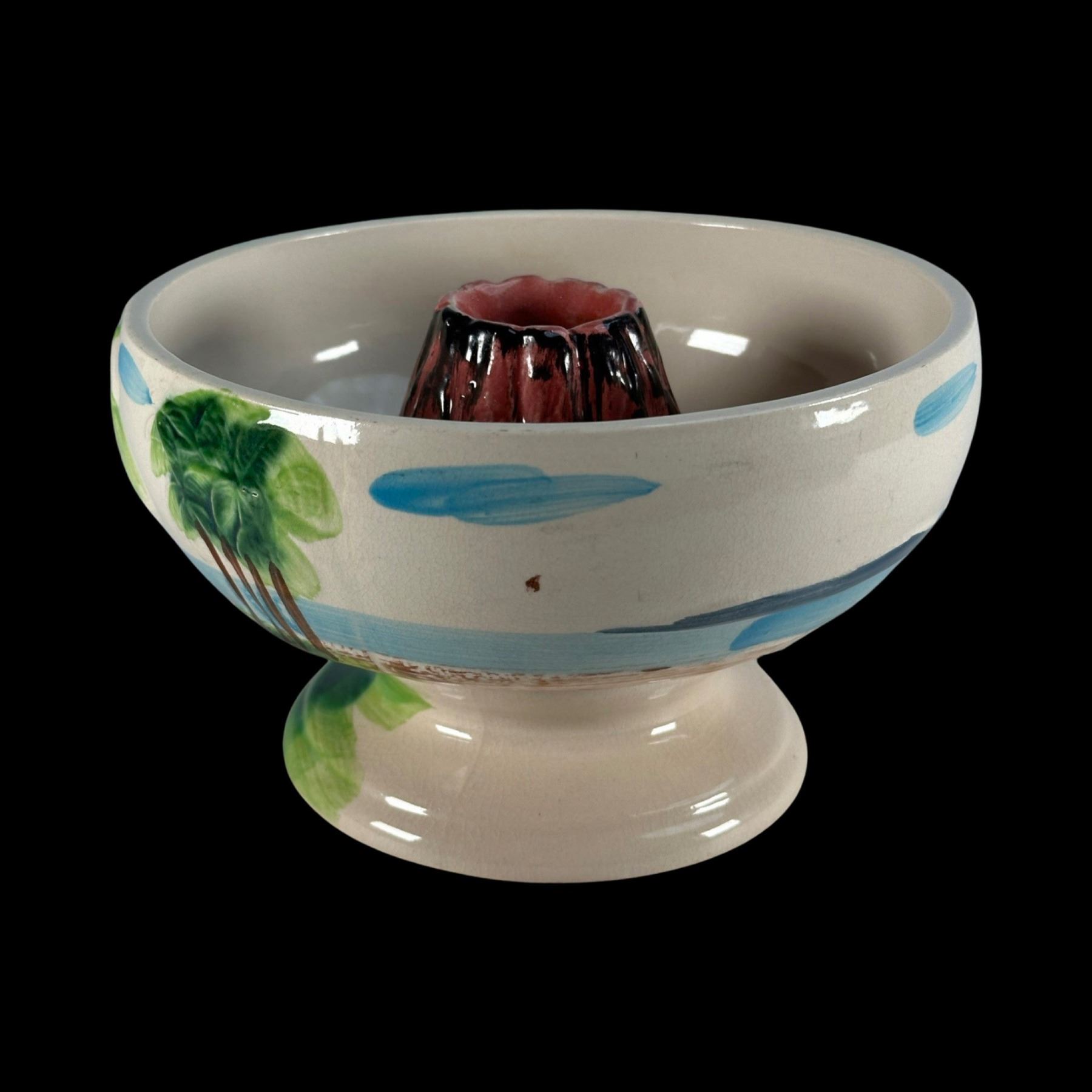 (1960s) This is the more scarce "volcano" version of this bowl from Otagiri. The Volcano would hold fuel for a dramatic presentation fire upon serving. VG+ with typical wear. 8"dia x 4.75".
