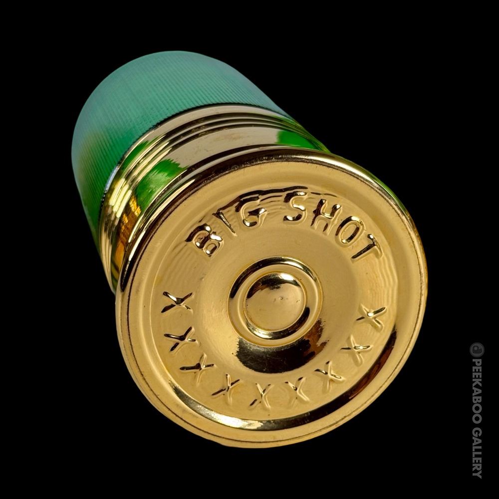 (1950s) The "BIG SHOT" glass which was the tallest of the various novelty "SHOT" glassware by Trader Vic's which mimicked plastic shotgun shells. These are becoming very hard to come by. VG+. 5.5"x3".