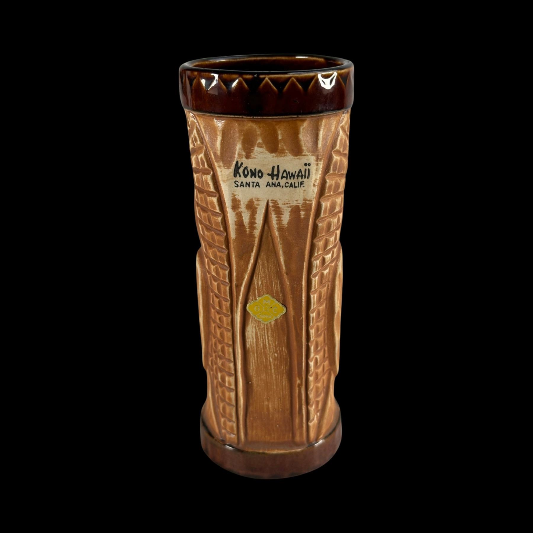(1960s) Kono Hawaii was located in Santa Ana, CA, not far from Disneyland. Nice OMC KU mug. VG+ with typical wear. 2.75"dia x 7".
