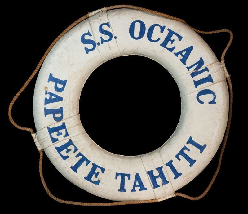(1970s) An OA themed paint job of an original nautical life ring.28" diameter.VG+ with typical wear from use.