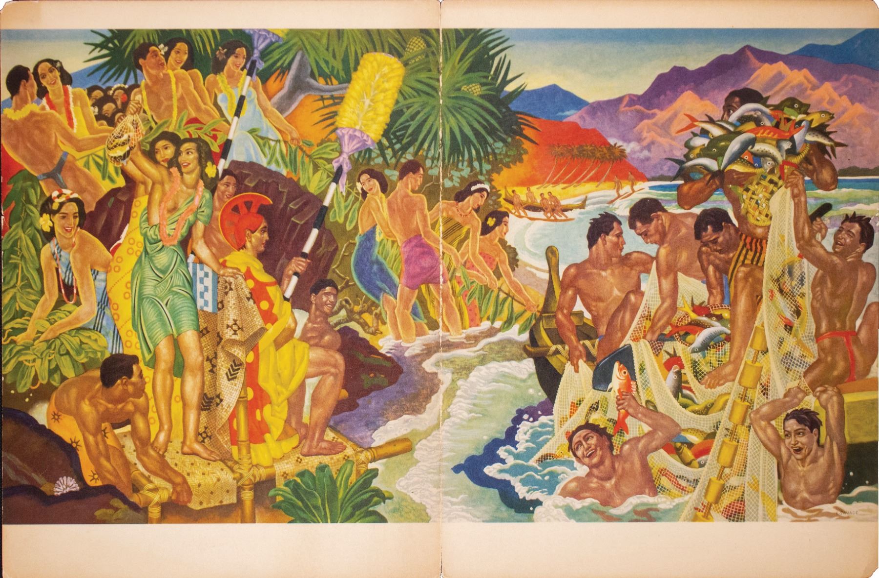 (1950s) 13.5"x10.5" CLOSED, 13.5"X21" OPEN. VG with some wear and corner chipping.