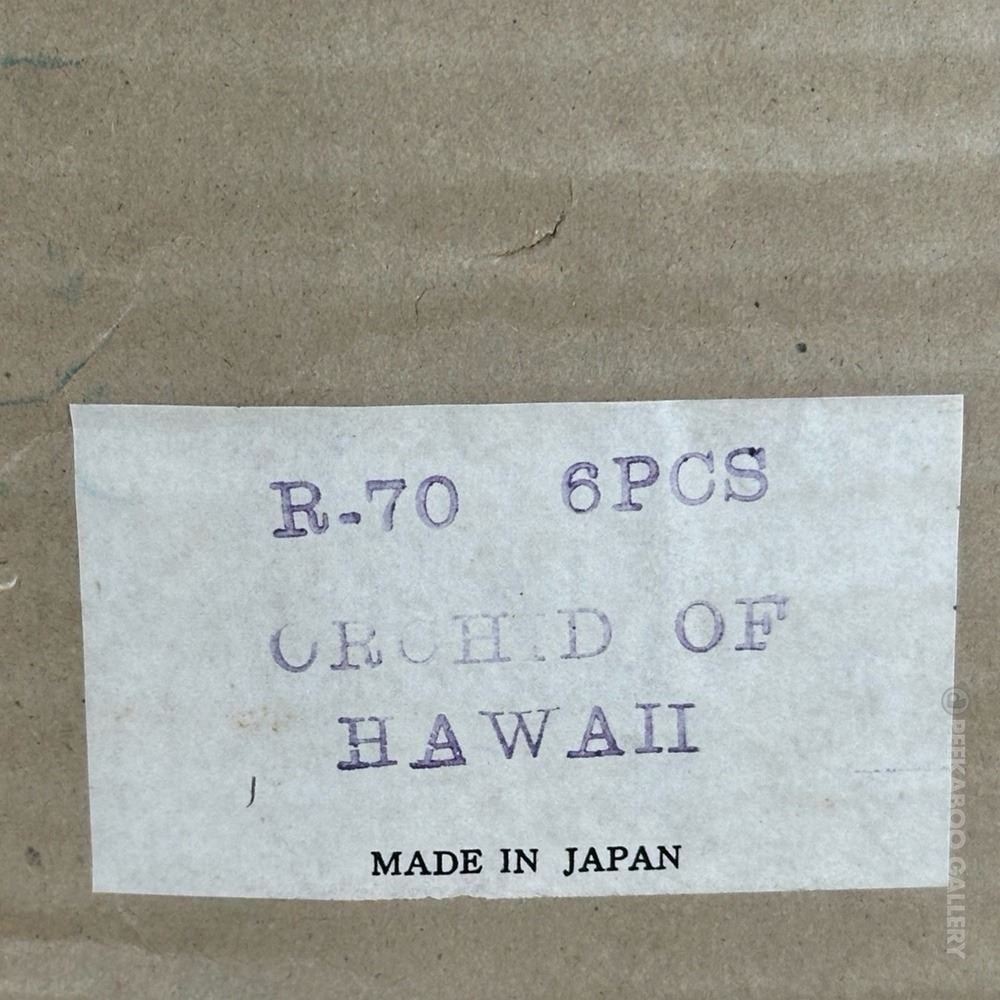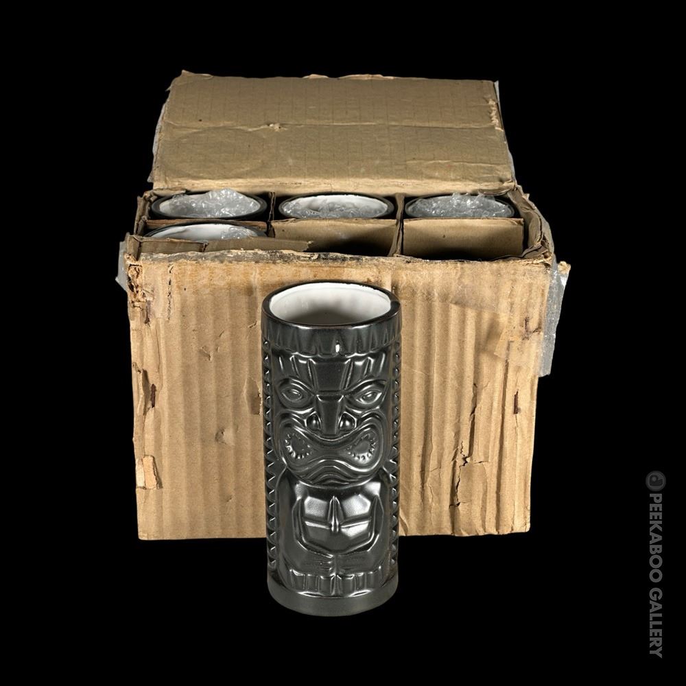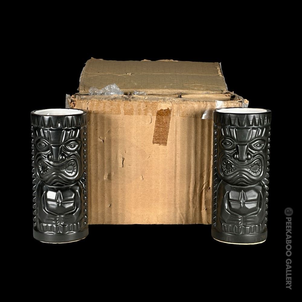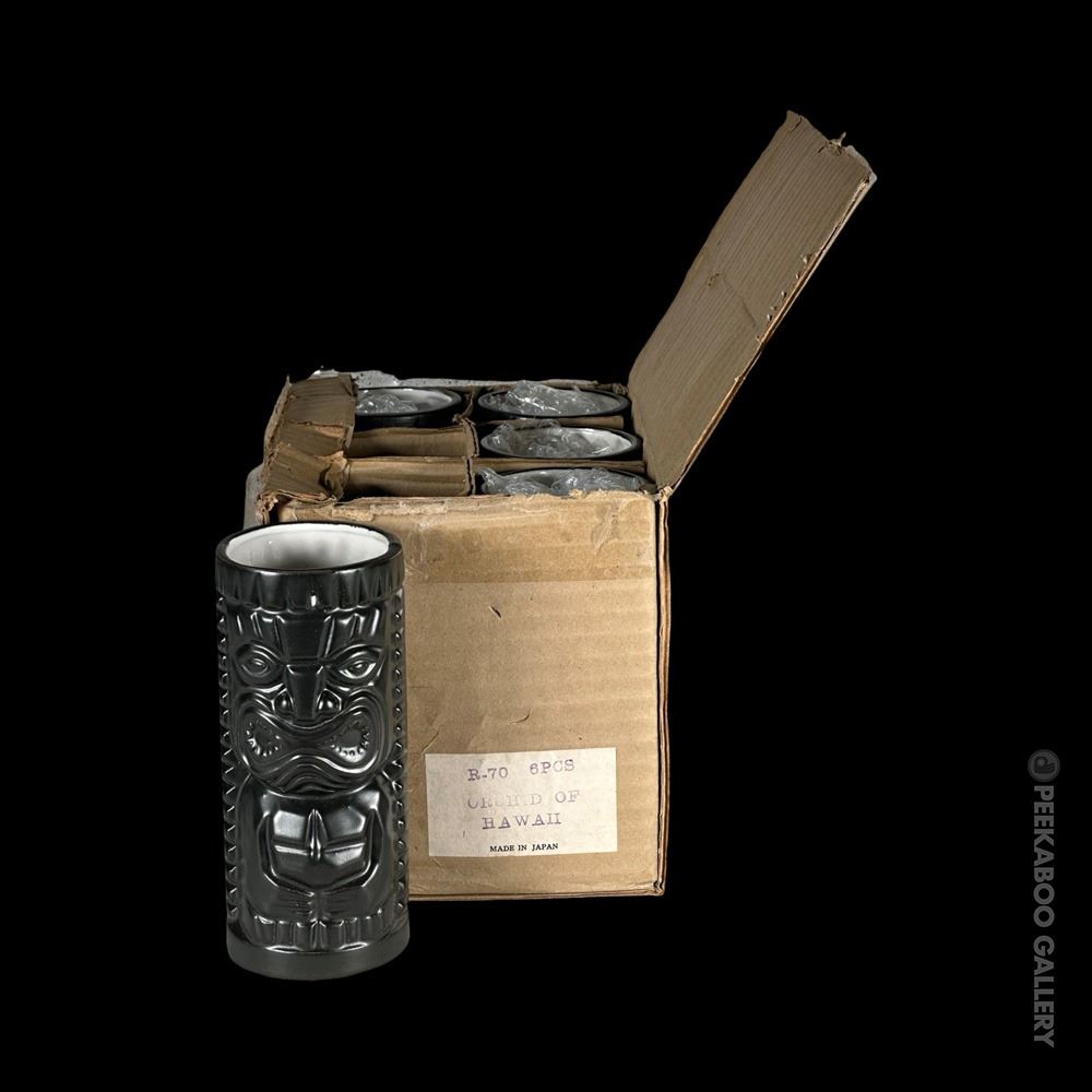 (1960s) A very rare group of five Orchids of Hawaii Tiki mugs still in their original shipping box. VG+. 6"x2.5"dia each.