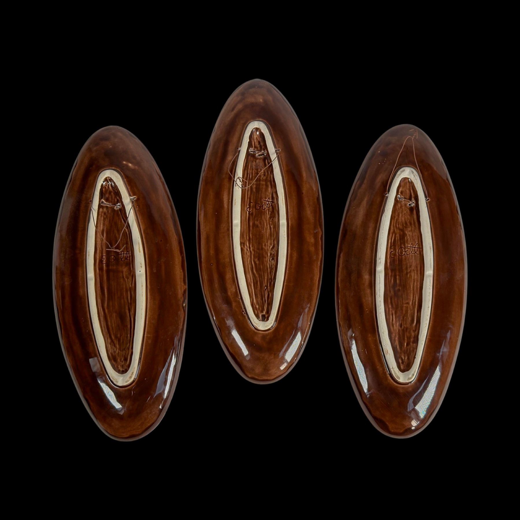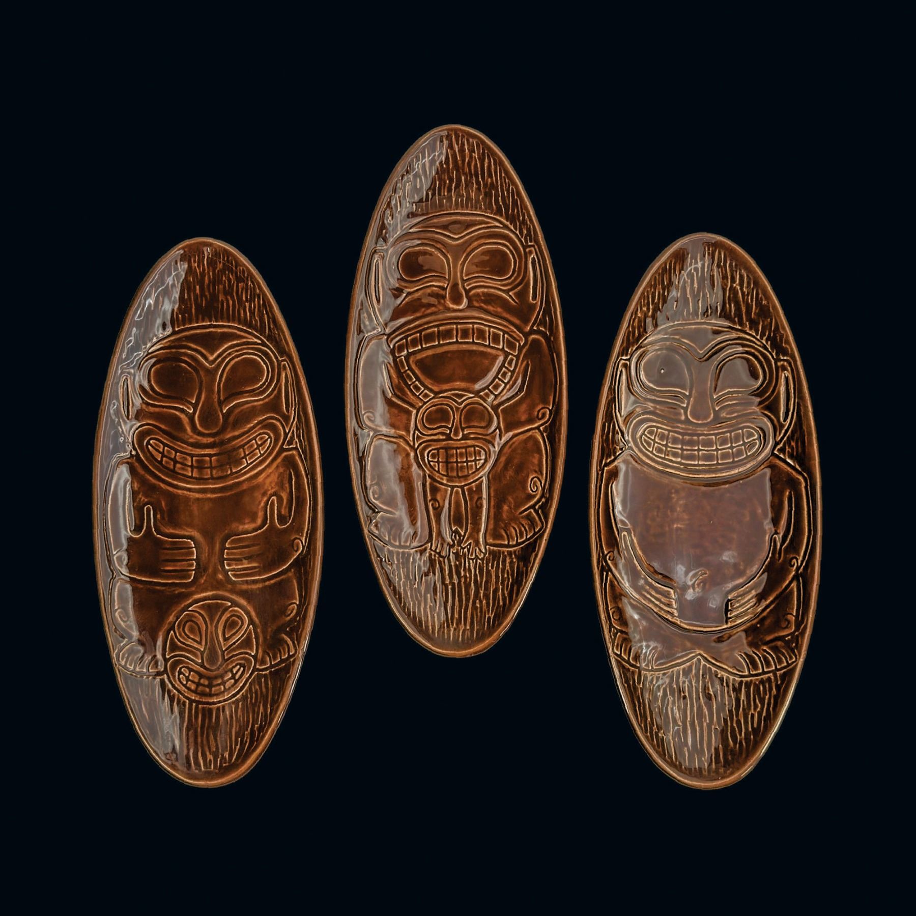 (2000s)* A great homage to the iconic cannibal trio in three ceramic wall platters by Eric October. Signed on the verso. VG+. 6.25"x15.5" each.
