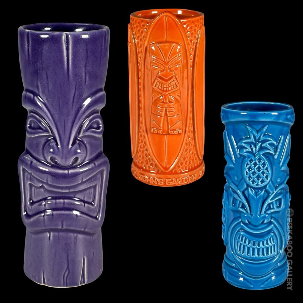 (2007) Charooba is based on Tiki Bar TV's logo. VG+ with typical wear. Tiki Bar-7.5"x2.5"dia, John's Garden-6.5"x3"dia, Tommy Bahama-7.25"x2.75"dia..
