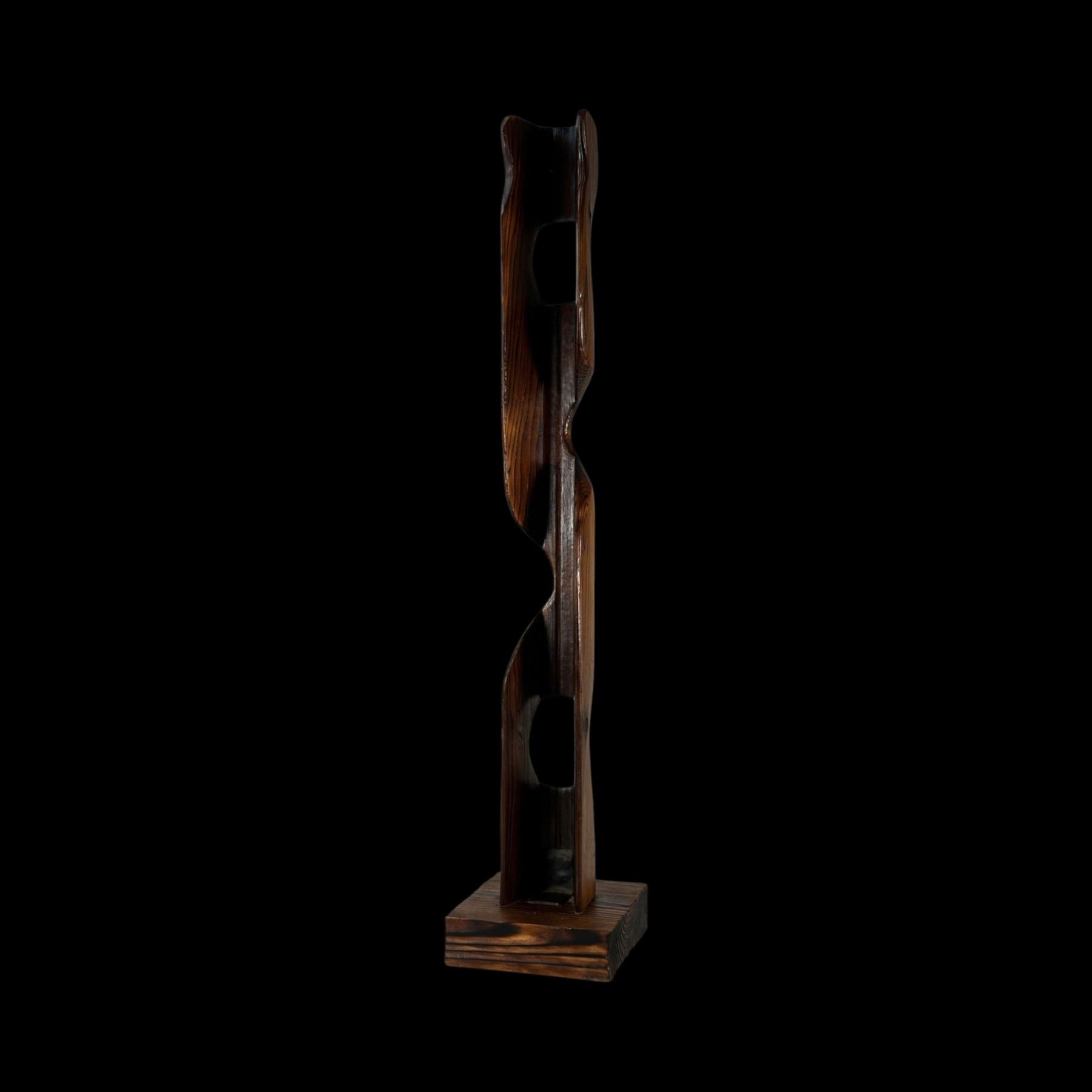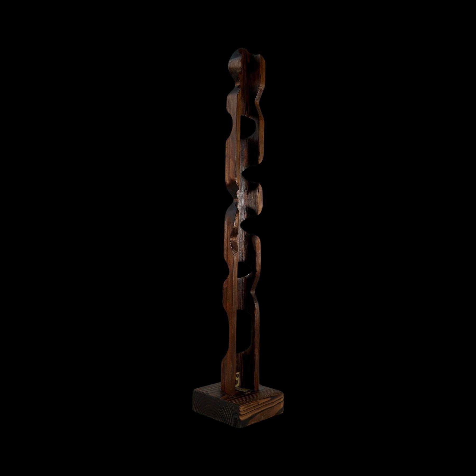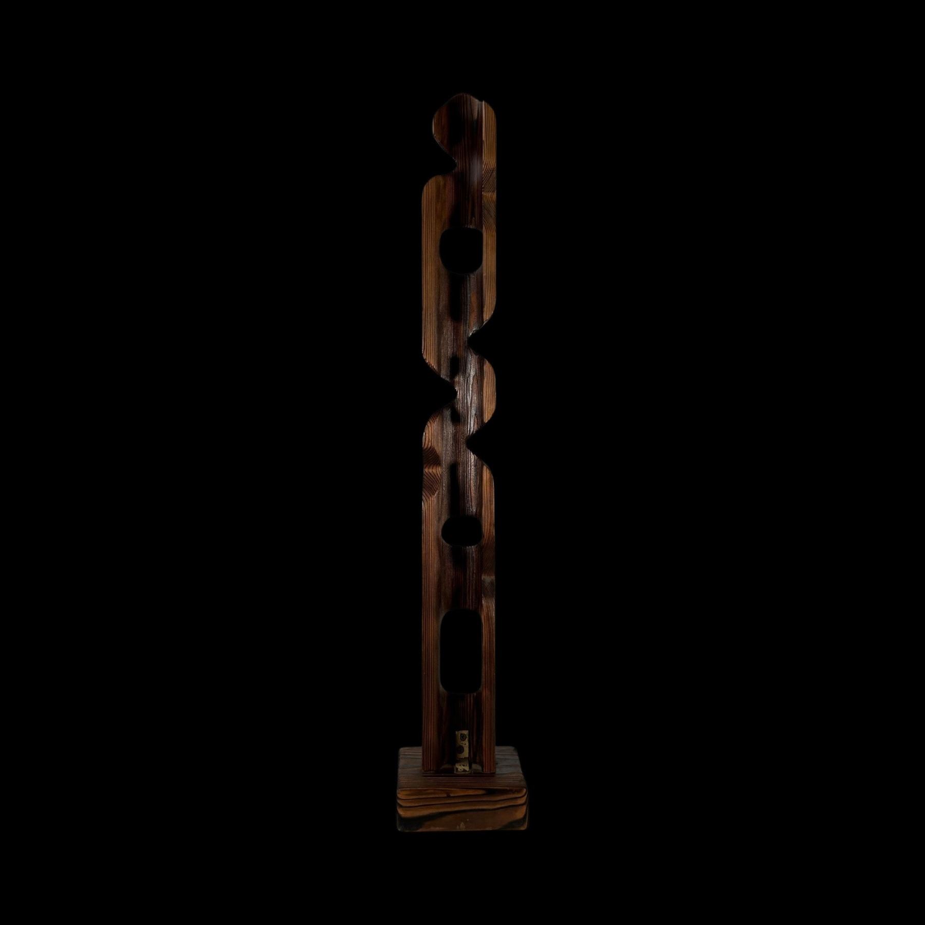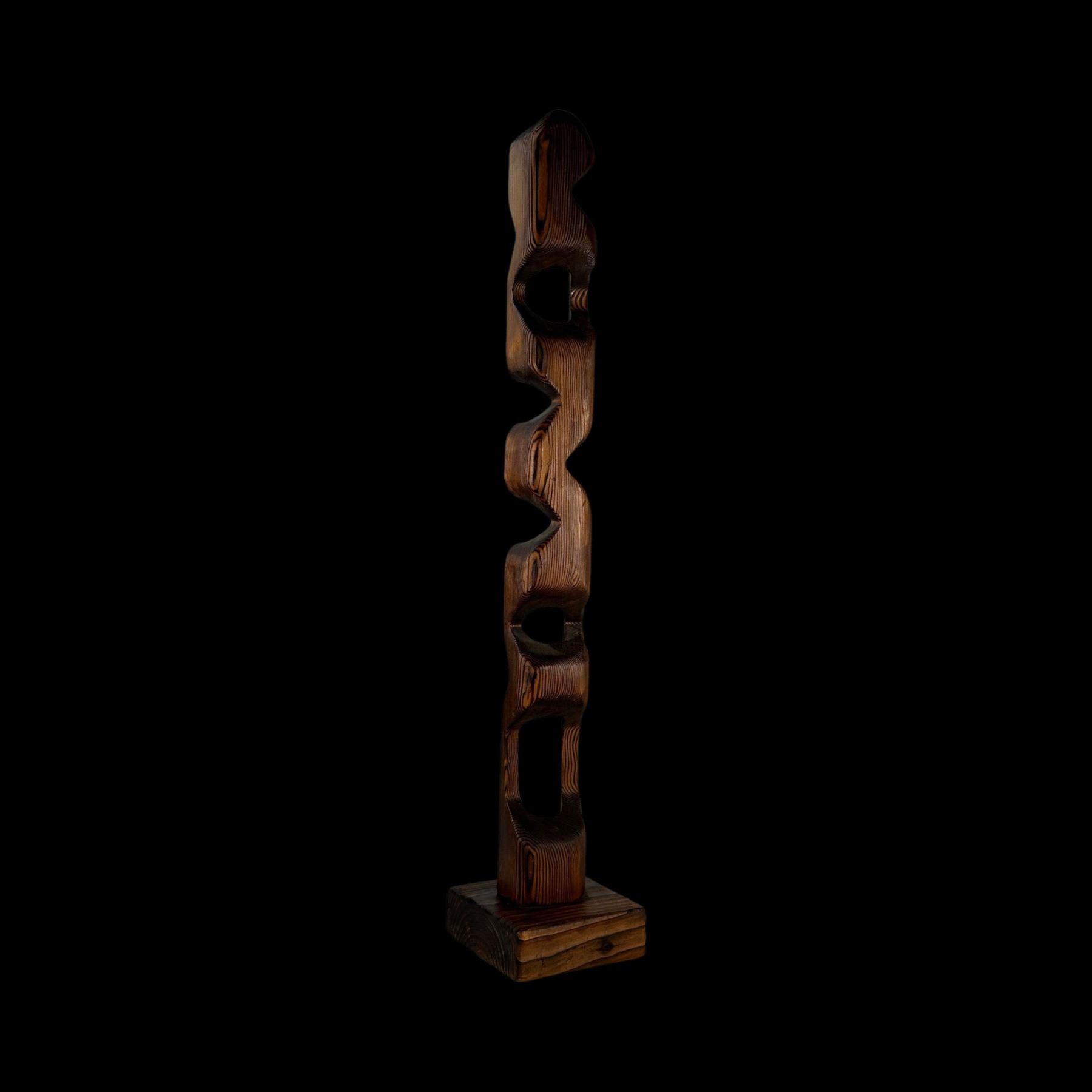(2006)* In the tradition of William Westenhaver's ID line, using cedar rain gutters cut into abstract art. "ID" is based on the Freudian theory of the human consciousness, which was quite the rage in the 1960s. Published in Book of Tiki, page 252. VG+. 7"x34"x6.75" & 6"x33.75"x6.25".