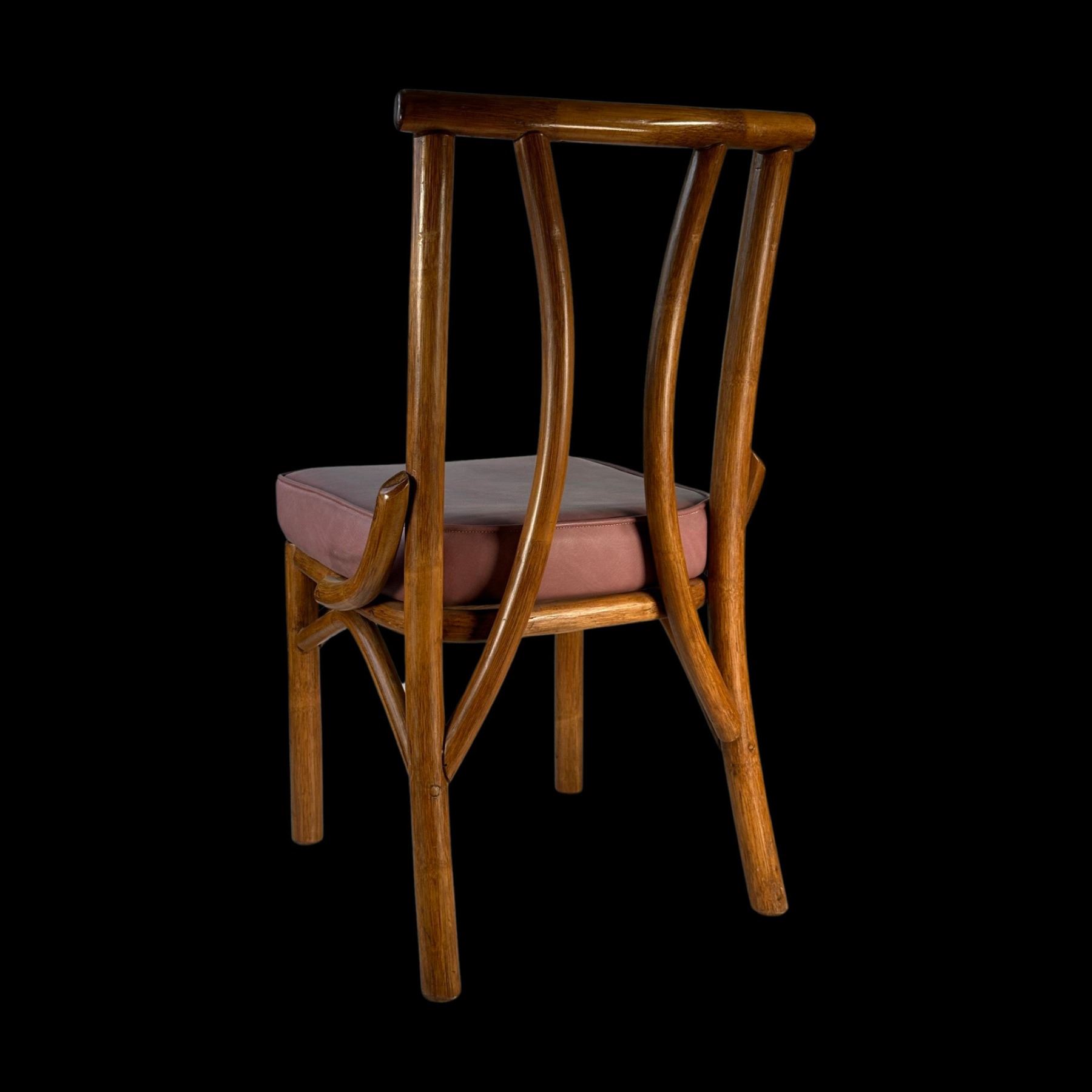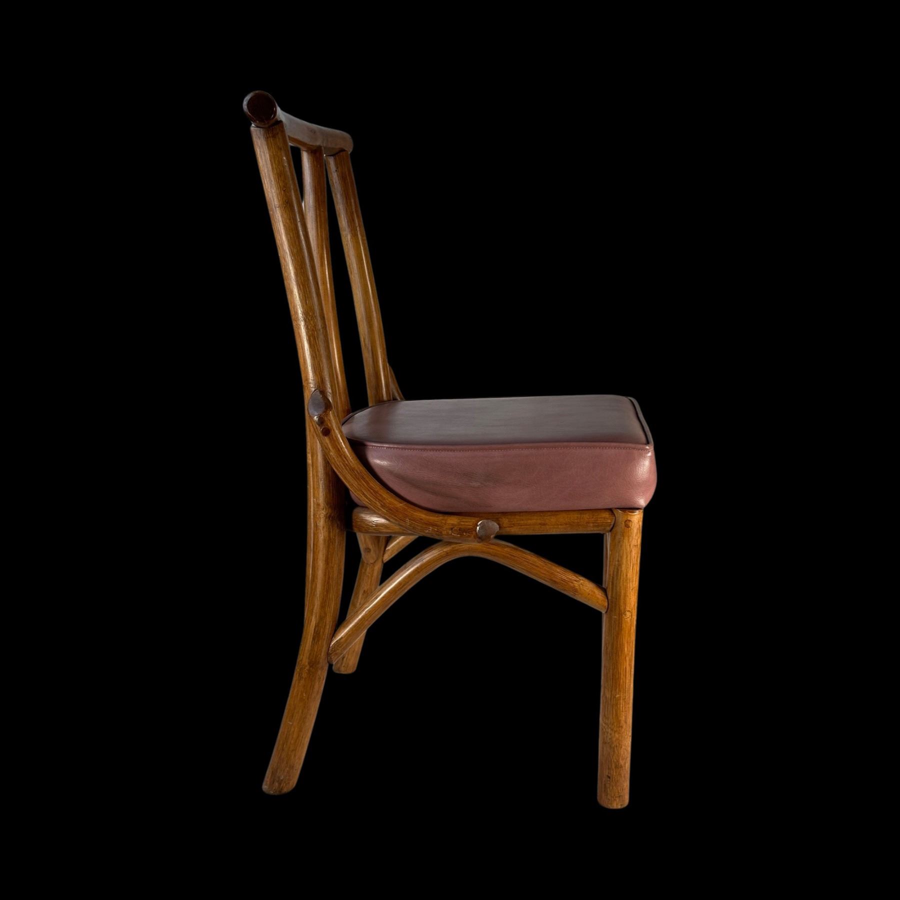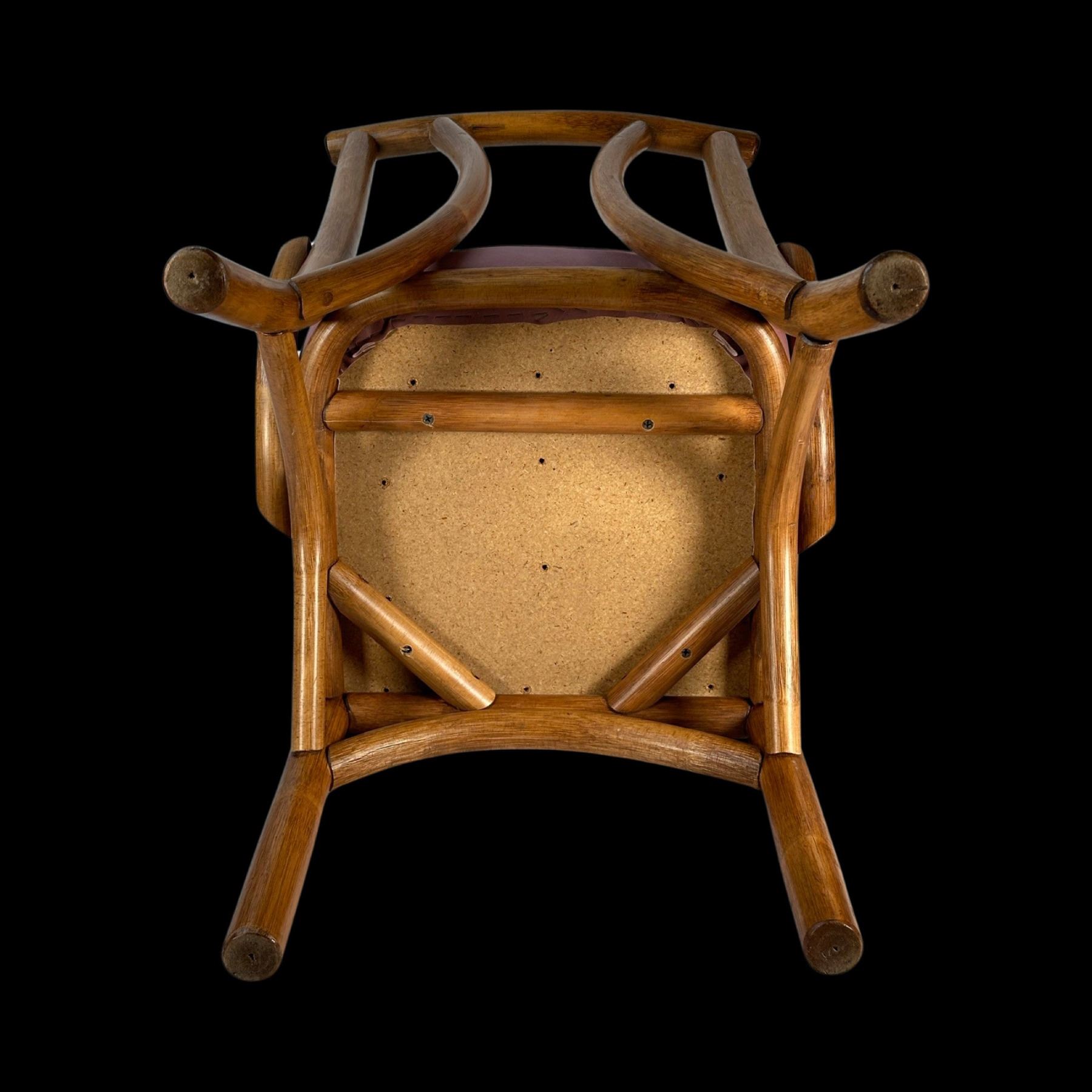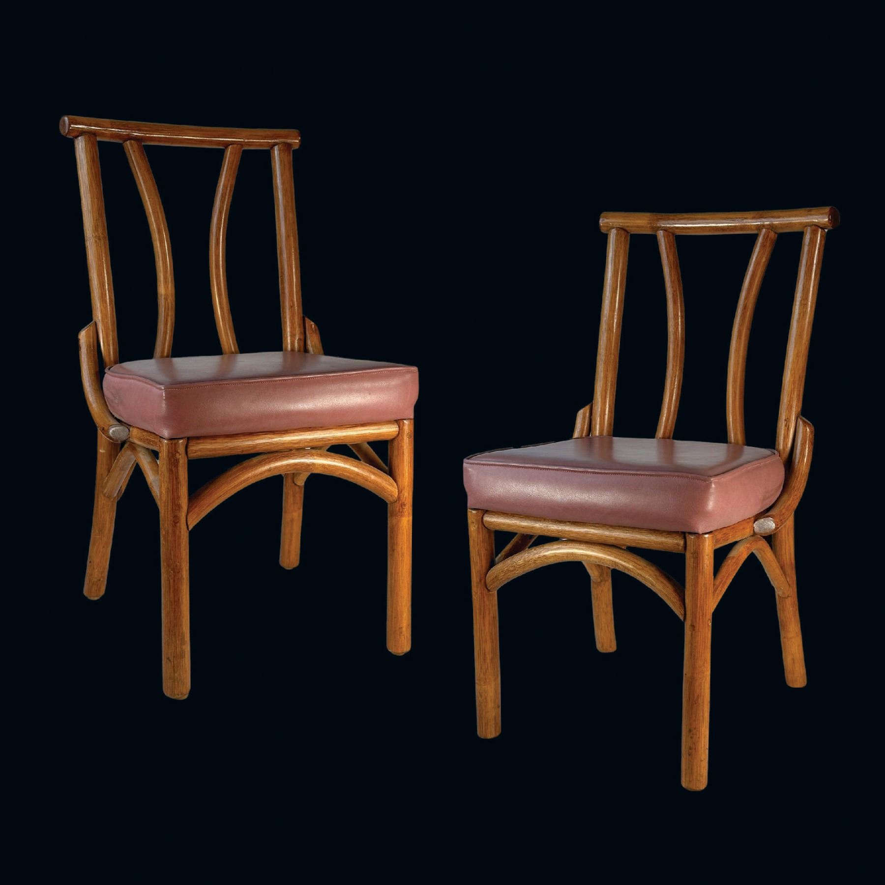 (1960s) These two chairs were prepared by Oceanic Arts in the late 1960s as samples for Don the Beachcomber for one of their expansion locations. Classic rattan with naugahyde restaurant seating. Makes a perfect accent for a home bar. VG+. 18.5"x34"x18" each.