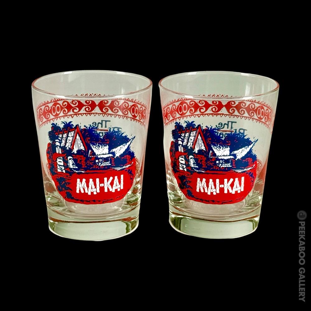(2019) A rare set of two (2) Old Fashioned glasses with the logo and illustration for the beloved MAI-KAI in Fort Lauderdale, Florida. VG+. 4.5"x3.5"dia each.