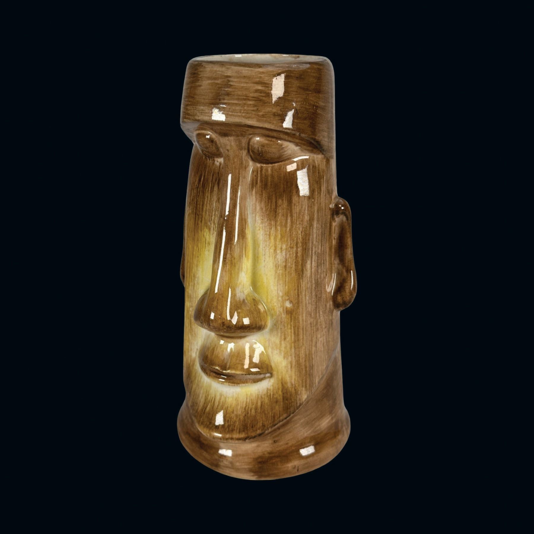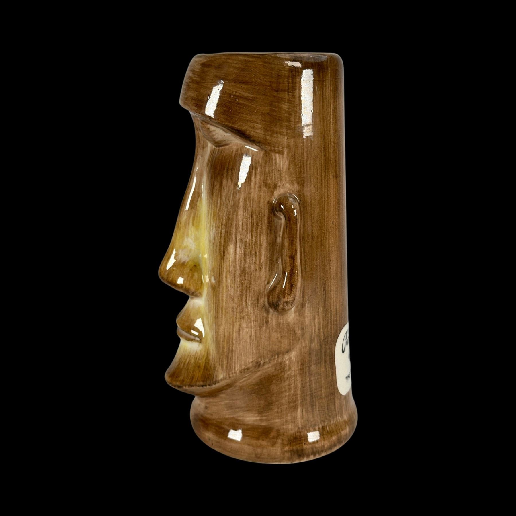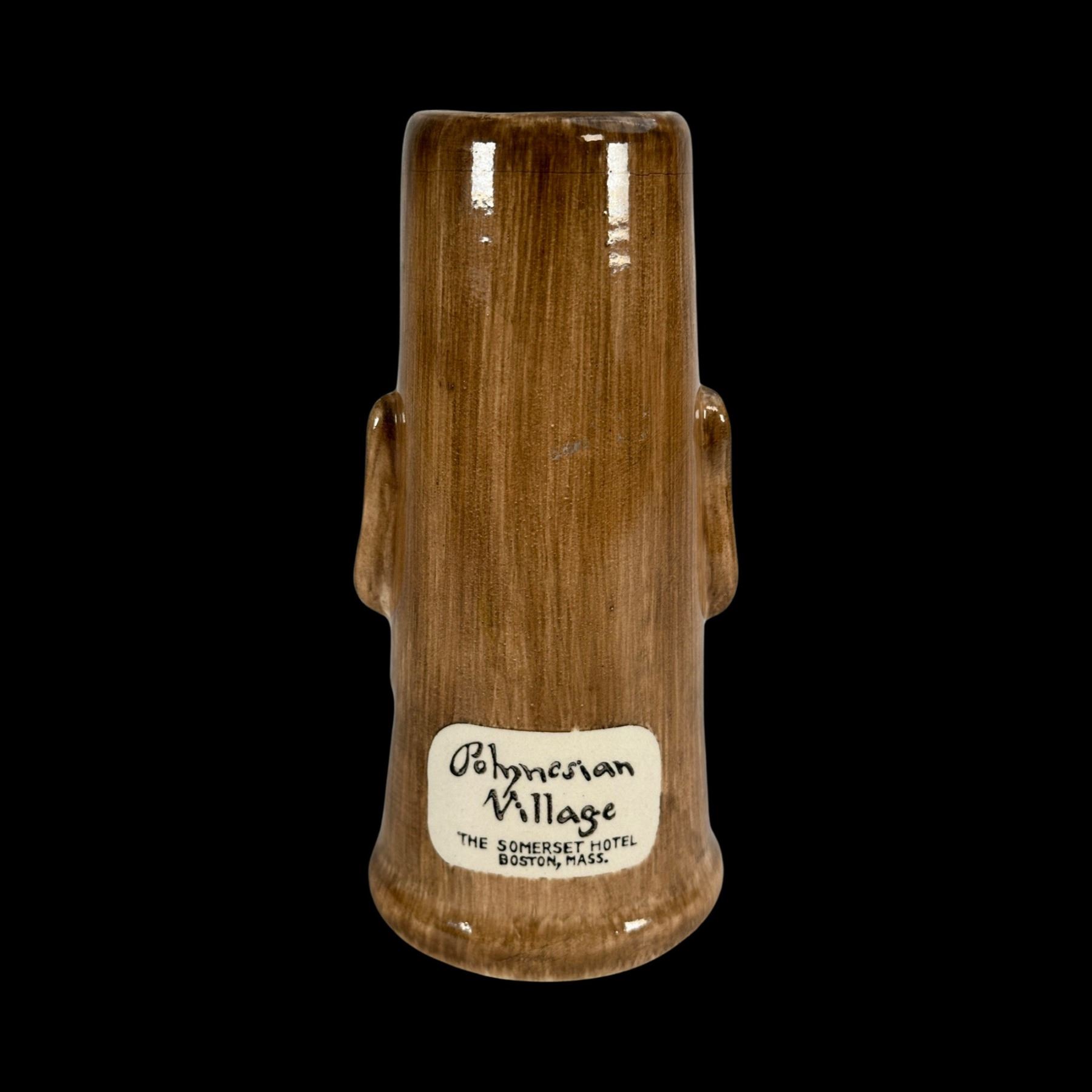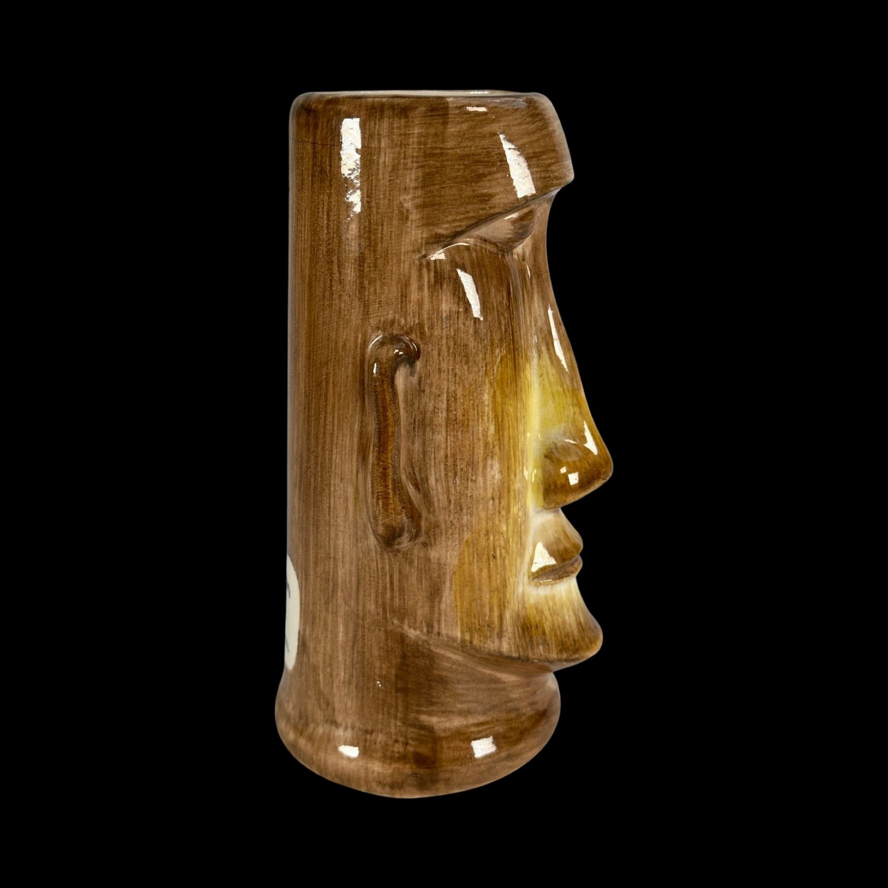 (1950s)* From Sven's mug shelf comes this museum piece displayed at the Catalina Museum Tall Tiki Tales exhibition. VG+ with typical wear. 4"dia x 7.75".