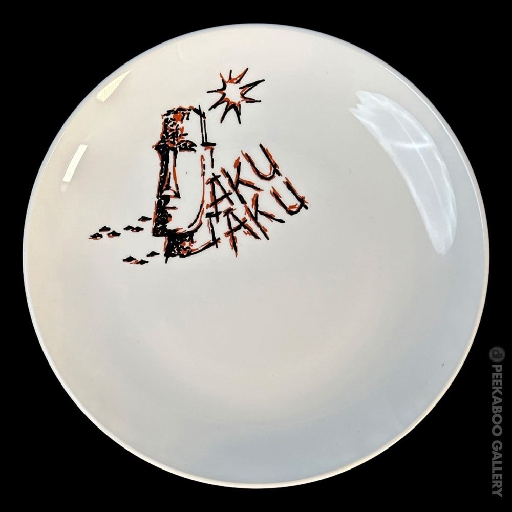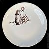 (1970s) Serving ware from the famous AKU AKU restaurant and lounge at the Stardust Casino in Las Vegas. Features a fun, rustic Moai graphic. VG+. 6.5"dia.