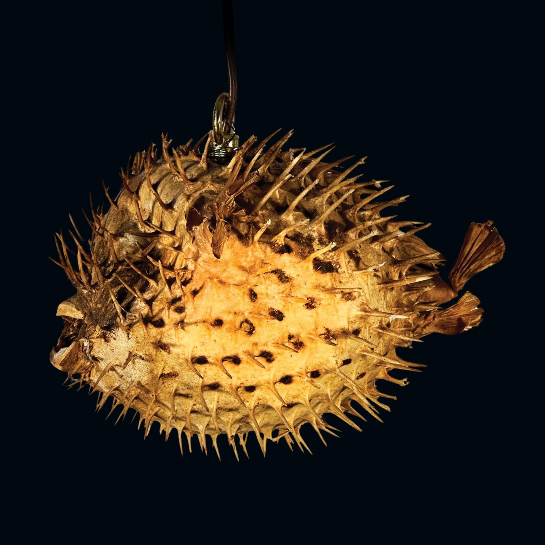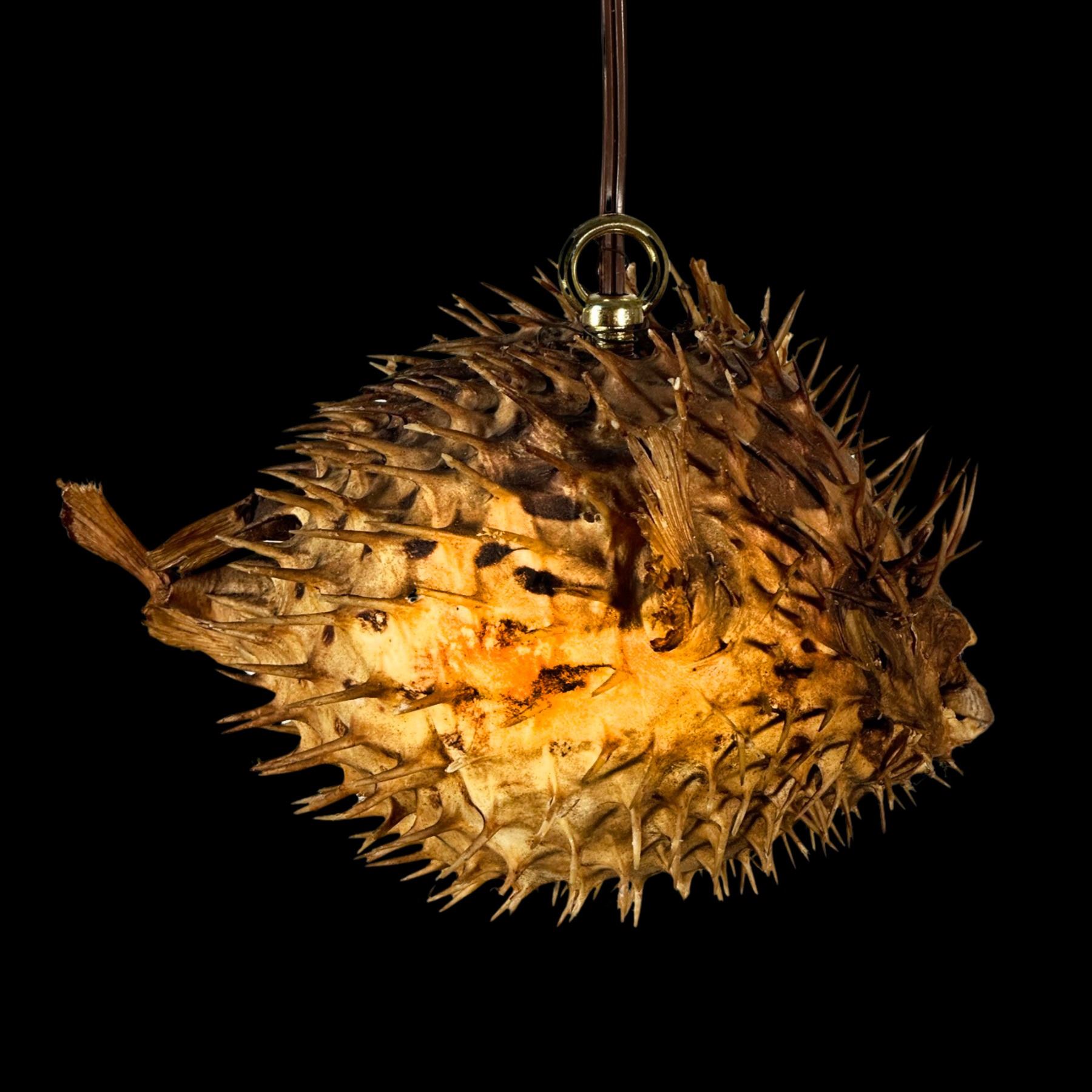 (1960s)* The puffer lamp is one of the essential elements of the beachcomber ceiling of a Tiki bar. Electric has not been tested, may require bulb replacement. VG+ with typical wear. 7"x6.5"x9".