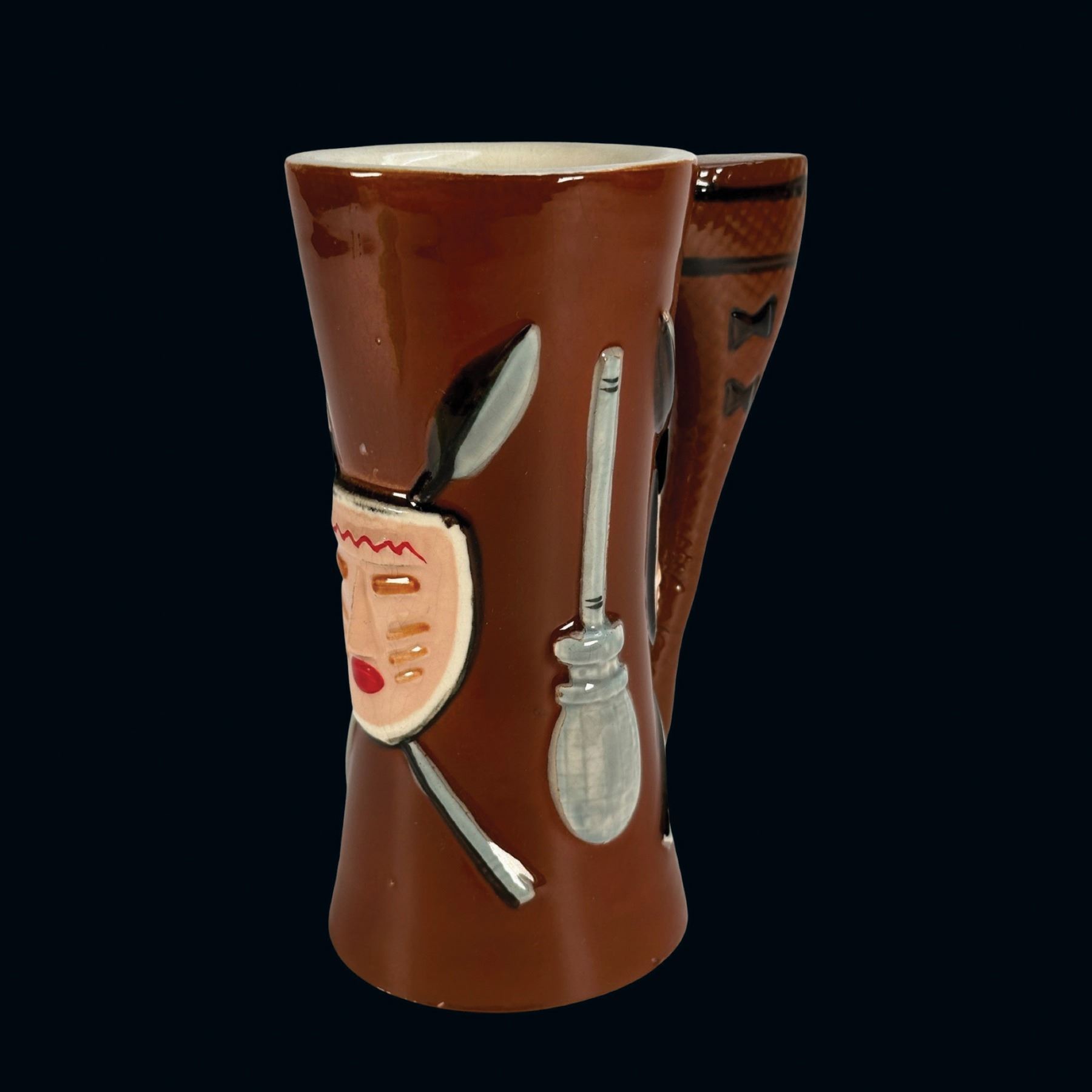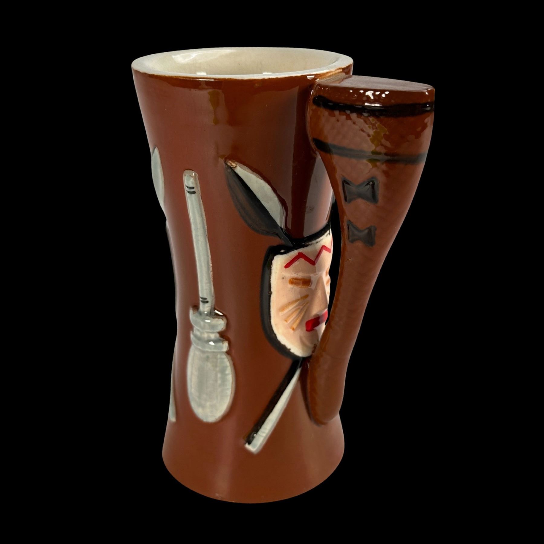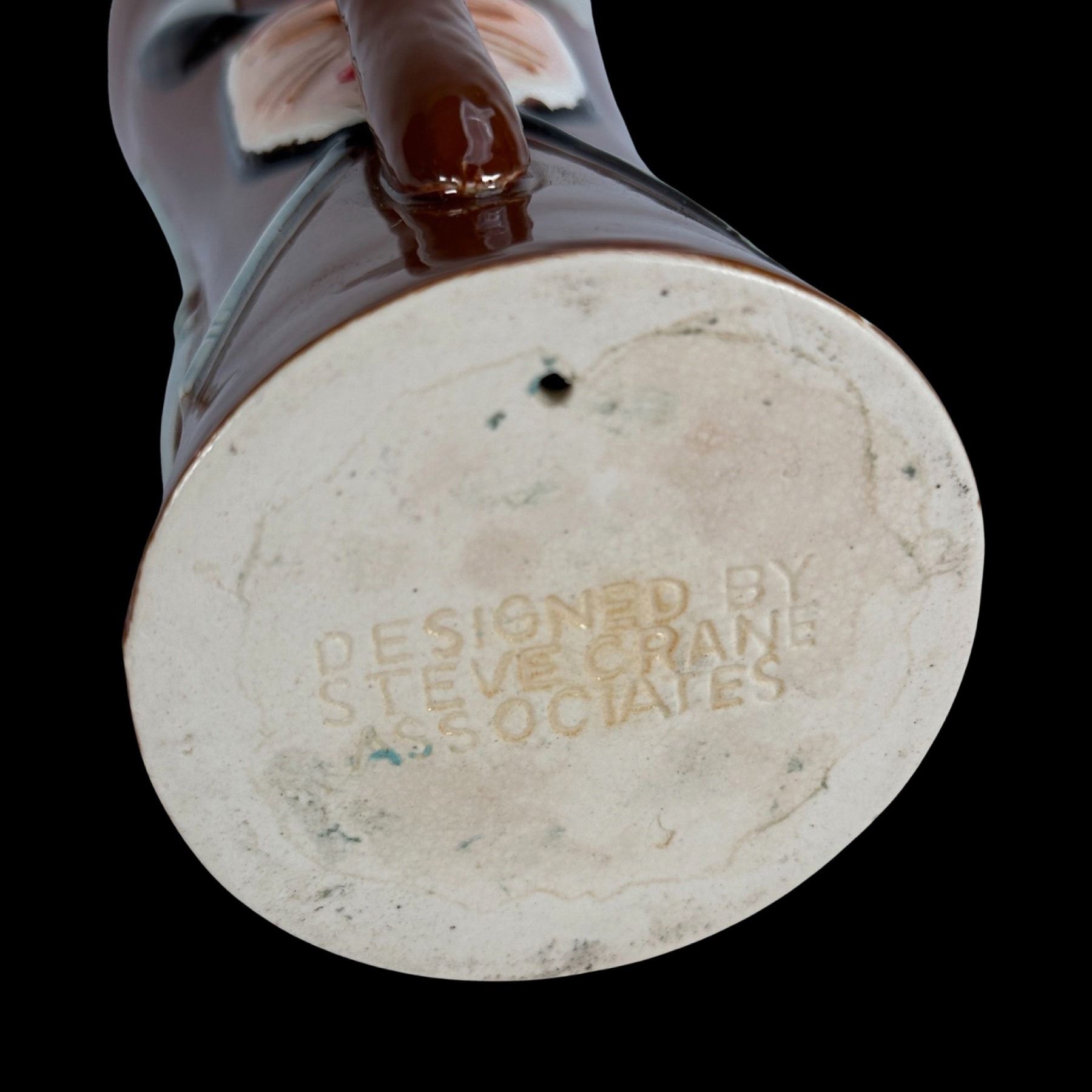 (1950s)* Designed by Florian Gabriel and produced by HF Pottery. Published in TIKI POP, pp309. VG+ with typical wear. 4.25"x6.25"x3".