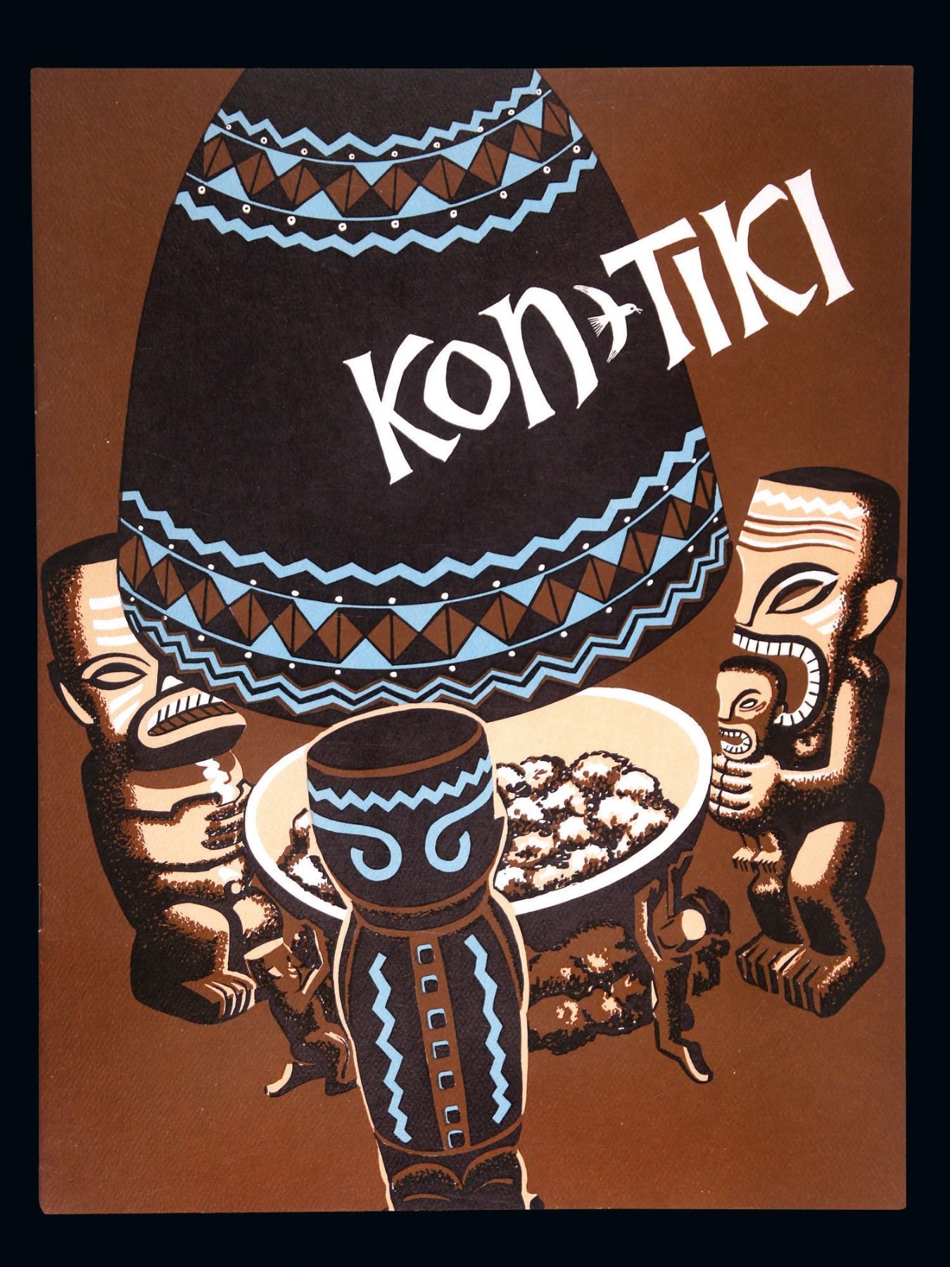 (1960s) Gorgeous illustration on the full restaurant menu for Steve Crane's KON-TIKI restaurant in Portland, OR. VG+. 9.5"x12.25" closed.